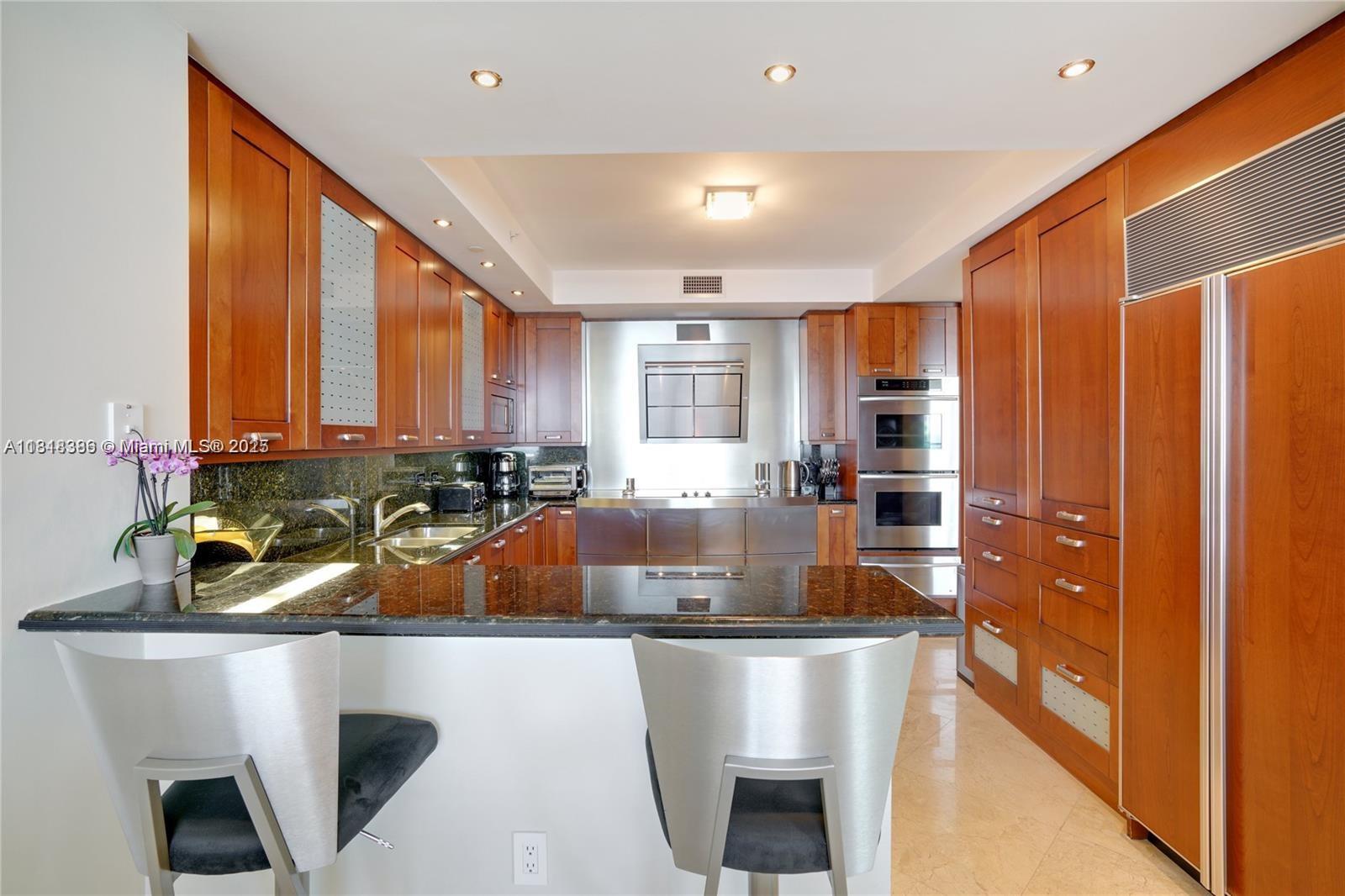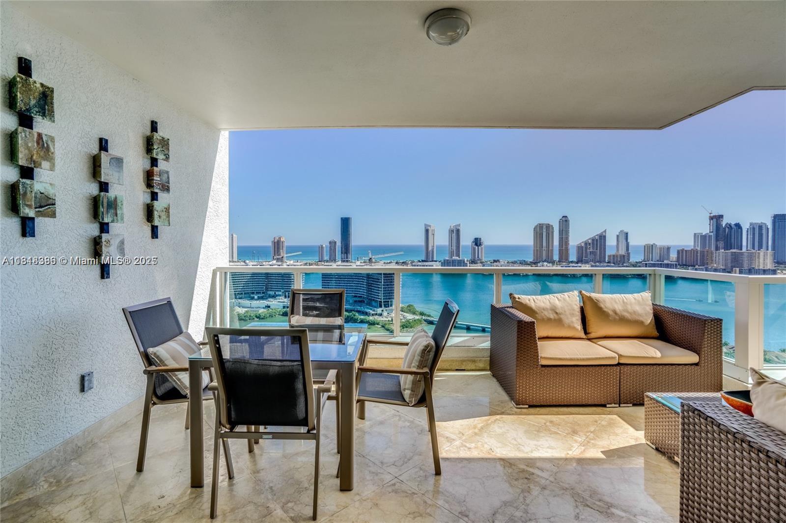 Spectacular PENTHOUSE at The Peninsula in Aventura! This one-of-a-kind unit boasts a private rooftop terrace perfect for sunbathing or entertaining, plus 2 balconies with stunning views, East to the Intracoastal & Sunny Isles skyline, West to the city & water. Enjoy 3 bedrooms, 3.5 baths + den across 3,400 sq ft of fully remodeled luxury: marble floors, custom cabinetry, impact windows, electric shades/blackouts, surround sound, recessed lighting, and a full-size wine cooler. Private elevator opens directly into the unit and to your exclusive rooftop. Includes 2 parking spaces, valet, and storage. Spacious, bright, and move-in ready. Amenities include 2 pools, fitness center, library, party room, tennis courts and 24 hours security in gated building. Virtual tour and floorplan available!