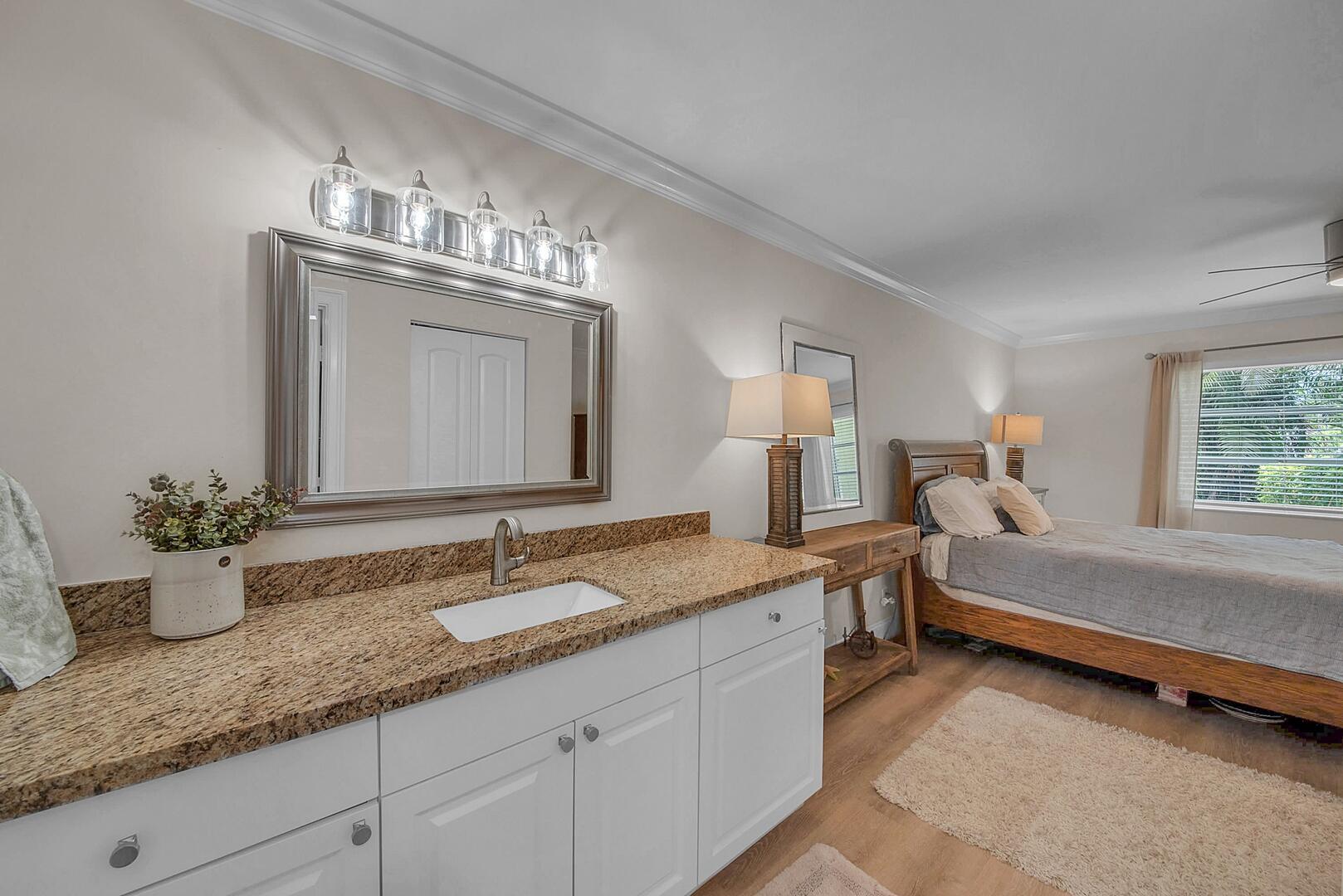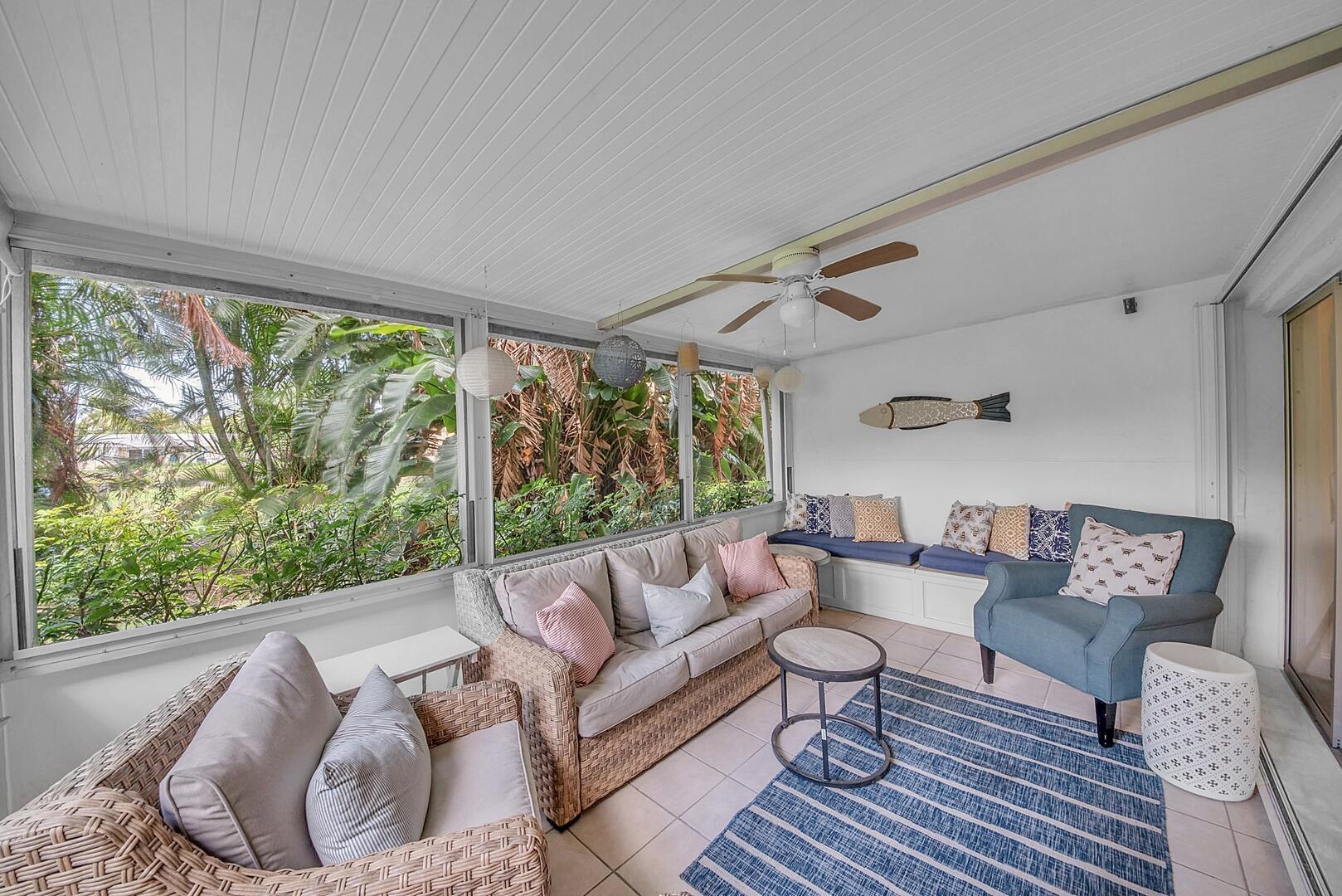 You're going to love this recently remodeled first floor 2BR/2BA condo in the meticulously-maintained 55+ community Pines Of Delray. Twice the amount of cabinet space you usually find in a condo of this size, the new kitchen boasts stainless appliances and lots of granite counter space with under cabinet lighting and self-closing cabinet doors. There is recessed lighting throughout the living spaces, crown molding in every room, and pergola wood floors. A beautiful built-in entertainment center with lots of storage space defines the living room, leading out to a large screened porch with mature tropical flora and fauna offering loads of privacy. Two walk-in closets in the large MBR, and a second en-suite bedroom offers a perfect place for guests, a home office or den.