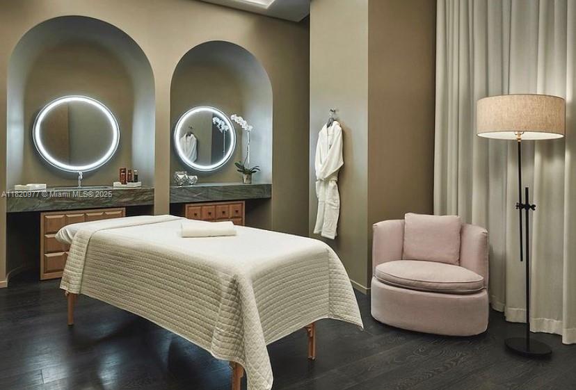 Wonderfully furnished & equipped 2 bed/2 bath unit in SLS Lux sold turn key! Biscayne bay & Miami skyline views await you. Private foyer elevator, 1 covered parking space. Designer furniture and furnishings. Upgraded unit finishes include: Italian Ciot green marble countertops & LED lighting in kitchen, white calacatta luxor marble vanity tops & Toto washlets in bathrms, Italkraft closet system in closets, automated window roller shades throughout. Bldg amenities include: SLS Hotel - 2 pools - Roof top private pool for residents only, Cabanas, bar & restaurants, Fitness Ctr & sauna, Spa,children's playground w/rock climbing, Billiard, Wine & cigar room, game room, putting green, tennis, 45th fl residents wine lounge. Brickell City Center w/entertainment & dining.Close to airport & M.Beach