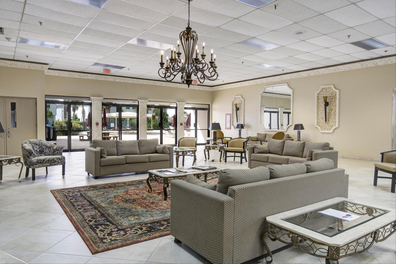 Light, bright, and move-in ready! This 2 bed, 2 bath end unit condo in the sought-after 55+ community of Lucerne Pointe features brand new carpet and fresh, neutral color paint throughout. With a desirable double master suite layout and extended living space, it's the perfect place to relax or entertain. Enjoy resort-style amenities including a clubhouse, heated pool, spa, tennis, pickleball, bocce ball, billiards, fitness center, and more. A full calendar of activities and a complimentary limo bus make it easy to enjoy everything the area offers. Affordable, active adult living in sunny South Florida awaits!