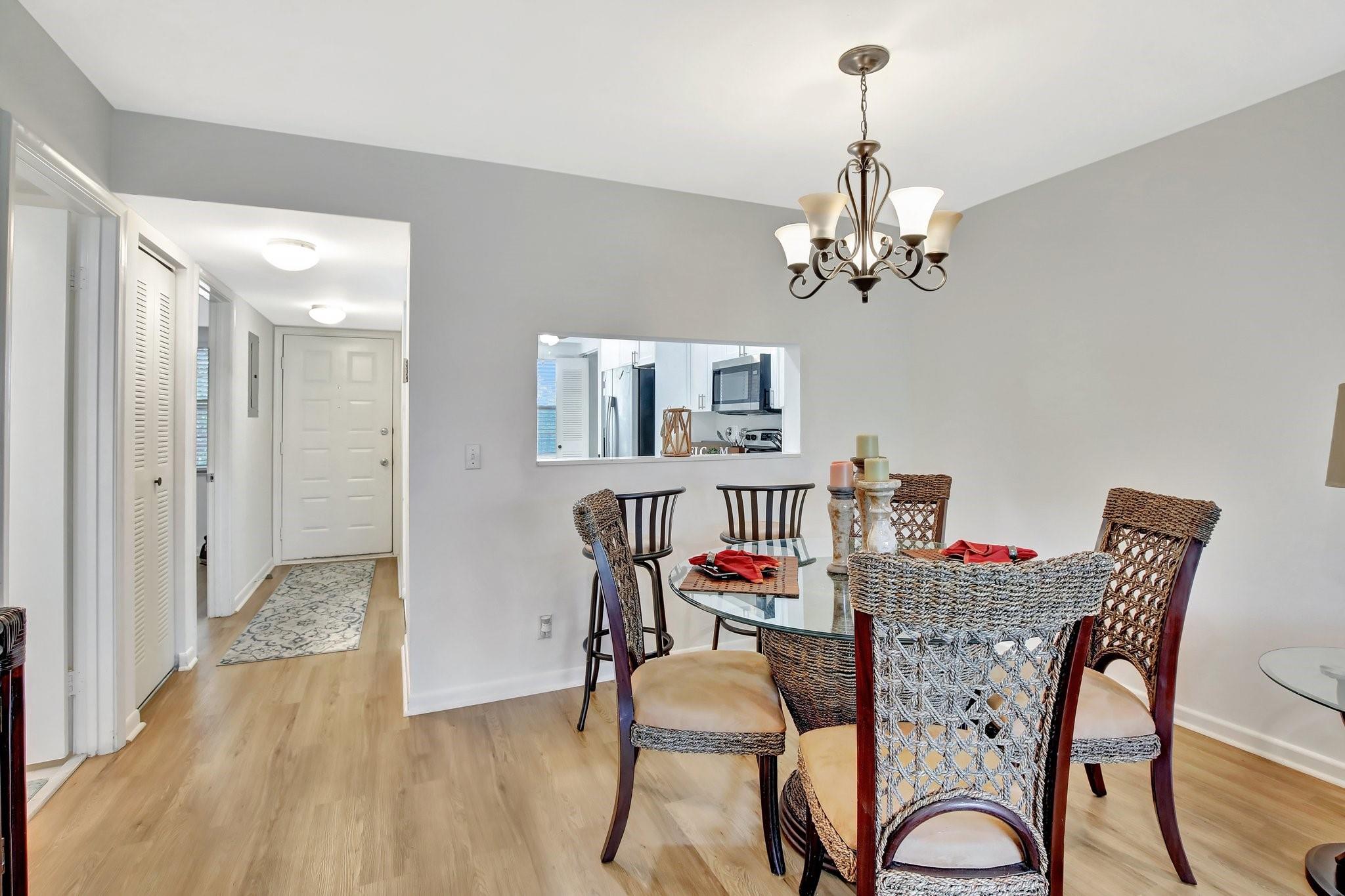This 2 bd /1.5 bath features laminated floors throughout, convenient in-unit washer and dryer. Walk-in closet in master bedroom, ample storage space is guaranteed. Updated kitchen with stainless steel appliances . Both bathrooms vanieties have been updated . Residents can enjoy access to a multi-million-dollar clubhouse, sauna, pickleball courts, pools, golf, complimentary transportation, and more. This condo is perfect for those seeking a vibrant and active lifestyle. No rental restrictions , it can be rentted right away ! Minimun credit required is 650