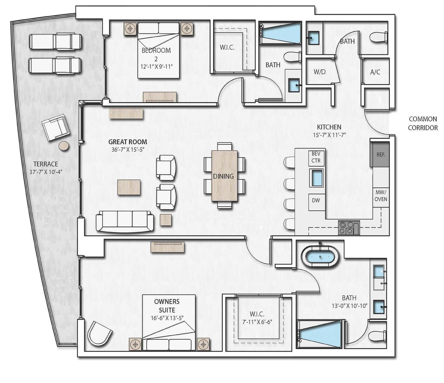 THE NAUTILUS 220 DEVELOPER IS OFFERING A SUMMER SPECIAL $100,000 DESIGN FURNISHING CREDIT. Nautilus 220 is a new luxe waterfront development under construction located alongside a marina with 330 condominium residences in two, 24 story towers, a one- acre outdoor amenity deck, the SeaHawk Prime by David Burke restaurant, retail, a cafe and office suites. Everything you need in one place, resort-style living perfected. This last A.3 floorplan is beautifully appointed with 10ft ceilings and hurricane impact glass, vanilla LVT throughout, full Miele Appliance package, undercounter beverage center, waterfall quartz kitchen island and countertops with European cabinetry, oversized owner's suite with large bath featuring freestanding soaking tub, porcelain tile, and terrace with water views.