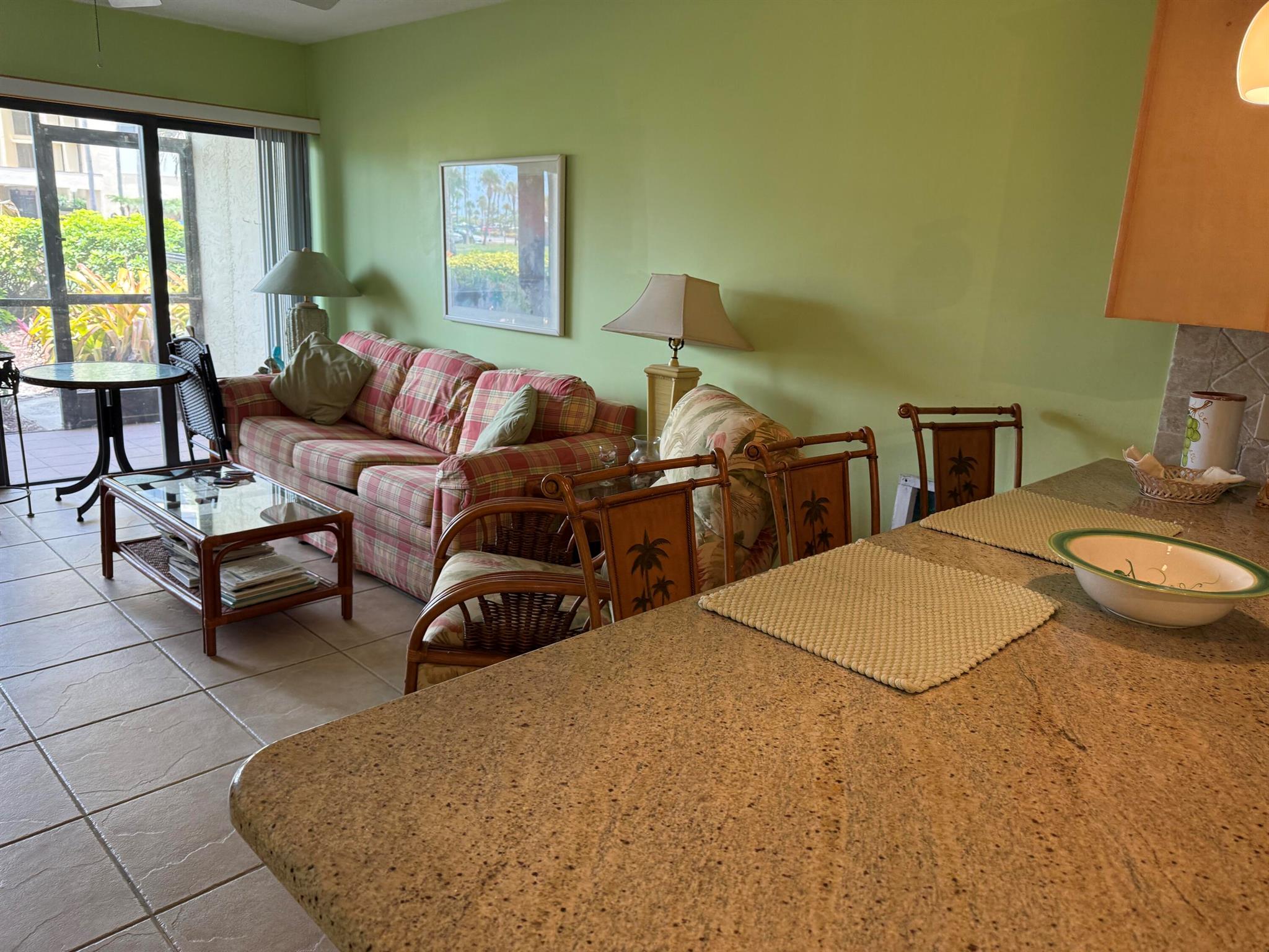First floor furnished corner unit with lots of privacy. Weekly rentals for a great investment. Unit has updated kitchen and bathroom, tile floor throughout except bedroom. Solid Wood cabinets with granite counter in kitchen. French doors to bedroom for extra privacy. Carpet and furniture professionally cleaned. A two minute walk to beach and beautiful brand new main pool. Florida living at this oceanfront community offering 24 hr gated entry, 9 hole par 3 golf course, tennis, bocce ball, pickleball, shuffleboard, 4 heated pools, oceanfront restaurant, tiki bar, new clubhouse & fitness center and new pickleball courts coming soon! Come see what Hutchinson Island with 21 miles of uncrowded & unspoiled beaches has to offer!