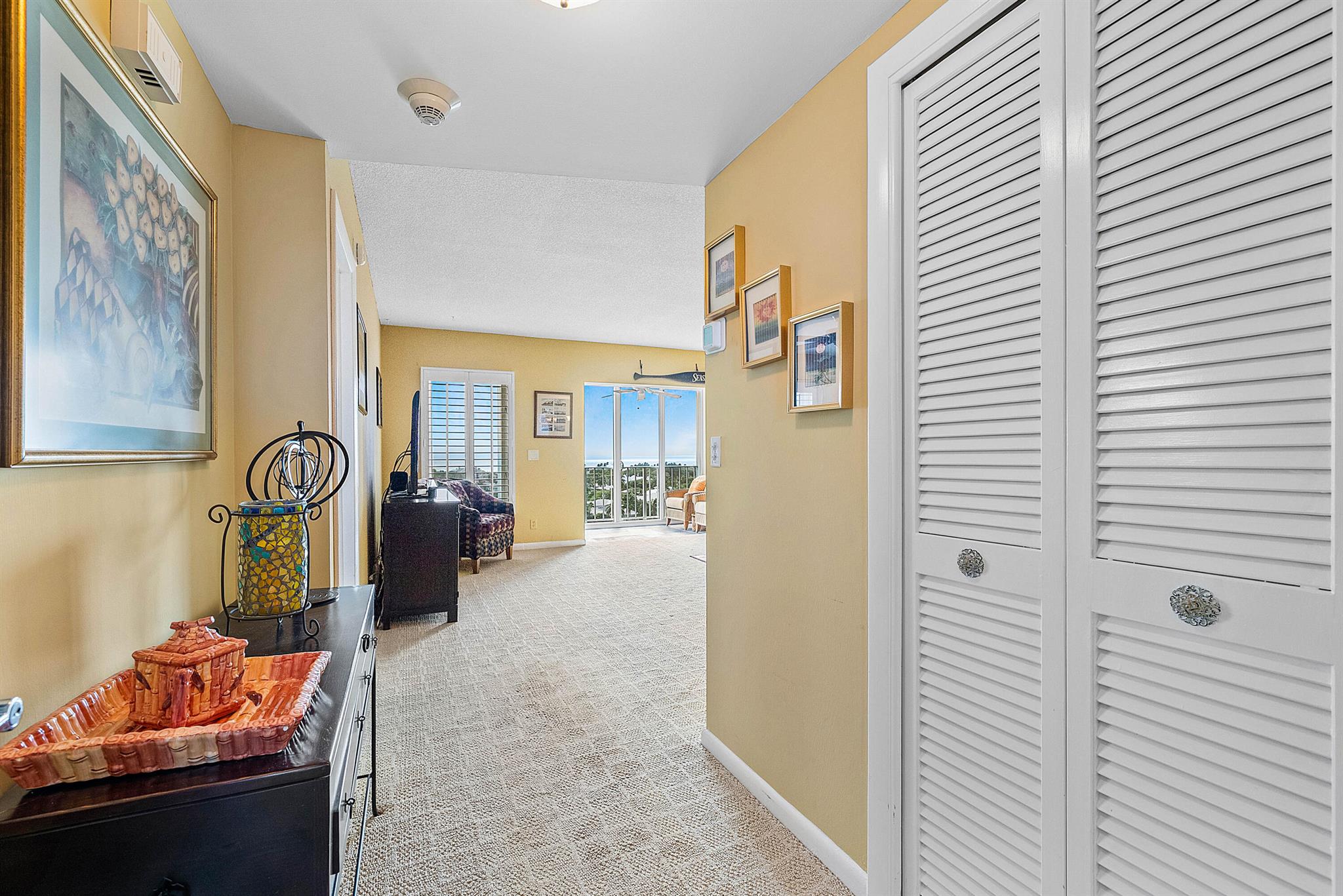 East Delray, Waterfront with Ocean and Intrcoastal Views, and close proximity to Atlantic Ave for under $500,000. This incredible 1/1.5 is located on the 11th floor of The Barrton. The short distances (.64 miles) to Atlantic Ave. and (1.2 miles) to the beach makes this a very desirable building in Delray. 24/7 security. Impact windows. New Bosch AC Unit and hot water heater. Parking space close to entrance. Association application fee is $150 and deposit is a $500 refundable move-in deposit. Financing requires 20% down. No rentals allowed. No Pets. No Washer and Dryer in unit. Common laundry room on each floor. Additional 107 sq. ft. of the enclosed porch area is included in the living sq. ft. All measurements are approximate and subject to error, omission, and changes without notice.
