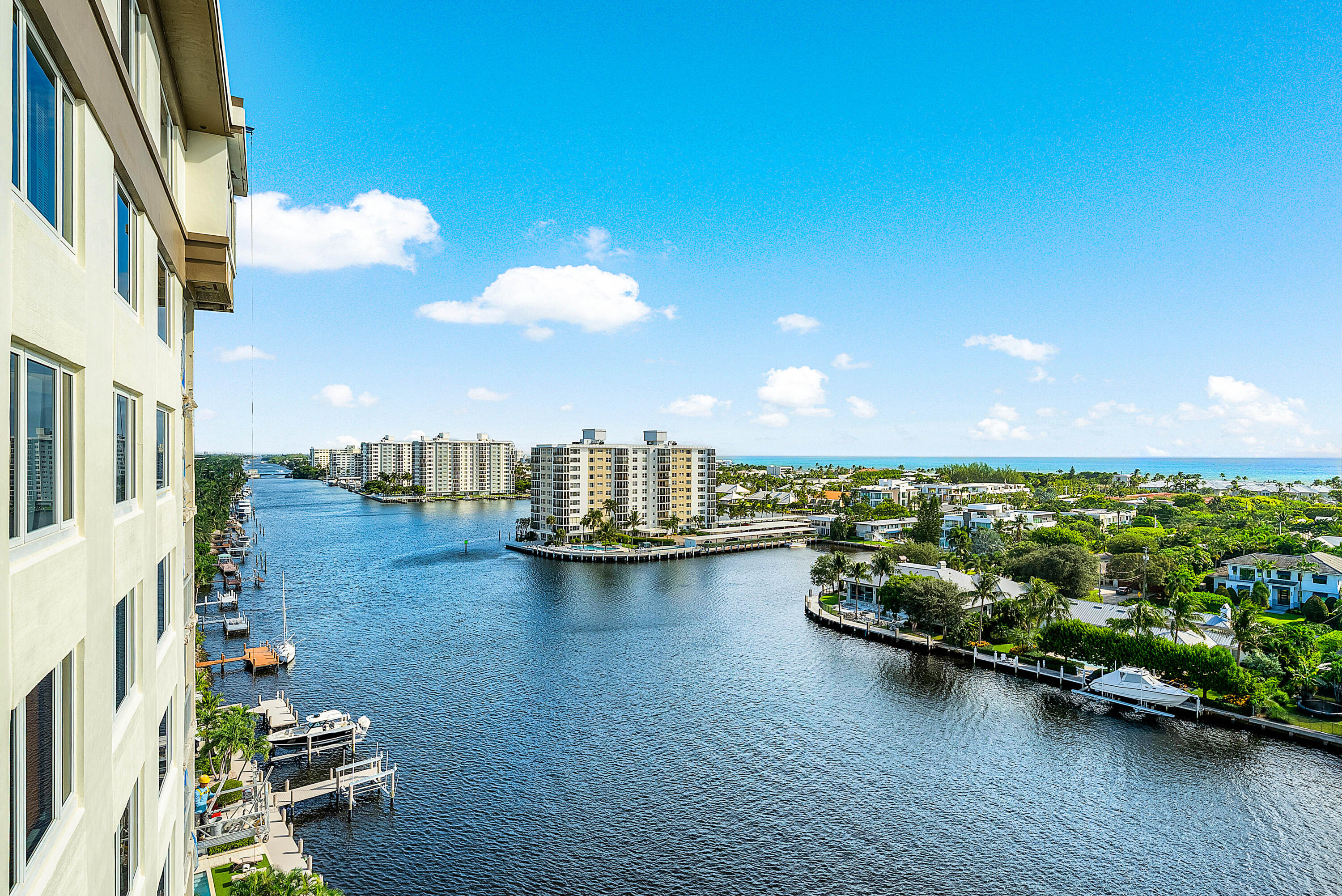 East Delray, Waterfront with Ocean and Intrcoastal Views, and close proximity to Atlantic Ave for under $500,000. This incredible 1/1.5 is located on the 11th floor of The Barrton. The short distances (.64 miles) to Atlantic Ave. and (1.2 miles) to the beach makes this a very desirable building in Delray. 24/7 security. Impact windows. Parking space close to entrance. Association application fee is $150 and deposit is a $500 refundable move-in deposit. Financing requires 20% down. No rentals allowed. No Pets. No Washer and Dryer in unit. Common laundry room on each floor. Additional 107 sq. ft. of the enclosed porch area is included in the living sq. ft. All measurements are approximate and subject to error, omission, and changes without notice.