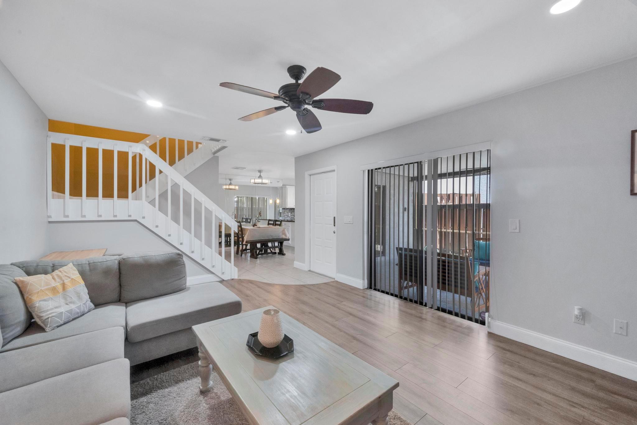 Beautifully remodeled 2BR/2.5BA townhome in desirable Camelot Gardens! Prime location just 3 minutes to US-1 with quick access to dining, shopping, hospitals & more. Features include updated kitchen with Corian countertops, glass tile backsplash, pull-out trash drawer, and new stainless-steel appliances. Brand new A/C & refrigerator. Updated flooring throughout, recessed lighting with dimmers, new fans, and new stairs. Master bathroom fully remodeled with granite counters. Enjoy the spacious patio--perfect for relaxing outdoors. Community amenities include pool, tennis, pickleball, racquetball, shuffleboard, clubhouse with kitchen & library, security patrol, and cameras. HOA covers water, cable, trash, landscaping, roof & building insurance. Just steps from the clubhouse and pool