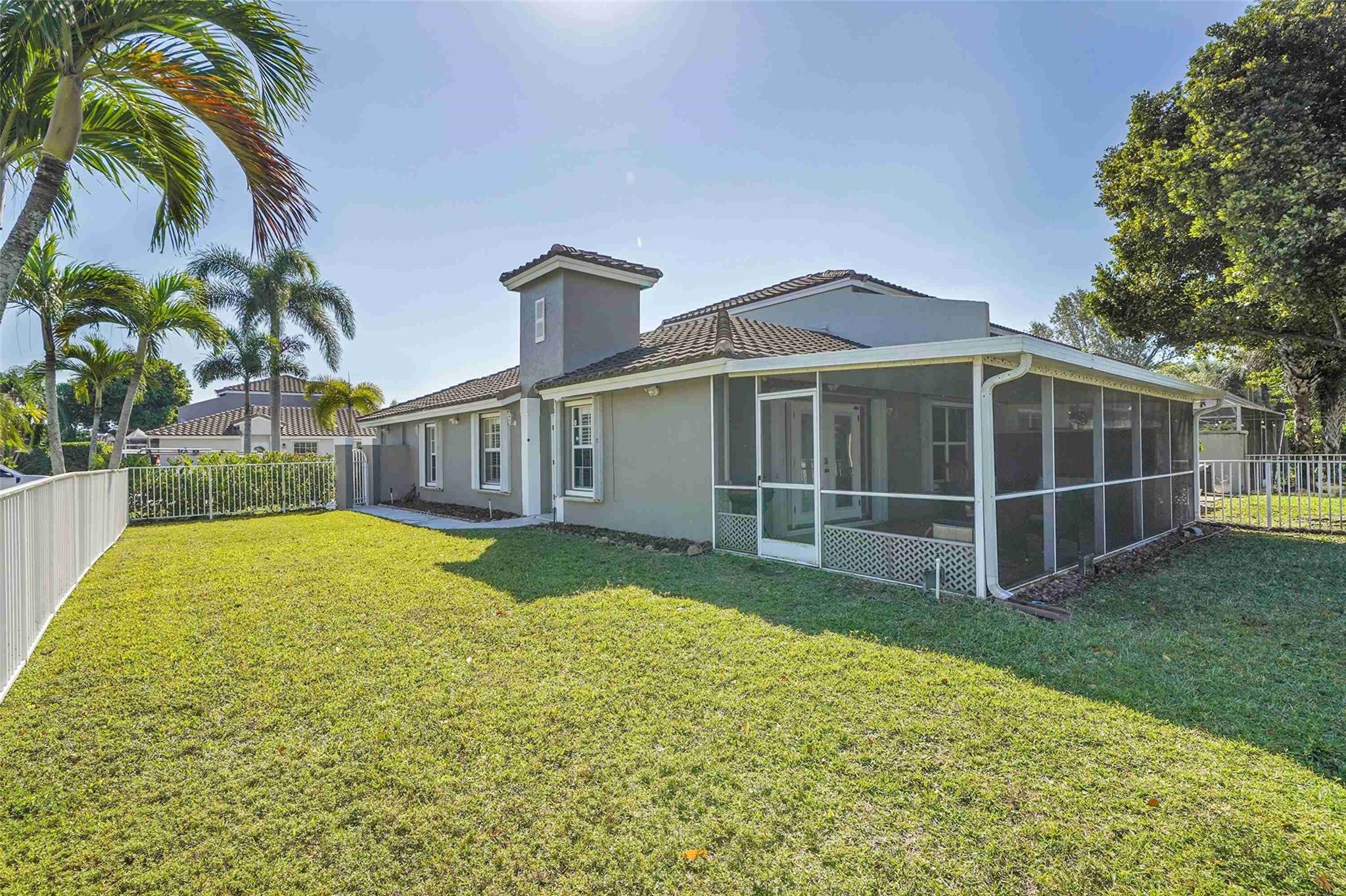 PRICE REDUCED! Stunning 3BR/2BA end-unit villa in gated Addison Court at Wyndham Lakes, Coral Springs. Enjoy serene water views from an oversized fenced lot. Features updated kitchen w/granite counters, newer appliances, modern baths & updated flooring. French doors lead to a large covered, screened patio & spacious yard. Hurricane impact door, accordion shutters, newer roof (2020), exterior paint (2021), A/C & tankless water heater. Community pool, low HOA covers exterior, roof & lawn. Zoned for top schools incl. Eagle Ridge Elem & MSD High. Near shopping, dining & Sawgrass Expwy.
