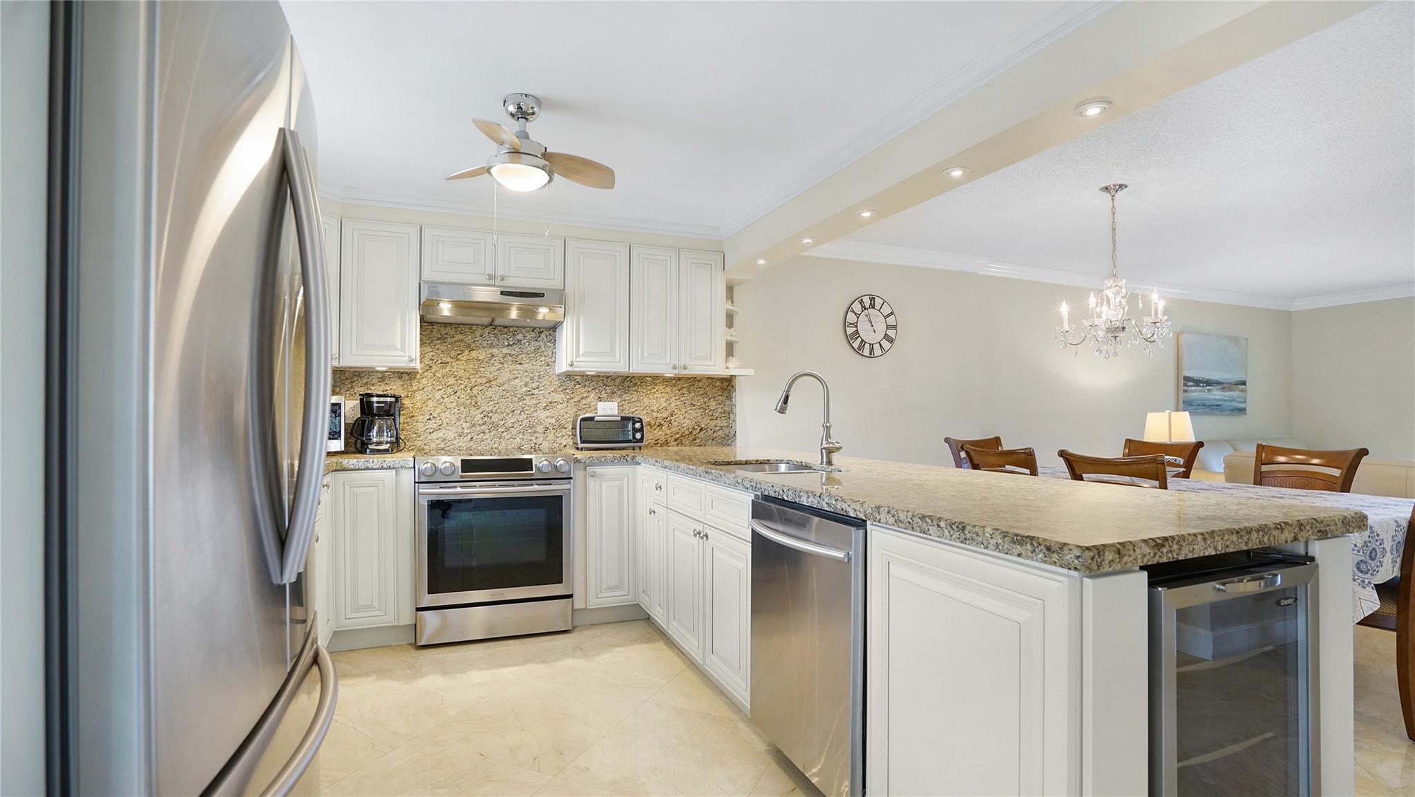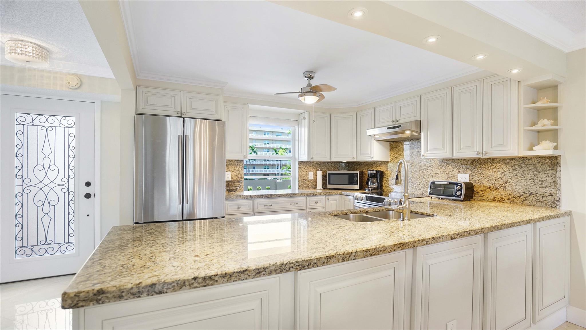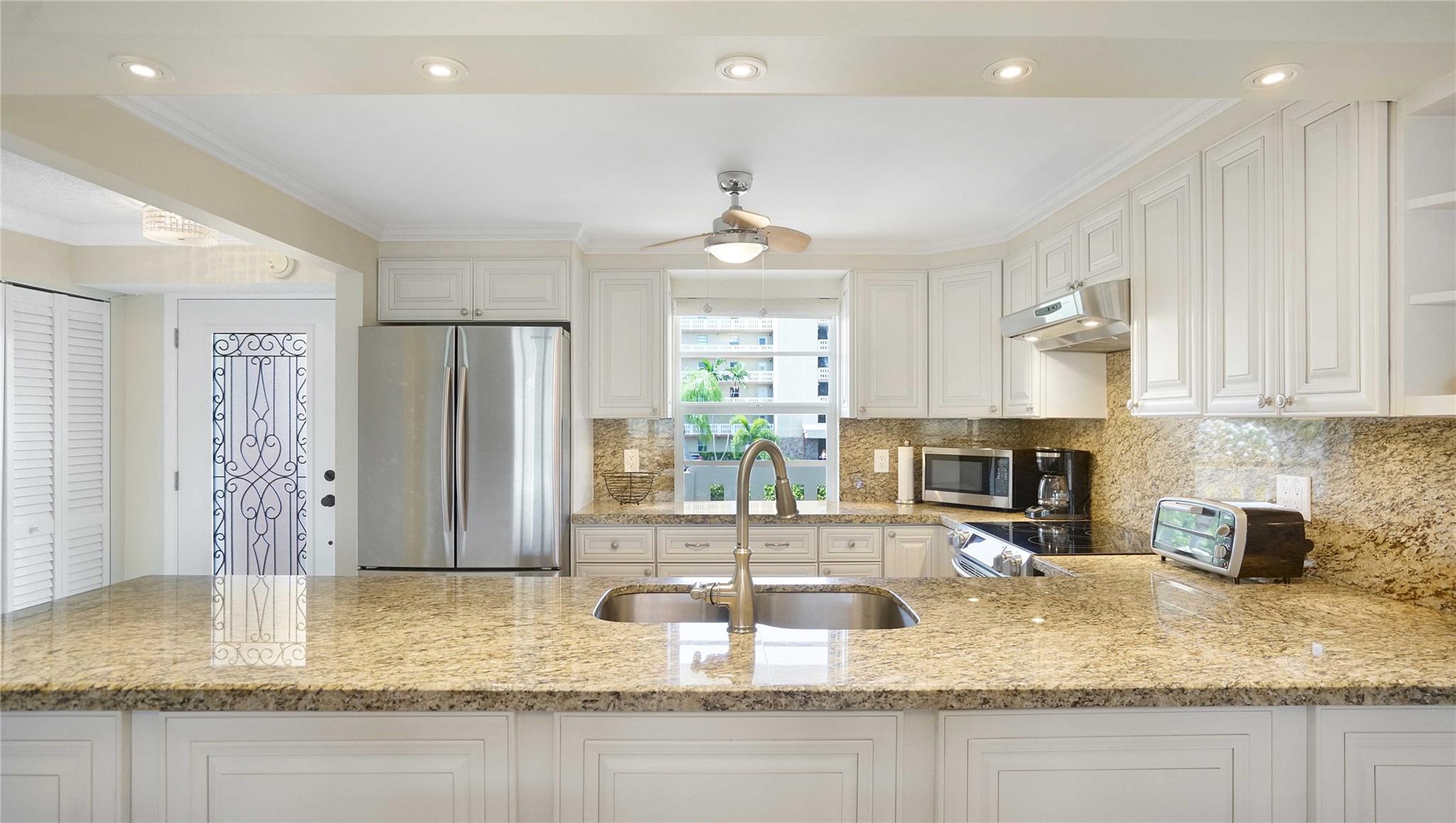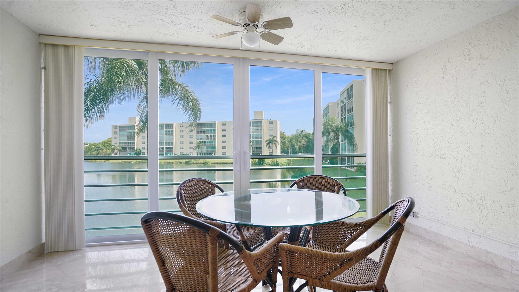 Totally renovated waterfront condo with stunning lake views in a quiet 55+ community, featuring tiles throughout, open kitchen with white custom kitchen cabinets, SS appliances, granite countertops, updated bathrooms with custom vanities, impact windows and door, close to shopping, banking, transportation, parks, ocean access. Located east of US 1 next to the Anne Kolb Nature Center and much more.