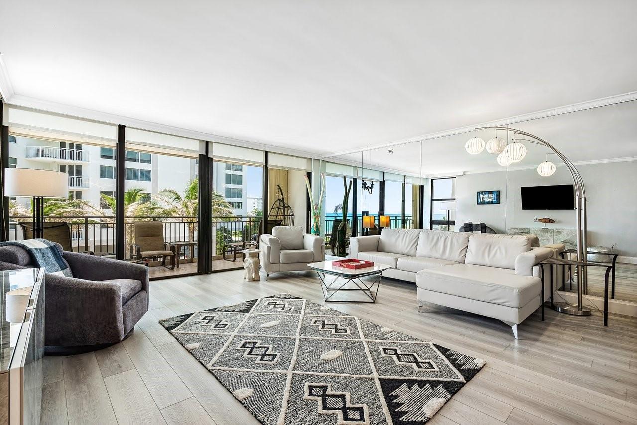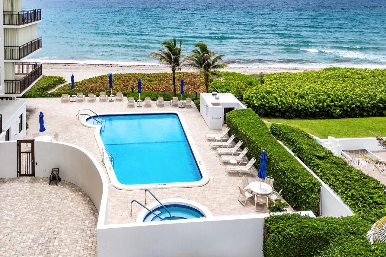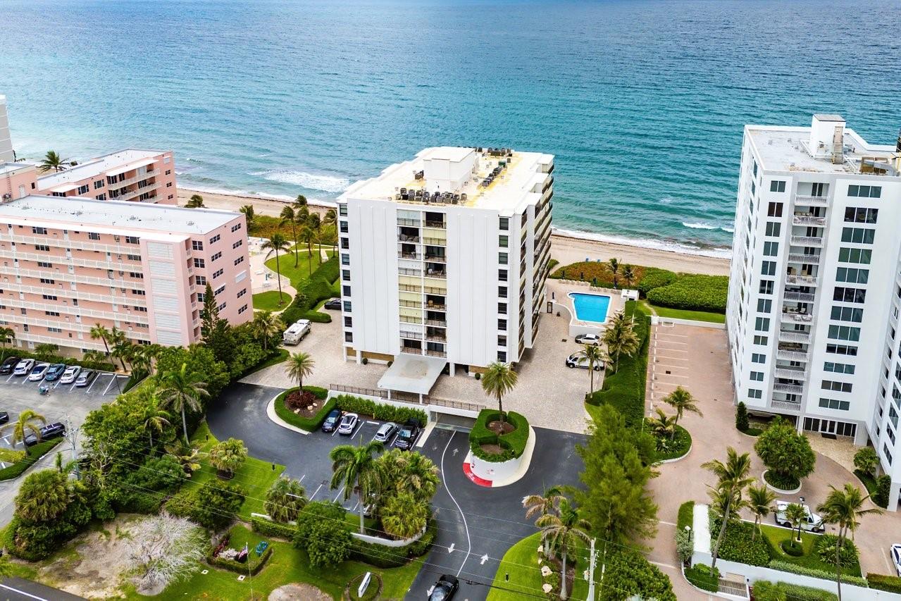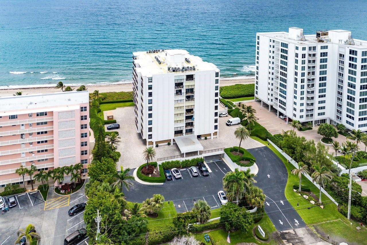 ON THE SAND--3 full bedroom/ 3 full bath in boutique Condo in Highland Beach. Awesome views of the Ocean from Living Room and Master Bedroom. Fully renovated with open kitchen. 2 balconies, enjoy sunrises and sunsets. One underground parking space w ample guest parking. Pool and jacuzzi overlook the Ocean. Bike to Atlantic Ave or quick drive to enjoy shops, restaurants and night life: or walk just 3 buildings north to Latitudes. Enjoy the best Highland Beach has to offer. Remodeled Lobby and Concrete Restoration assessments paid. Social Room w expansive view of the ocean is great for small get togethers. Low HOA $5050 Quarter. Furniture negotialble. NO PETS, NO SMOKING. On Site manager 9 -5 Monday thru Friday.