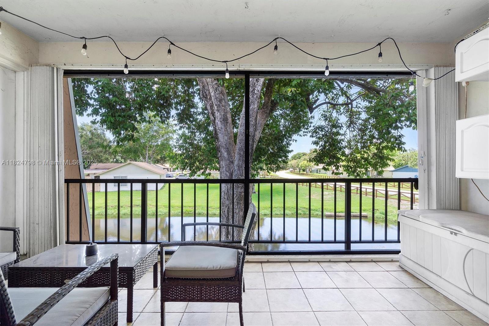 Perfect for college roommates! Spacious 2-bed, 2-bath condo less than 2 miles from Nova Southeastern and nearby universities. Each bedroom feels like a primary suite, offering privacy and comfort. Enjoy 1,358 sq ft of living space with a large screened-in balcony and peaceful water views. Features include wood kitchen cabinets, a mix of tile, laminate, and carpet, plus a NEW A/C (installed 8/2024). Dedicated laundry room with extra storage or study space. Low HOA at $477/month. Two assigned parking spots. Close to campus, dining, shopping, and highways.