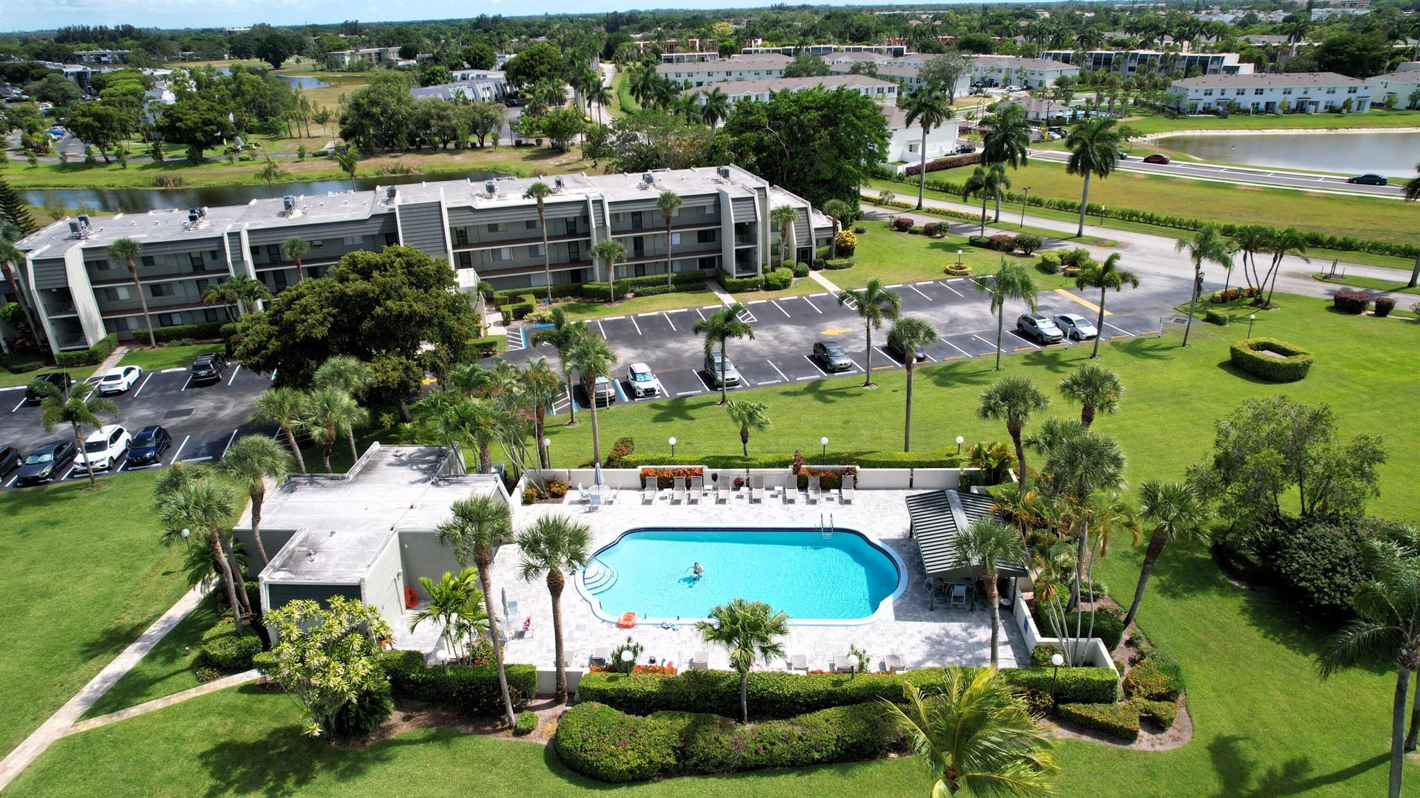 Beautifully renovated and FULLY FURNISHED offered turn-key, this updated condo in the sought-after 55+ community of The Fountains is perfect as a seasonal escape or second home or primary. Enjoy the freedom of no mandatory golf membership while living in comfort and style. The kitchen features maple wood cabinets with crown molding, granite countertops, and updated fixtures, while both bathrooms have been upgraded with matching maple cabinetry, granite, and modern lighting and plumbing. Diagonal tile flooring runs throughout the main living areas, and large hurricane-impact sliding glass doors open to an extended lanai/patio, adding valuable extra living space. Additional highlights include a walk-in closet, in-unit washer and dryer, updated 4,000 electrical panel and outlets
