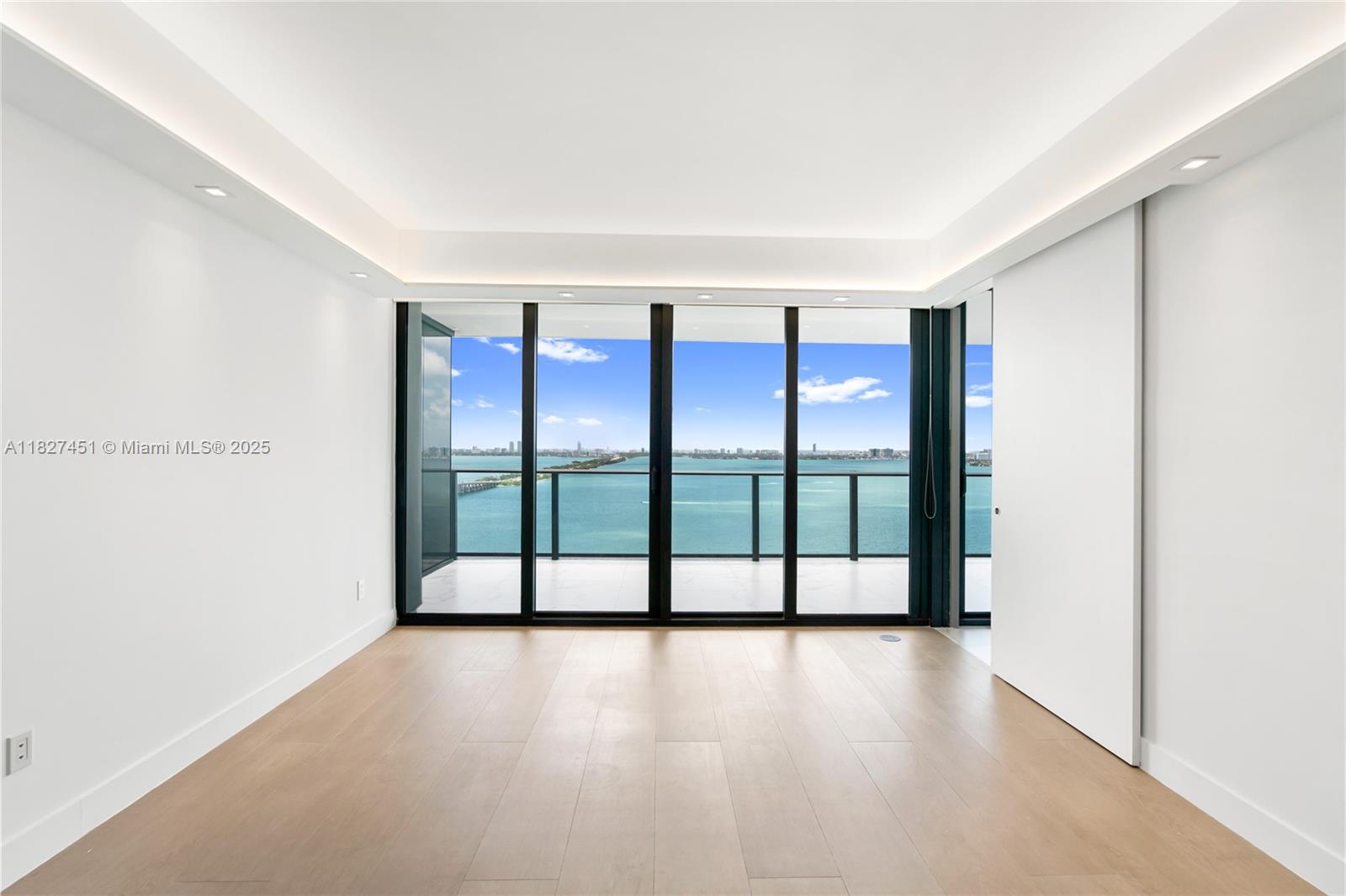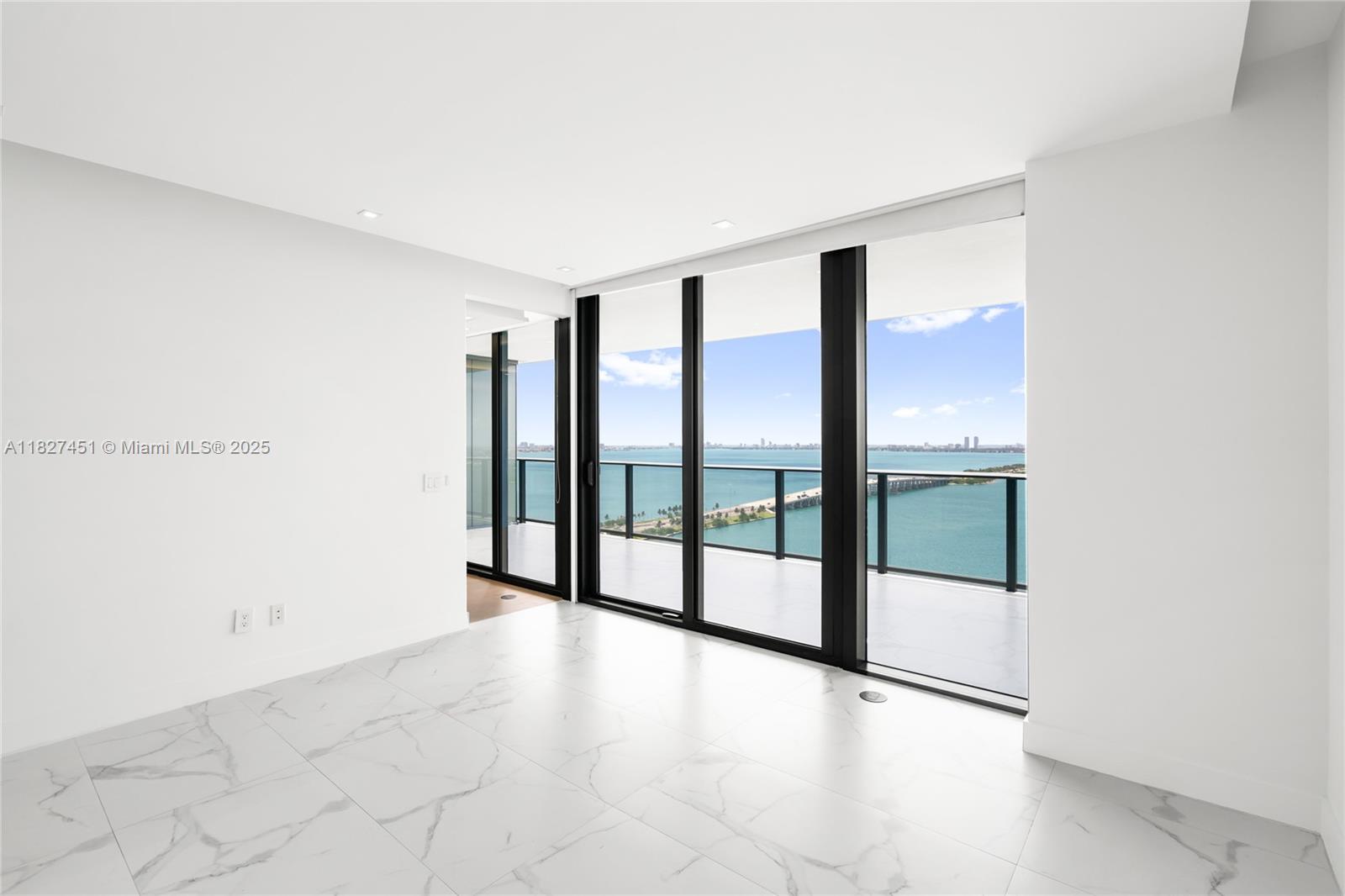 Come live in this One Paraiso 2 bed / 2 bath residence with private foyer and stunning views of the Biscayne Bay. Unit features an open kitchen design with moveable island, upgraded lighting throughout, built out closets, blinds and a very expansive terrace, perfect for entertaining. Five star amenities including a full service spa, 2 pools, cabanas, fitness center, tennis courts, movie theatre, game room, party room, bay access to Amara, 24 hr security and valet. Unit is vacant and easy to show, please text listing agent or use showing time.