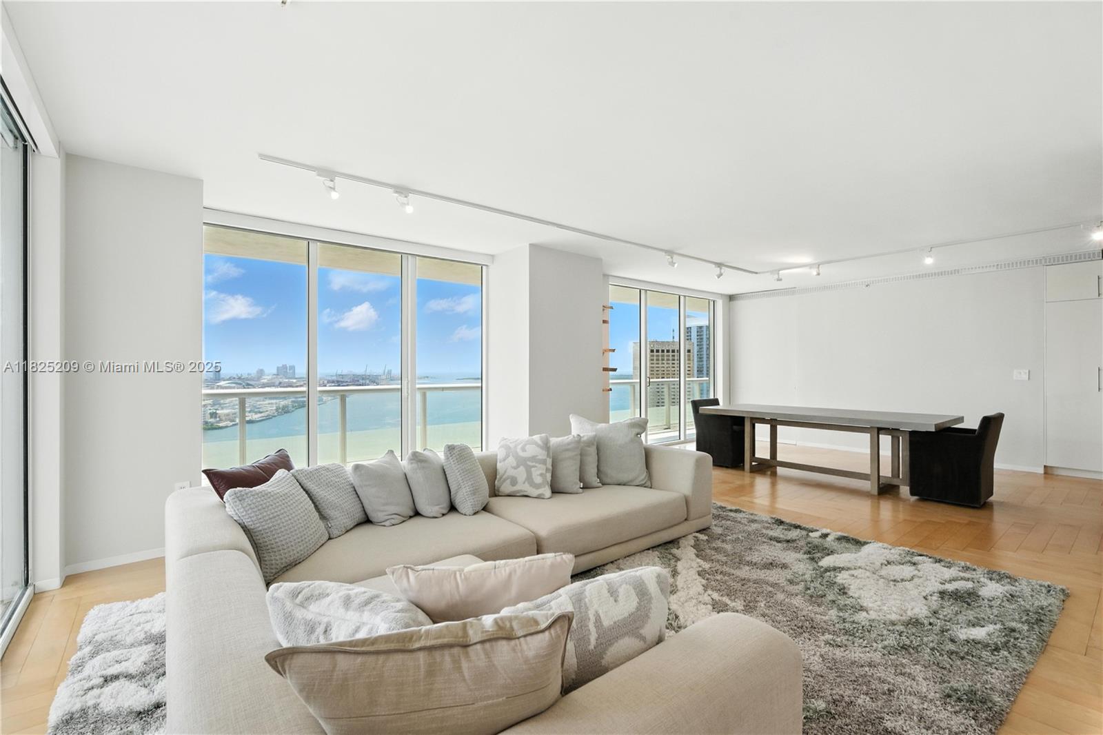 Live in luxury at 50 Biscayne in this bright, spacious 3BR/2BA corner unit. This high-floor home is freshly painted and features an open layout with hidden doors, California closets, a built-in breakfast area, a flexible office/3rd bed, and a large wraparound balcony with upgraded marble floors and stunning Bay, Miami Beach, and sunrise views. Modern kitchen with white cabinets, granite counters, and stainless appliances. Upgrades: electric blinds, renovated baths and New washer dryer. Resort amenities: pool, cabanas, gym, spa, business center, 24/7 security. Steps to Bayfront Park, Kaseya Center, Brickell City Centre, Whole Foods, Metromover, and top dining and entertainment. Pet-friendly building with valet and assigned parking. Live in the heart of Downtown Miami!