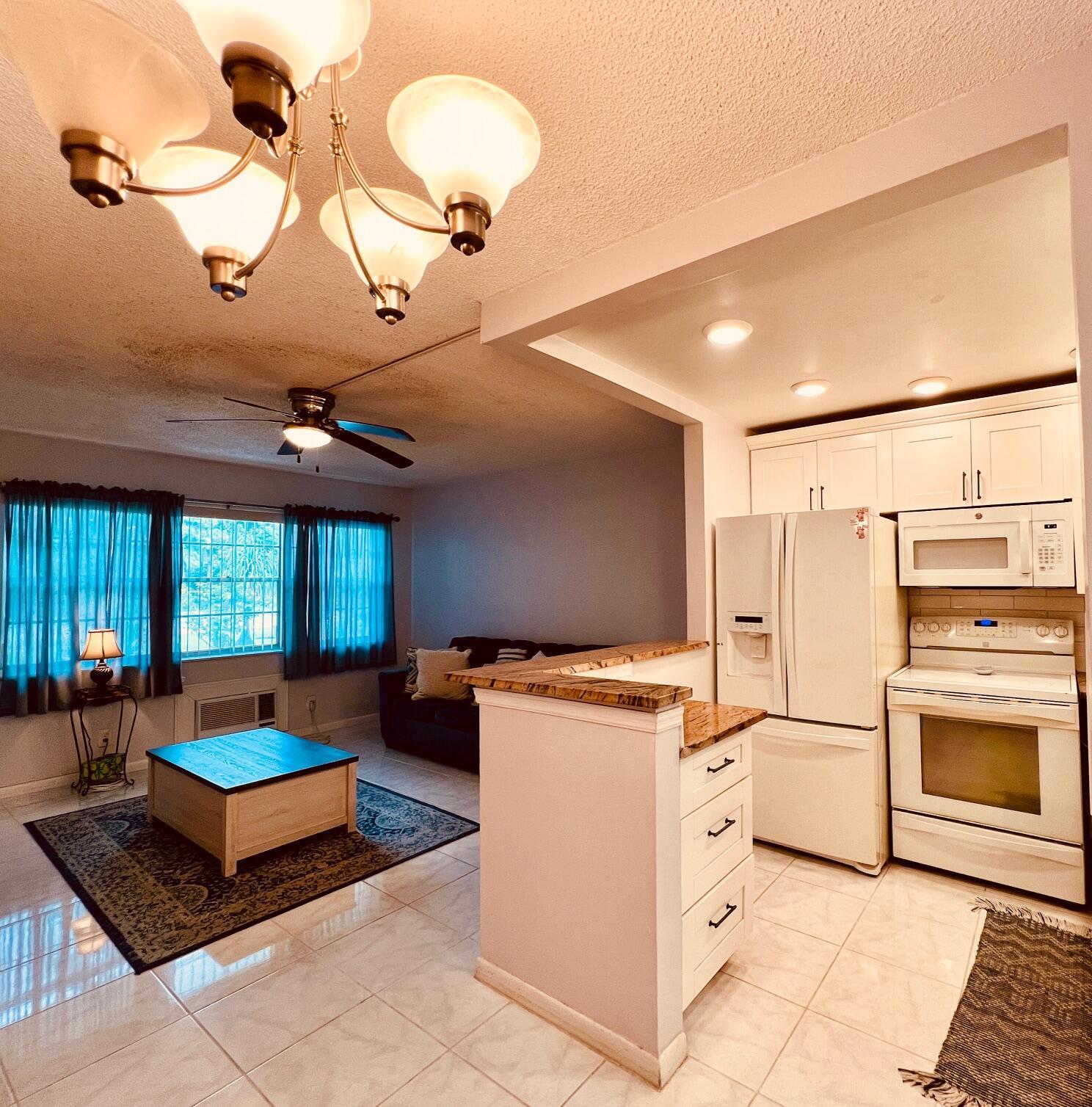 Beautifully Updated & Move-in Ready! FIRST FLOOR 1/1 In Vibrant 55+ Century Village. Open Living Area Highlighted By the Updated Kitchen With White Shaker Style Cabinets, Granite Counters, High-Hat Lights, And Upgraded White Appliances - Smooth Top Range, French Door Refrigerator, and a Dishwasher! Updated Full Bath W/ Step-in Shower. Neutral Tile Flooring Throughout. Large Bedroom With Wall of Closets & Access to the Enclosed Lanai. Tons of Storage W/ A Walk In Closet, Full Wall of Closets in Bedroom, and Large Storage Closet on the Lanai. Well Maintained Building With New Roof (2022) and No Special Assessments! Fantastic Location Very Close to Hastings Fitness Center. Sold Furnished As Shown. Century Village Is a Resort Style 55+ Community In Highly Desirable Palm Beach County! Enjoy..