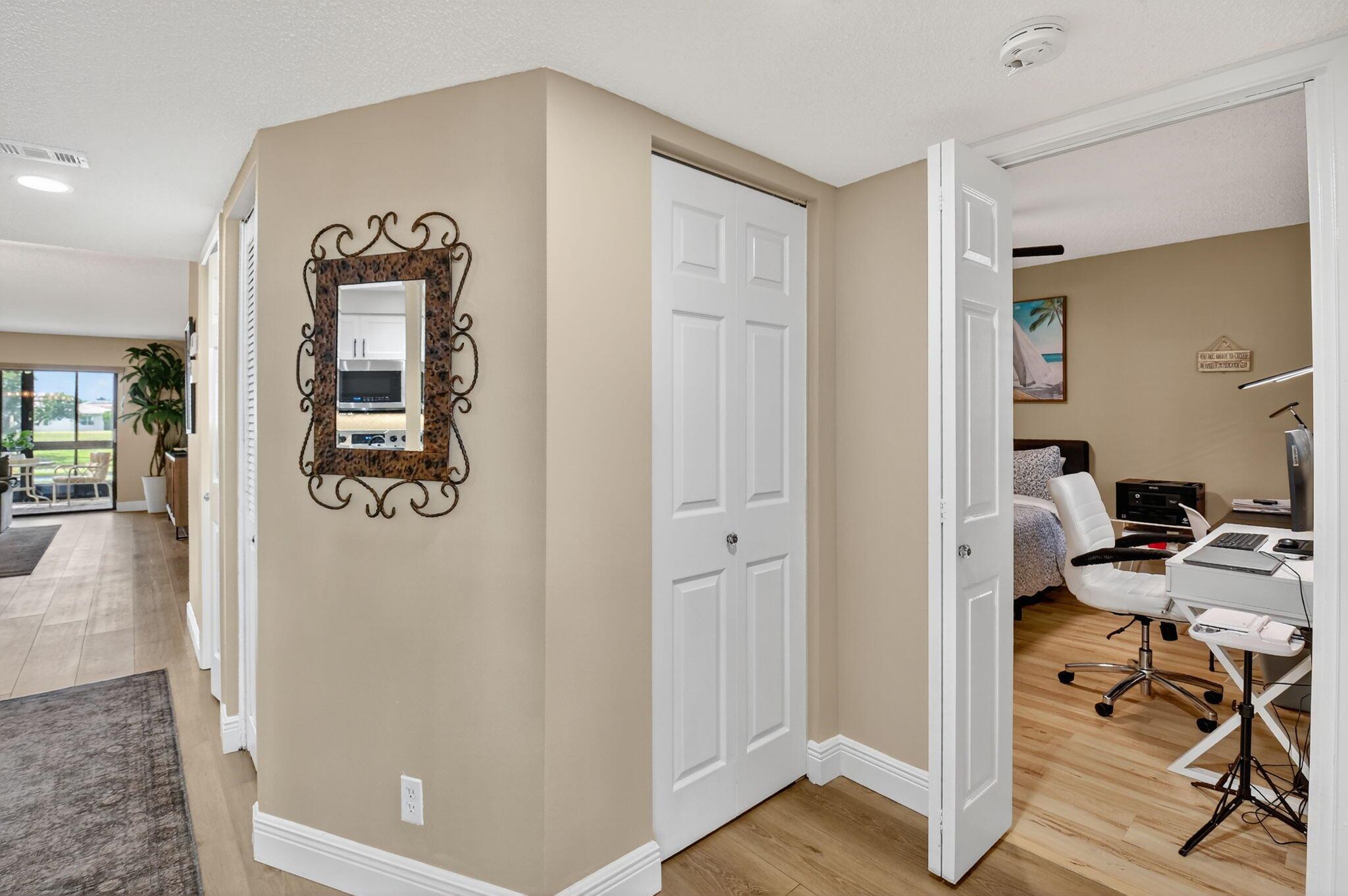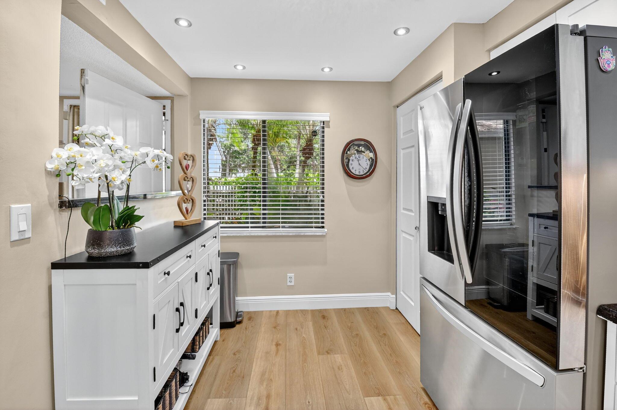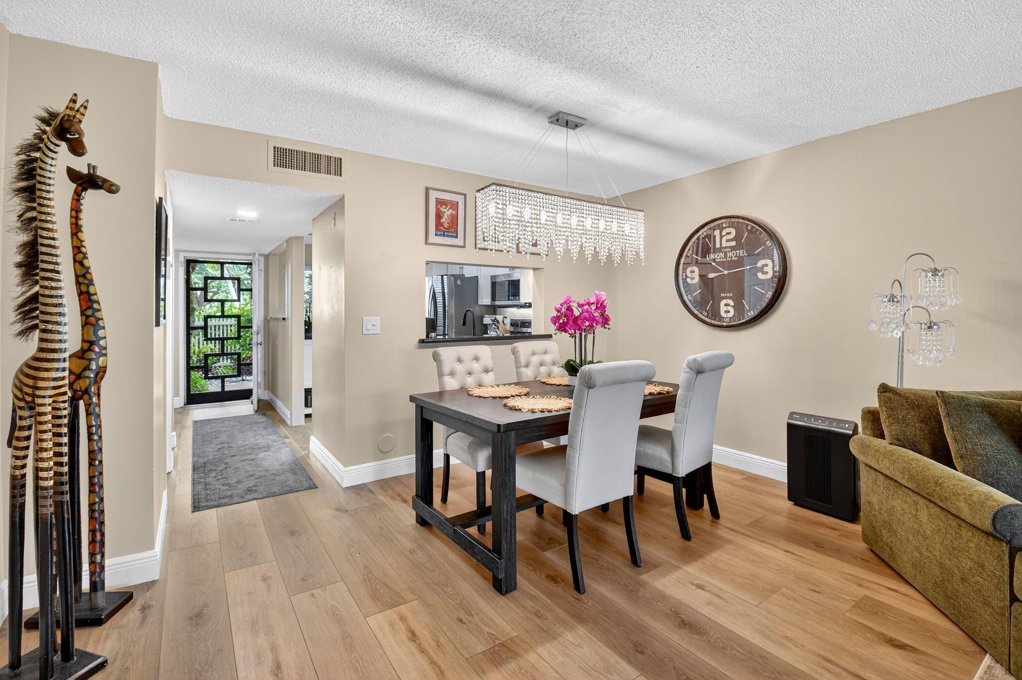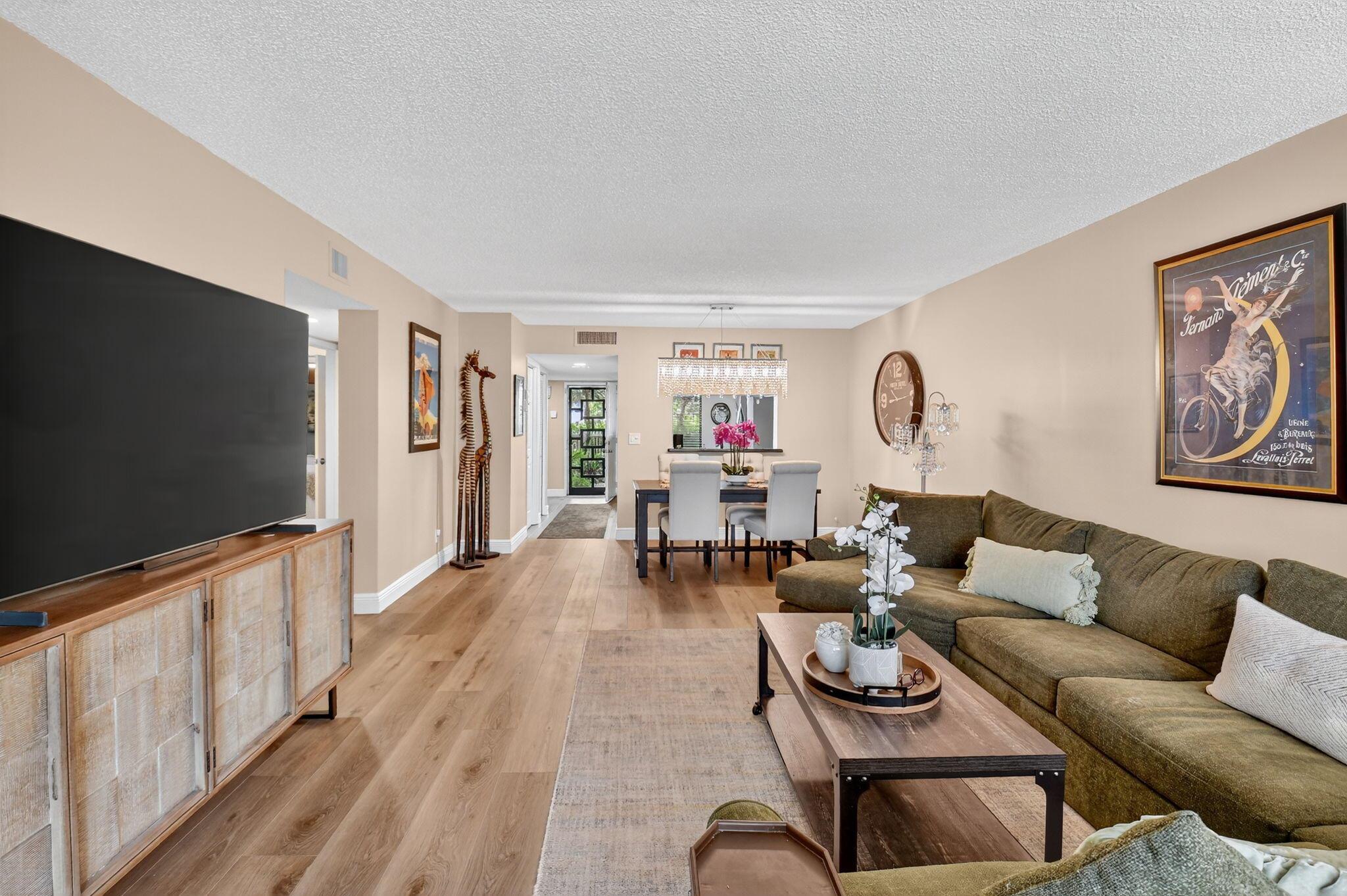 A lush, floral oasis welcomes you into your own private garden retreat. This charming ground-floor condo has a designated parking just steps from the front door. Inside, contemporary finishes create an inviting atmosphere throughout the unit.The sleek, open-concept kitchen has been elegantly updated with premium appliances, beautifully refaced cabinetry, a stylish backsplash, and granite countertops--perfect for cooking and entertaining. The spacious living and dining areas are bright and beautifully styled, offering a model-home feel.Enjoy additional living space in the enclosed Florida room, complete with serene views and direct access to a walking path that leads to the large primary suite. This tranquil bedroom features include a cozy sitting area, two custom walk-in closets