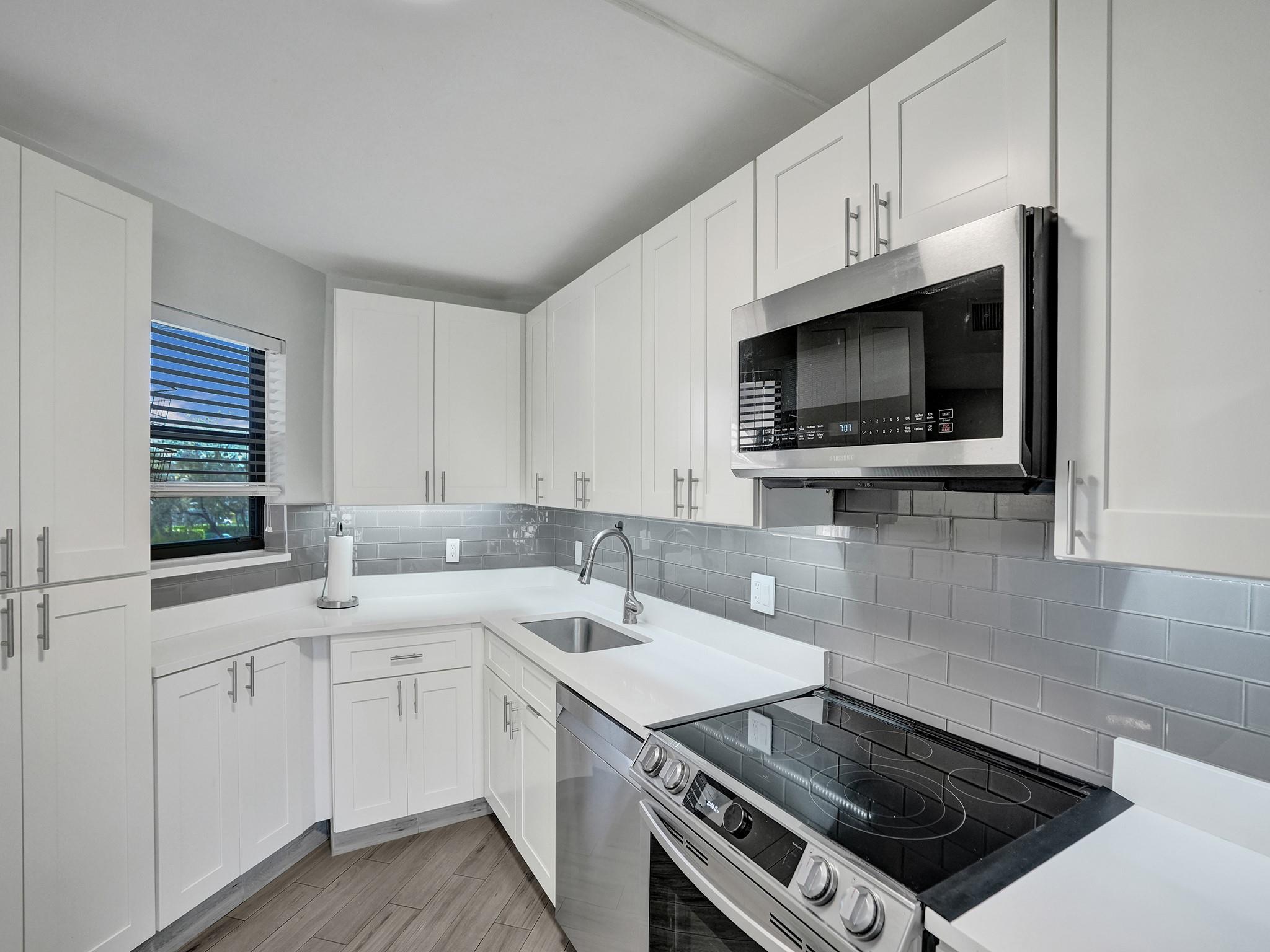 Welcome to this stunning remodeled 2 bedroom 2 bath unit located in this amazing 24 hours manned gated community Camino Real Village in Boca Raton. This community is close to top A rated schools, highways, restaurants. Newly renovated kitchen includes Samsung Appliances, Wine Cooler, Newer stackable washer and dryer. A/C and Heater was replaced in 2021, new floors, This unit offers oversized screened balcony, community has 4 heated pools, tennis courts, sauna and pickle ball courts. Unit has one-car garage, 1 assigned parking spot, and other guest parking. Beach is 5.5 miles away, Boca Town Center Mall is 3 miles away.