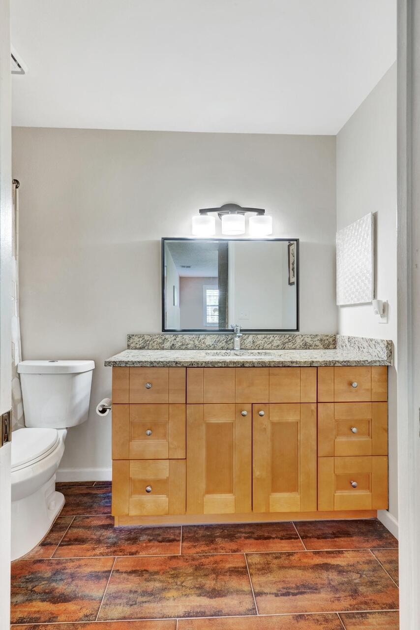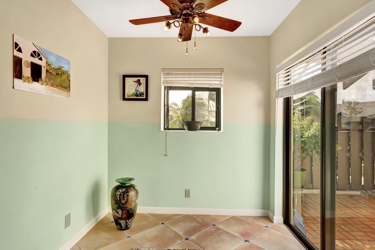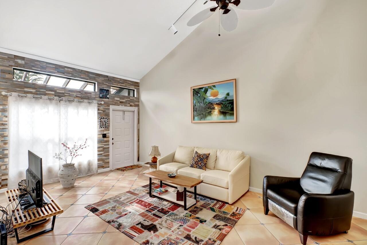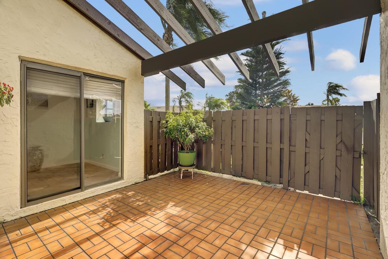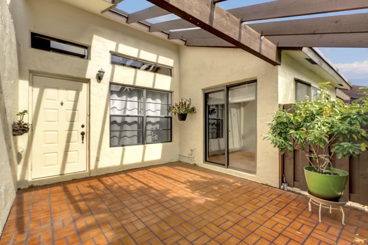Enjoy Delray Beach living in this oversized 1-bedroom, 1.5-bathroom garden-view villa, fully furnished and move-in ready. Enter through your private fenced courtyard into a spacious, light-filled home with soaring 20-ft vaulted ceilings and tall windows. The beautifully remodeled eat-in kitchen features real wood cabinetry, stainless steel appliances, and glass sliding doors that open directly into the courtyard. The master suite includes two walk-in closets and a master bath with combo tub/shower. The half-bath is updated with a separate vanity area, new wood cabinets, and granite countertop. Additional upgrades include a brand-new A/C, new roof, and new washer and dryer. The unit is tastefully decorated with designer finishes and comes fully furnished, offering effortless comfort