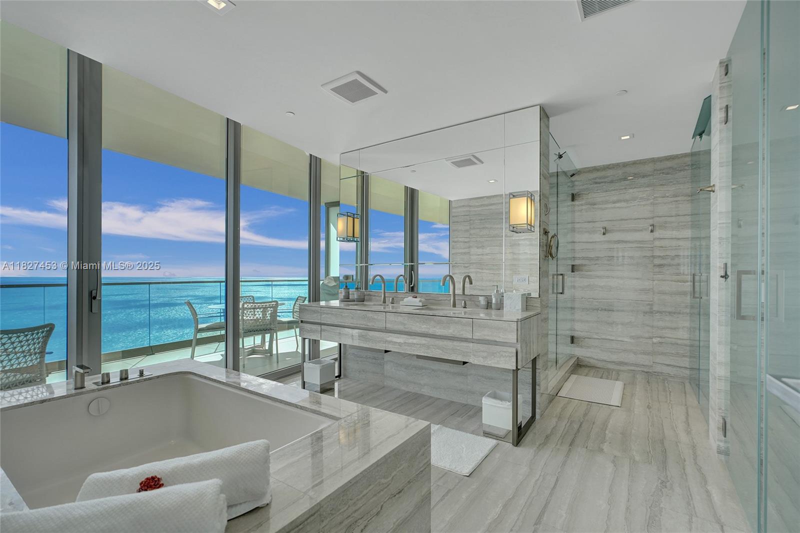 Experience luxury living at the prestigious Residences by Armani Casa with this stunning 4-bed/ 5.5-bath corner residence featuring nearly 90 ft of oceanfront terrace and wraparound balconies offering panoramic sunrise-to-sunset views. The thoughtfully designed layout includes a primary bedroom with direct ocean views and secondary bedrooms with ocean & bay views. Interiors by Armani’s Italian design studio feature Dada Armani kitchen cabinets, marble countertops, top-of-the-line Miele appliances, and exquisite Italian marble bathrooms. The building offers world-class amenities, including an on-site restaurant, beach and pool services, a state-of-the-art fitness center with cardio, weights, and Pilates equipment, and a luxurious spa with massage rooms, salon, and private treatment spaces
