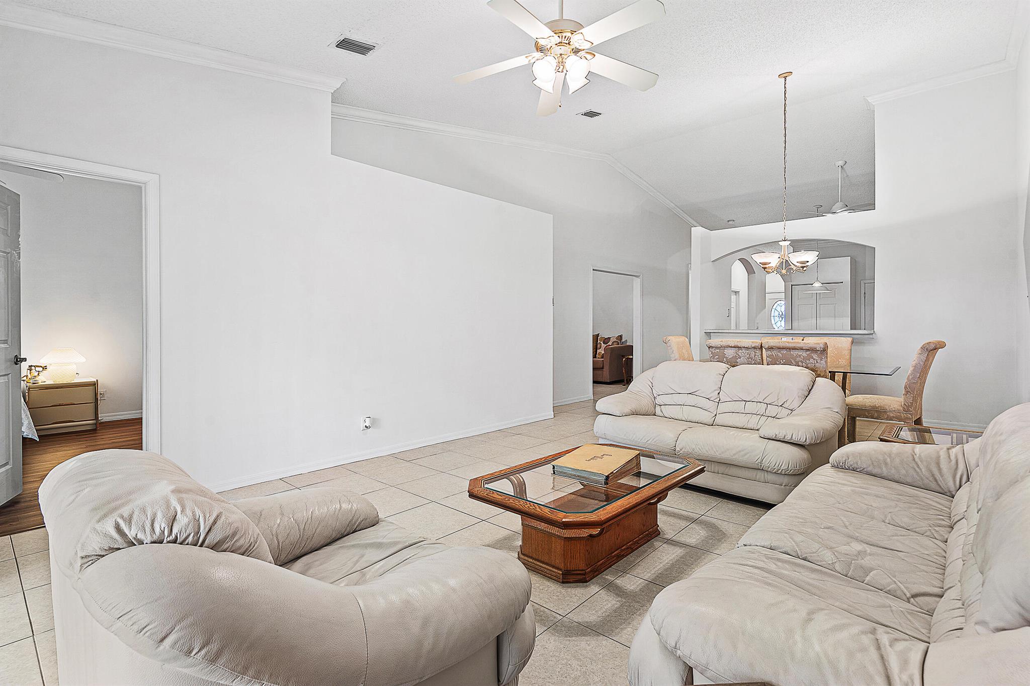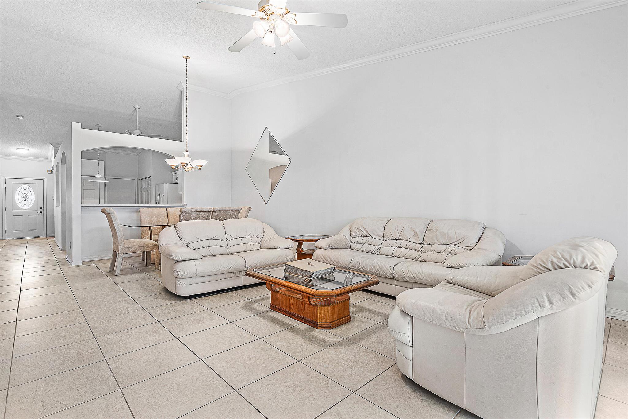 Welcome to Bridgeport section of Baywinds, a 55+ gated community. This open concept single story home offers a spacious split-bedroom layout, ceramic tile floors with wood in primary. Featuring high ceilings a screened in patio, accordion shutters & 1 car garage. Baywinds features resort style amenities: clubhouse, pools, fitness, tennis, pickleball, bocce, shuffleboard & more. Close proximity to turnpike & dining/shopping.