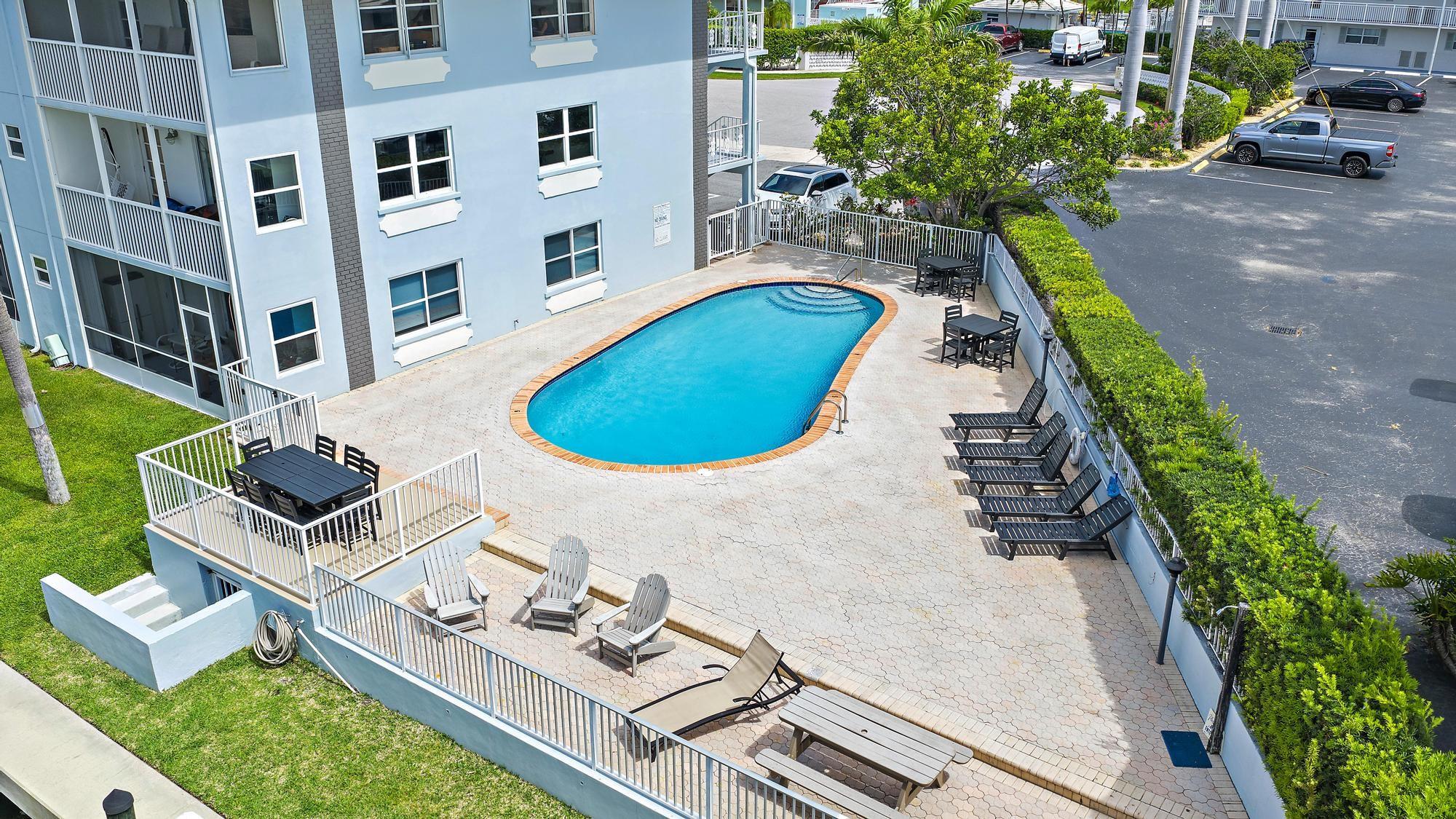 RARE opportunity to own this 3rd floor CORNER unit with breathtaking intracoastal views. Located in North Palm Beach just minutes to Peanut Island by boat. No fixed bridges- boat slips available $3 a linear ft. up to a 33ft boat. Live the waterfront lifestyle by fishing off the sea wall in your backyard or relaxing by the pool overlooking the intracoastal while feeling the ocean breeze. Excellent investment property or come and make it your own! Elevator in building. Washer and dryer included. Hurricane impact sliding door. Roof (2018), AC (2020), Exterior paint (2022), Repaved parking lot (2024).