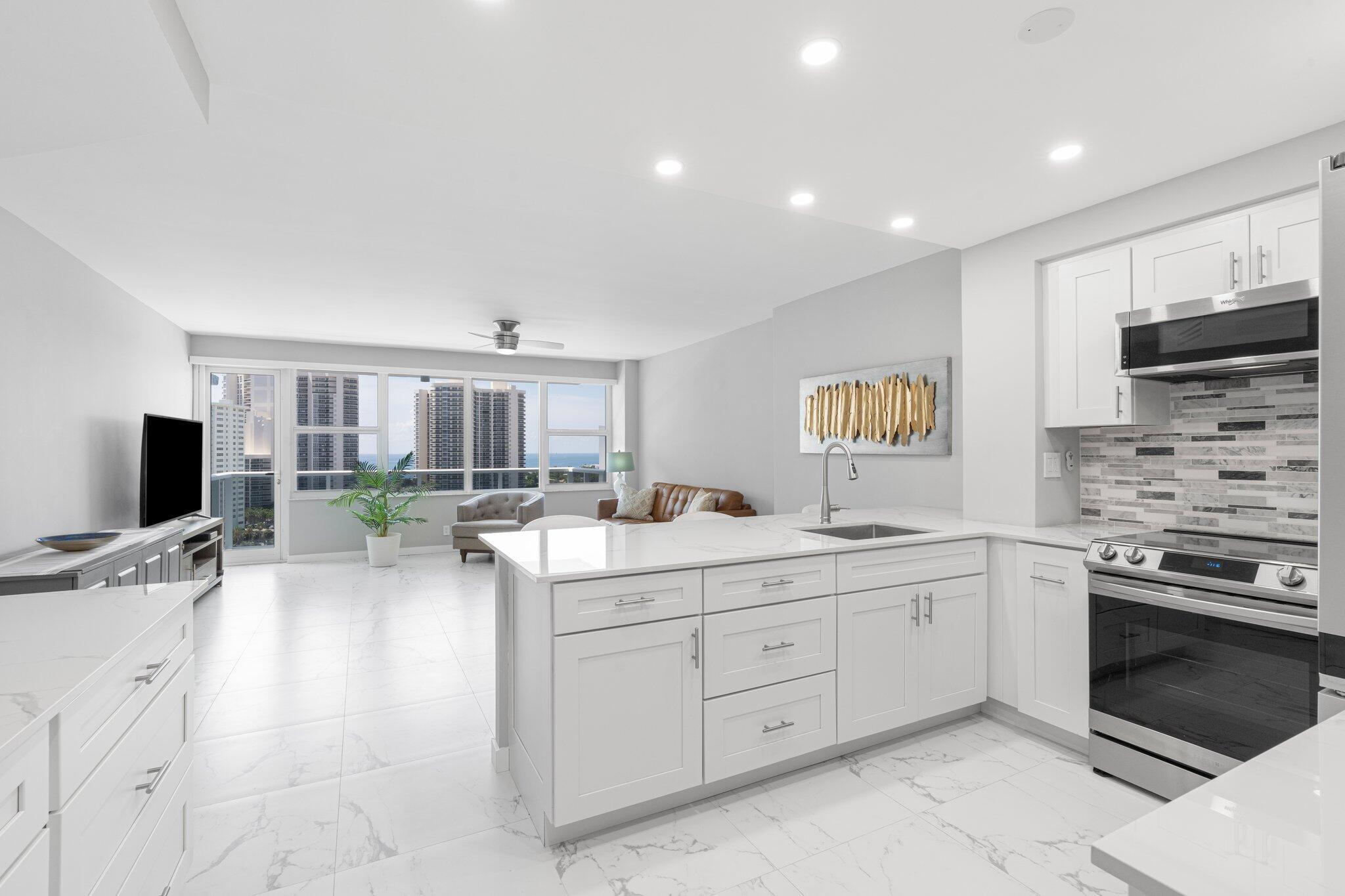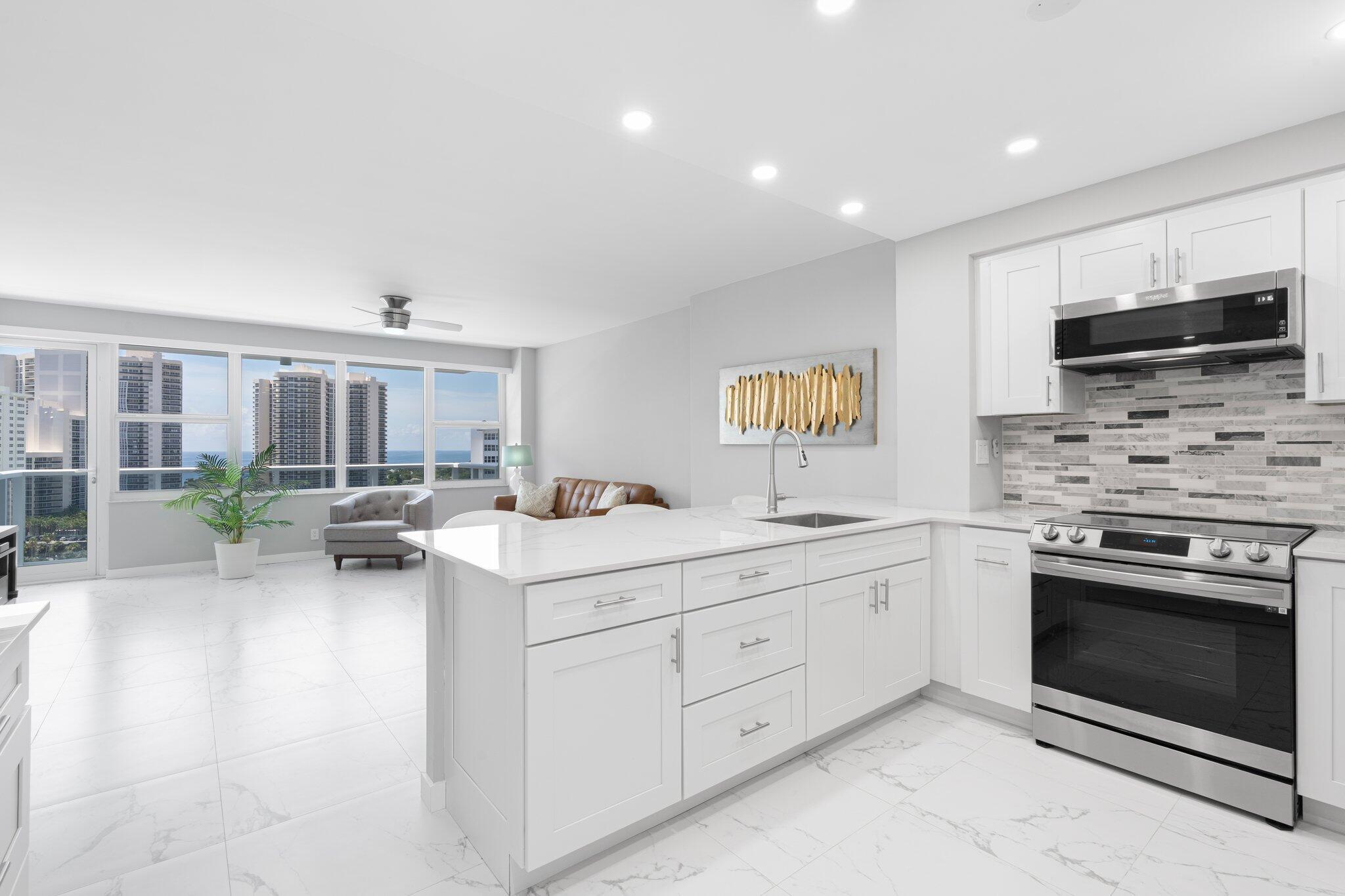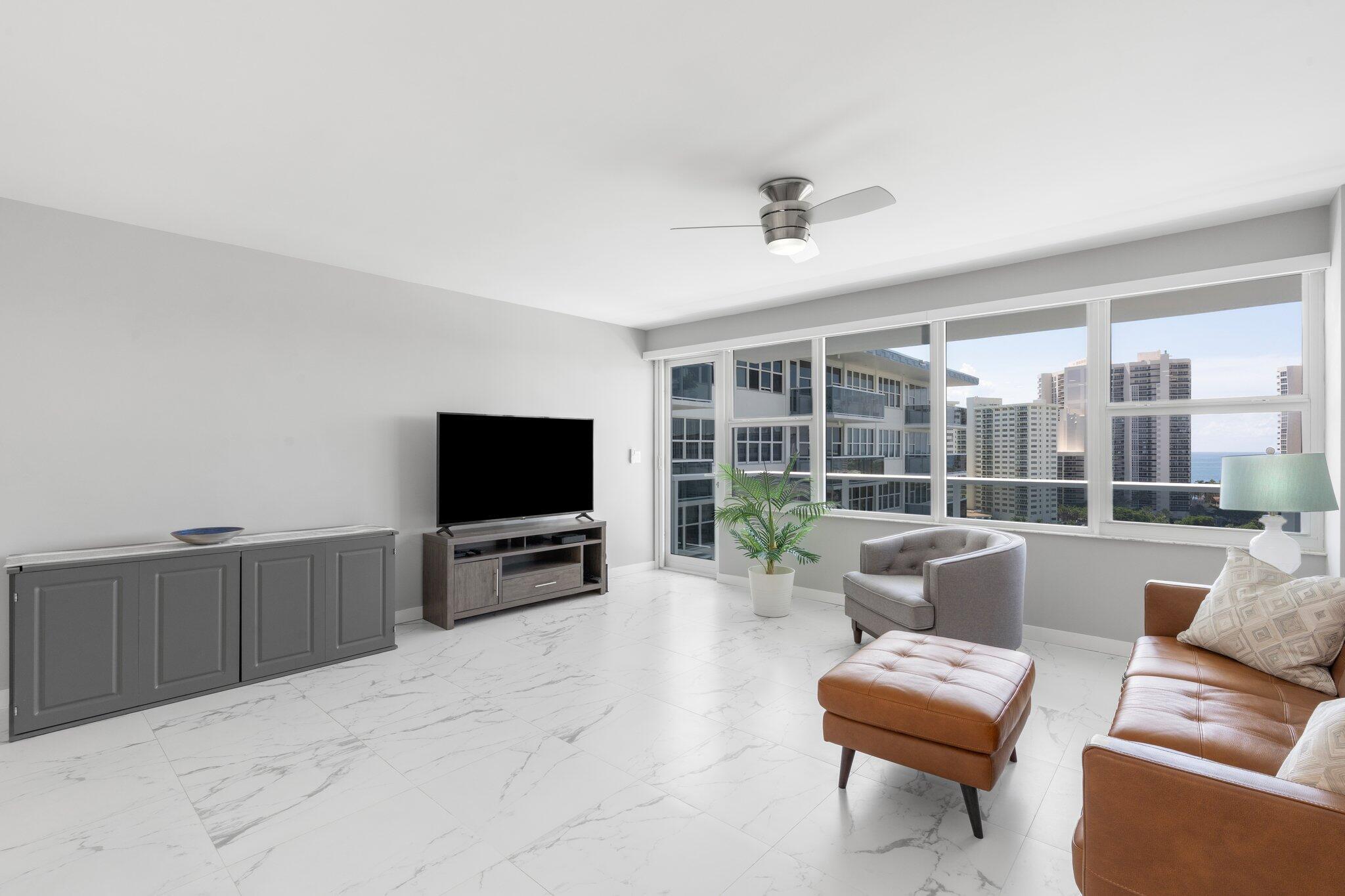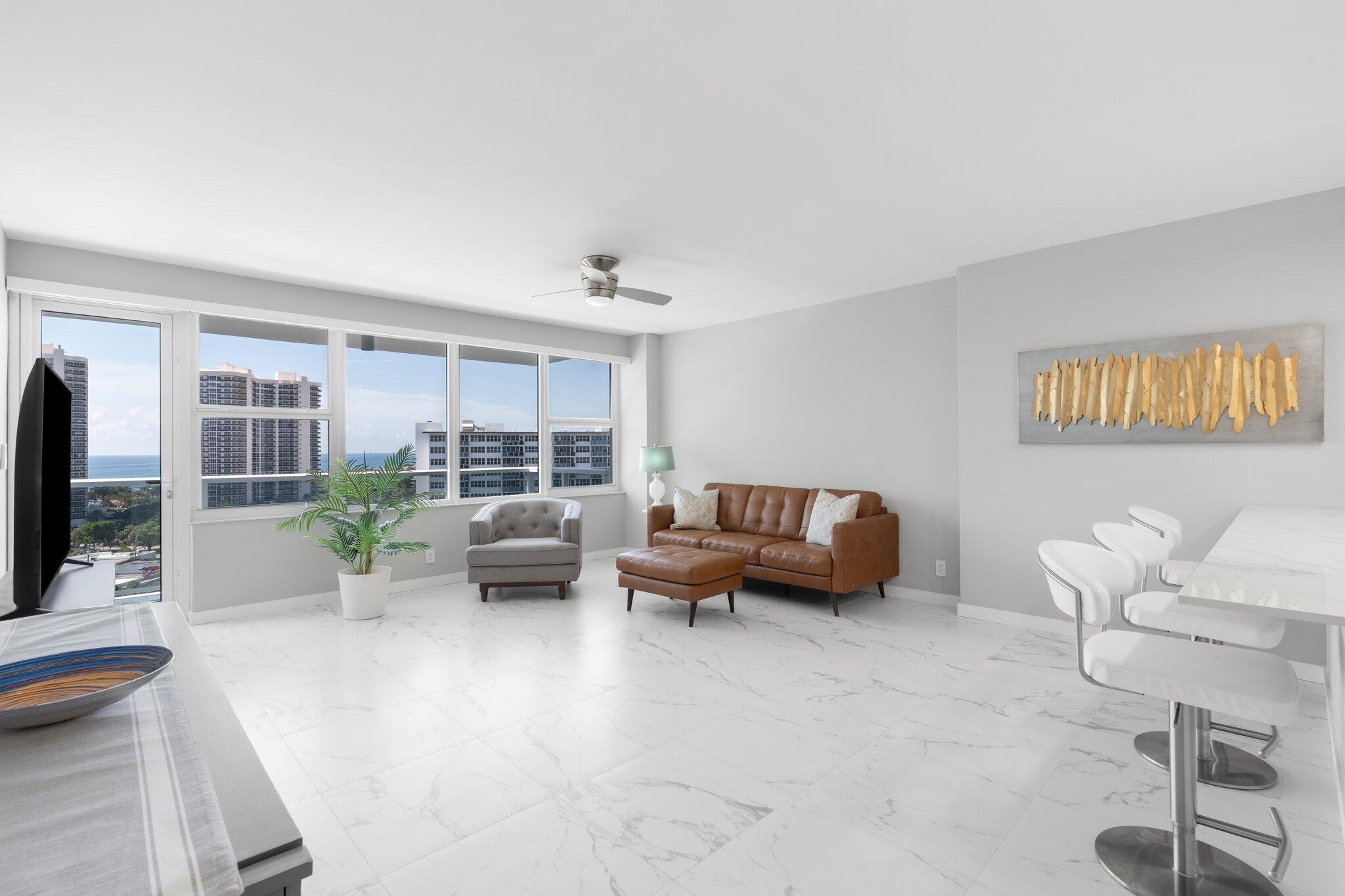 Beautifully renovated 16th-floor condominium, located in one of Fort Lauderdale's most desirable 55+ communities. Fully renovated in 2023-2024, this turn-key residence offers the best of modern living paired with Atlantic Ocean and Intracoastal Waterway views. Enjoy peace of mind knowing that all major benchmark inspections have been completed and there are no pending assessments. Exterior building renovations are also fully finished. The building offers 24-hour manned security. Whether you're looking for a full-time residence or a seasonal escape, this home combines luxury, location, and lifestyle in one perfect package. Building requires: one buyer to be age 55 or over, min 700 credit score, min $62,018 annual income, Cash only.
