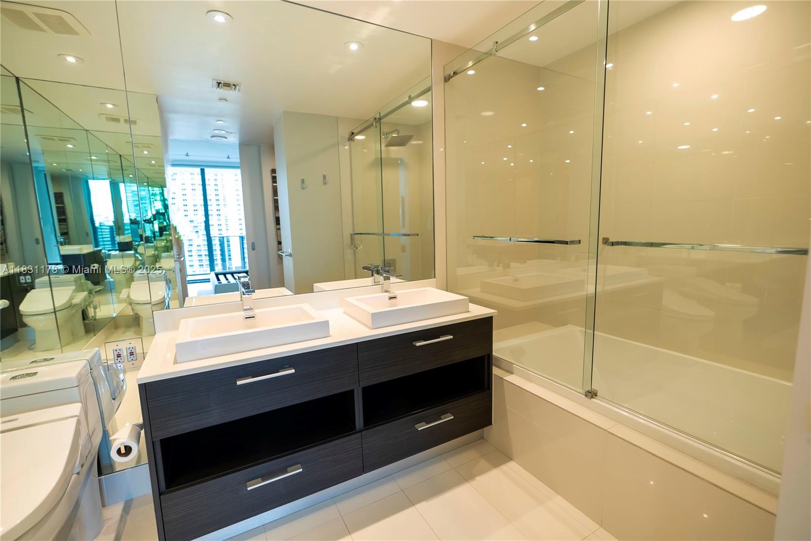 Move-in ready luxury at Brickell Heights! This impeccably furnished 1BD+DEN/2BA unit lives like a 2-bedroom, with a bedroom that can function as a custom high-end walk-in closet. Features include full mirrored master bath, smart home upgrades with Lutron switches and Nest thermostat, and Toto washlet. Designer furnishings from Anima Domus. Open kitchen with premium appliances, elegant finishes, and floor-to-ceiling windows showcasing vibrant city views. Enjoy access to rooftop pool, Equinox gym, spa, kids’ room, theater, and 24/7 concierge. Steps from Brickell City Centre. Artwork/personal items negotiable.