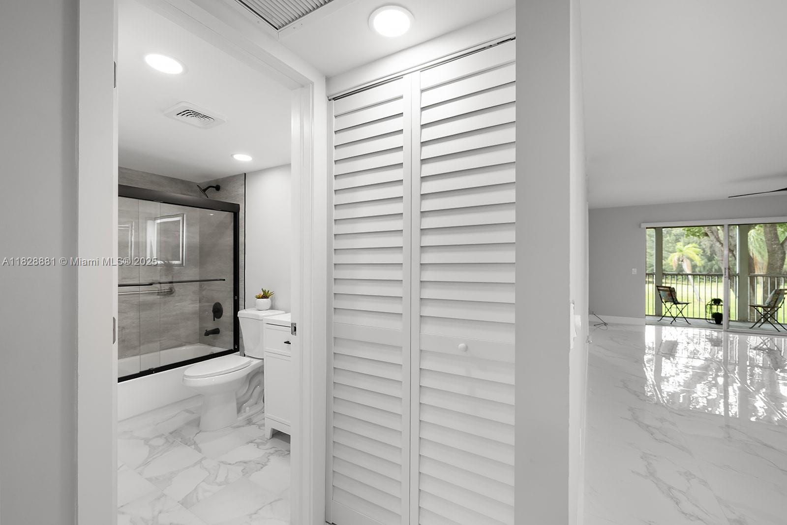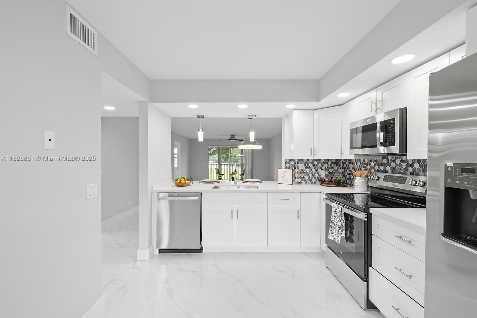 Welcome to this beautifully updated 2/2 unit w/a serene golf view that greets you as you enter the front door. This condo features all-new appliances, ceramic floors throughout, new balcony flooring, & newly plastered walls for a modern feel. Enjoy the convenience of an in-unit washer and dryer, a new hot water tank, and a 2-year-old A/C unit with a Nest Wi-Fi thermostat for energy-efficient comfort. Additional upgrades include a stylish barn door in the bathroom. The HOA is $512/month plus CVP $266/month, and includes water, cable, internet, and access to endless amenities, including a million-dollar clubhouse. Located in Buckingham East I at Century Village, one of Pembroke Pines’ most desirable 55+ active adult communities—minutes from The Shops at Pembroke Gardens and major highways.