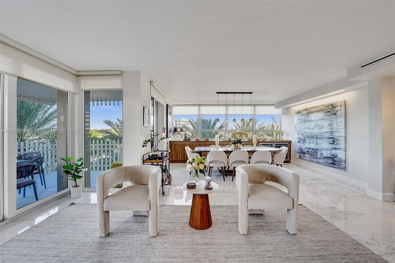 A Tropical Gem! Beautifully remodeled 3 bedroom, 2.5 bathroom at Grove Isle! Upon entering this residence, you’re greeted with 2,424SF of living space along with views of the bay, Grove Isle marina, downtown Coconut Grove, and lush tropical landscaping from every room. No expense was spared! Features include impact windows and sliding doors, incredible lighting throughout, custom closets, large porcelain tile floors, Nest thermostat, modern bathrooms, and a full-size laundry room with built-in cabinets, sink, and stacked front loading washer & dryer by Bosh. The Italian kitchen has high-end cabinetry, stainless-steel GE Monogram Profile appliances, and a Mile dishwasher. The primary bedroom has a large walk-in closet +additional custom-built closet and motorized window treatments.