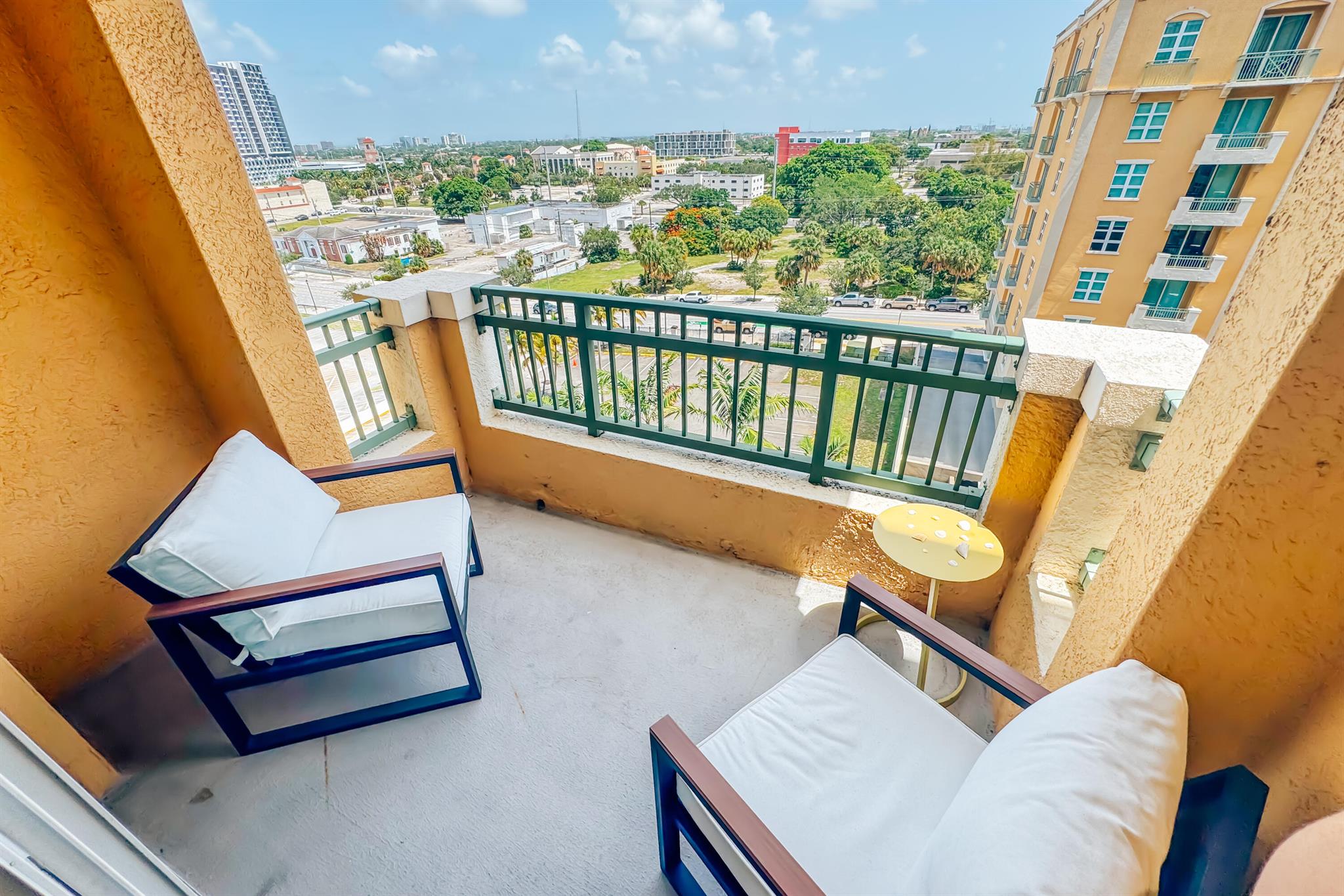 Penthouse living at The Metropolitan! Spacious 2BR/2BA, split floorplan, and private balcony overlooking city views. Elegant finishes include granite countertops, stainless-steel appliances, tile & plush carpet flooring, in‑unit laundry, walk‑in closets, and a luxurious dual‑sink bath with tub and separate shower. Includes 1 parking space.Enjoy resort-style living: 24‑hr concierge, rooftop pool/spa, fitness center, club room, business center, bike storage, secure entry and elevator access. Ideally located downtown, you're steps from the Kravis Center, Rosemary Square (formerly CityPlace), fine dining, entertainment, Publix and a short drive to Palm Beach and nearby beaches. Close proximity to I‑95, Palm Beach based hospitals, vibrant parks, and the wat