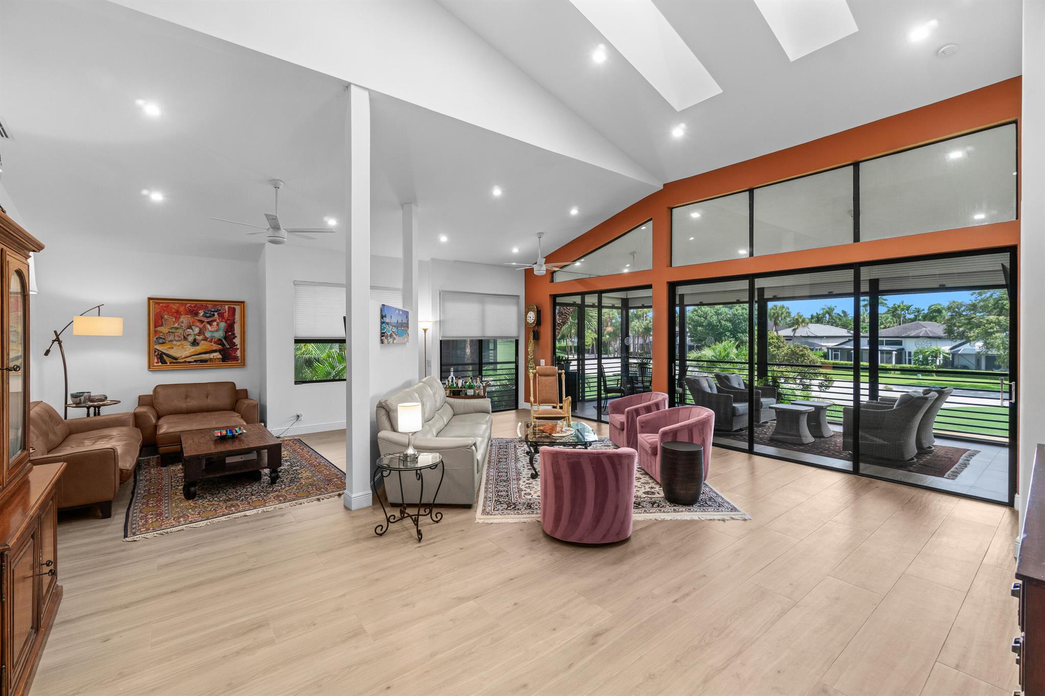 Discover an exceptional opportunity to own a completely renovated luxury condo in the prestigious, award-winning Polo Club. From the moment you arrive, a private elevator welcomes you into this expansive, designer-appointed home where modern elegance meets comfort. The soaring ceilings and thoughtfully designed open layout create an airy, inviting atmosphere. A soft, neutral color palette flows effortlessly throughout the home, providing a calm and cohesive backdrop. The stunning chef's kitchen is a true showstopper, featuring Taj Mahal quartzite countertops, a spacious peninsula with seating, and breathtaking views from every angle. Adjacent to the kitchen, the generous dining area connects seamlessly to the great room and a cozy, tucked-away den--perfect for relaxing or entertaining.