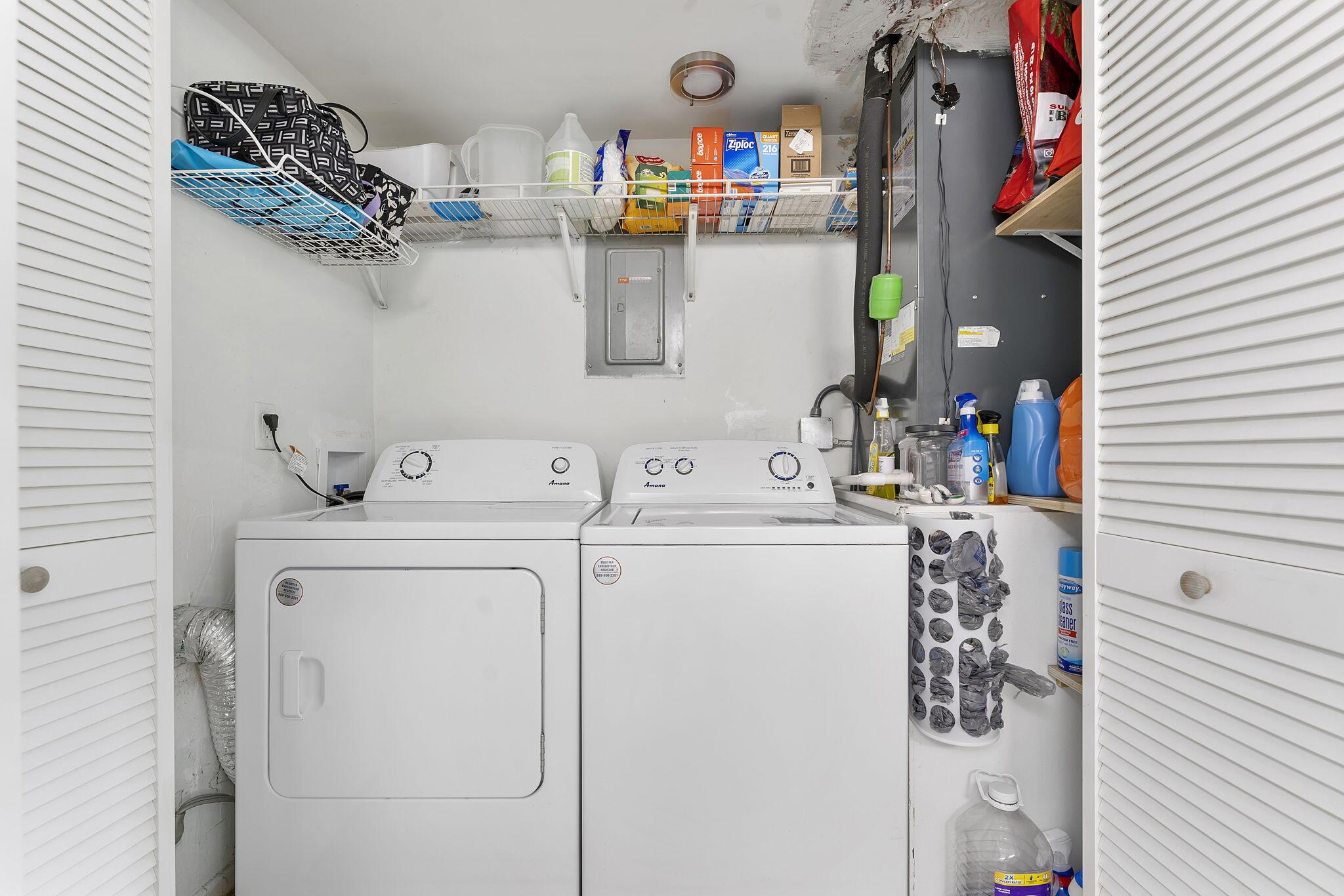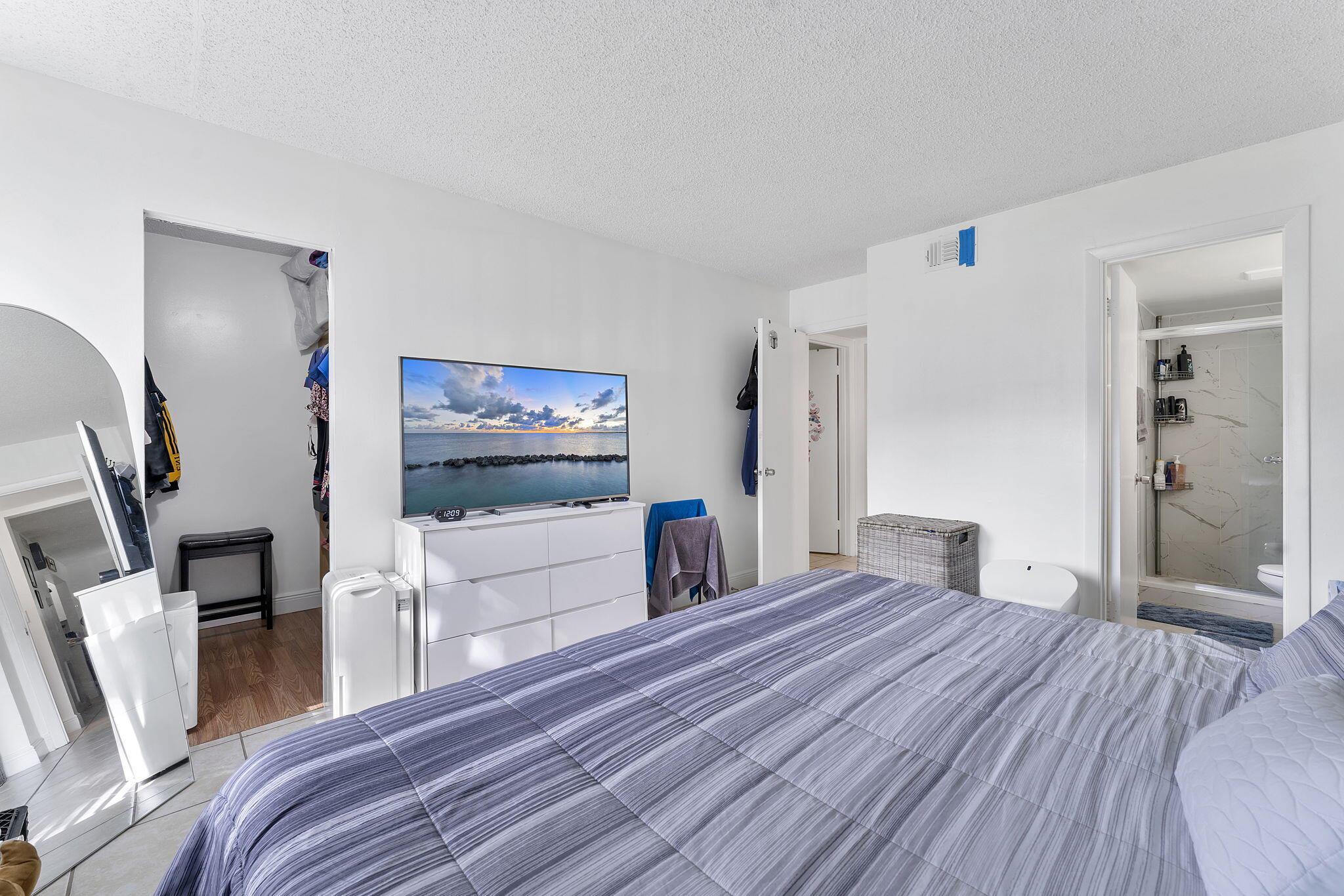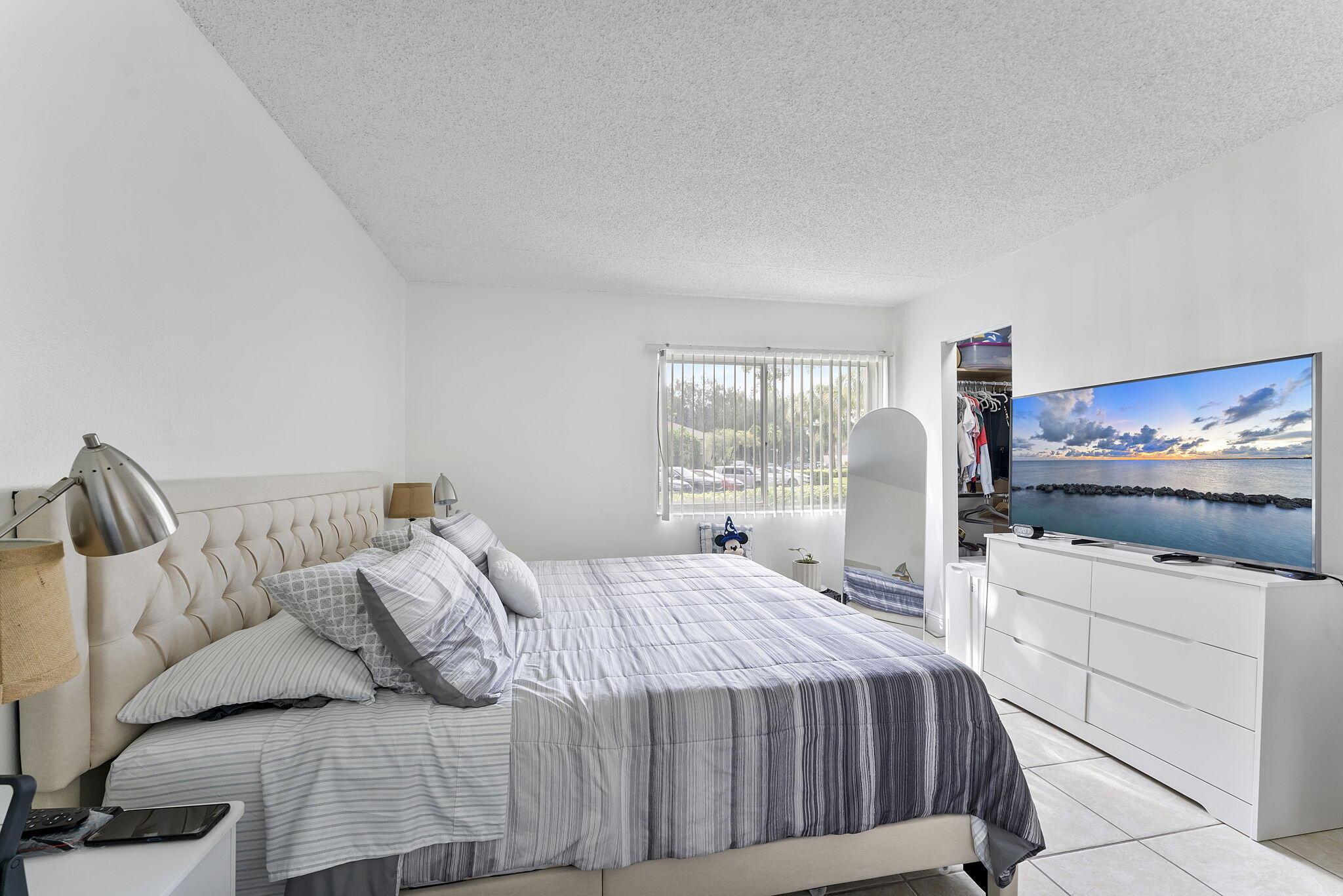 This well-maintained 2-bedroom, 2-bathroom condo in West Palm Beach offers comfortable living in a desirable location. The unit features an open floor plan with tile flooring throughout and a functional kitchen with white cabinetry, solid surface countertops, and a breakfast bar that's perfect for casual dining. The living area provides good space for entertaining and relaxing, with plenty of natural light from the windows. Both bedrooms are nicely sized with adequate closet space, and the master bedroom includes an en-suite bathroom.