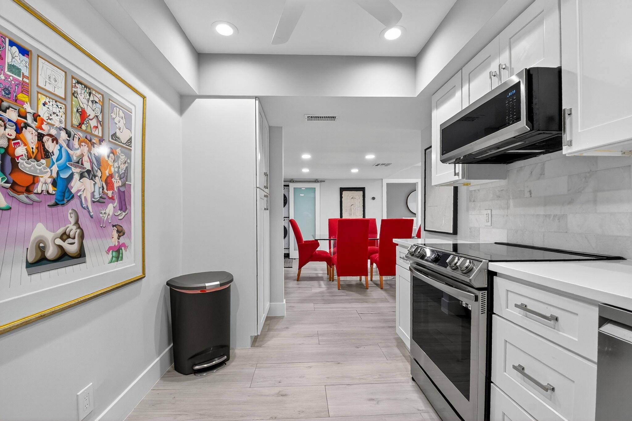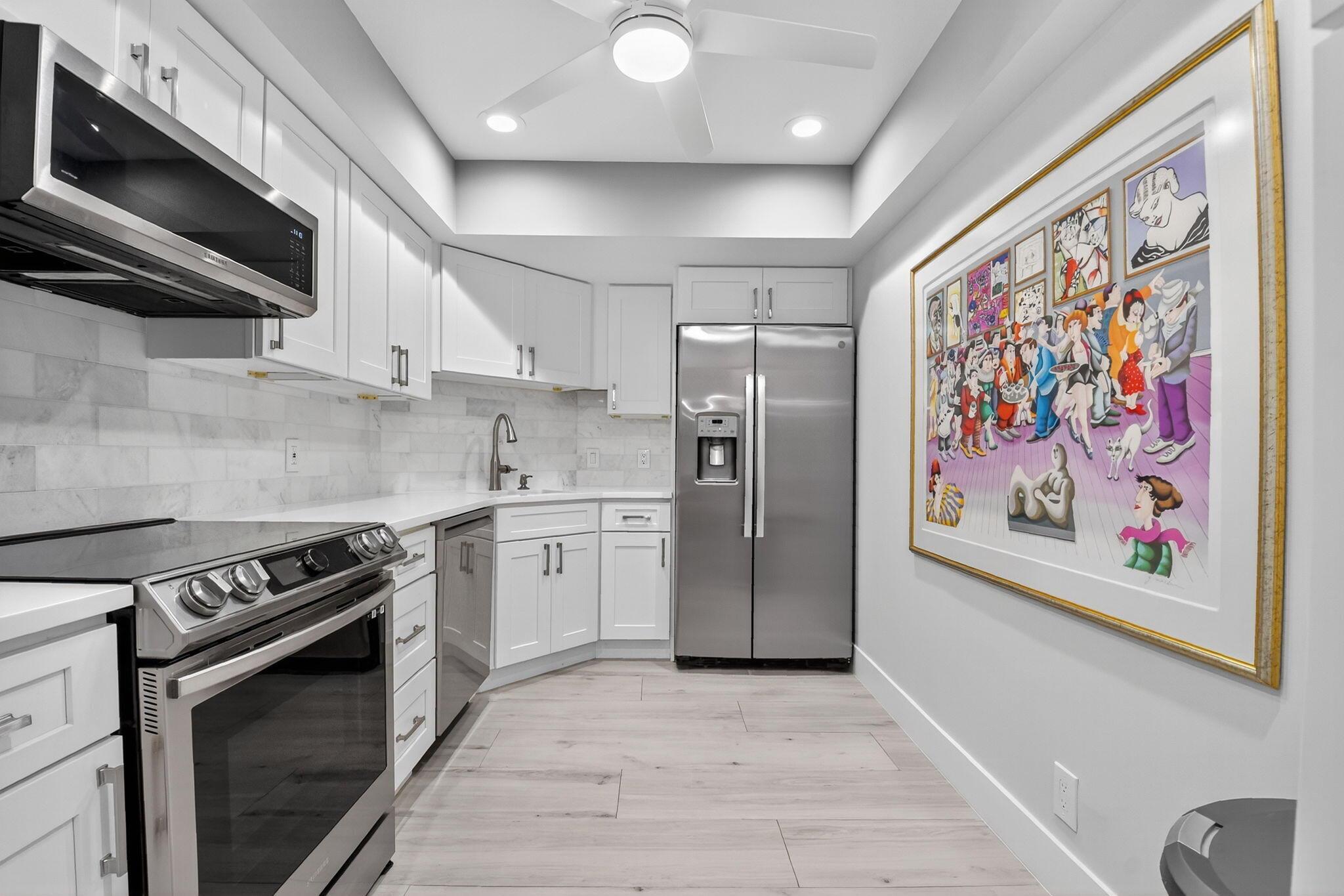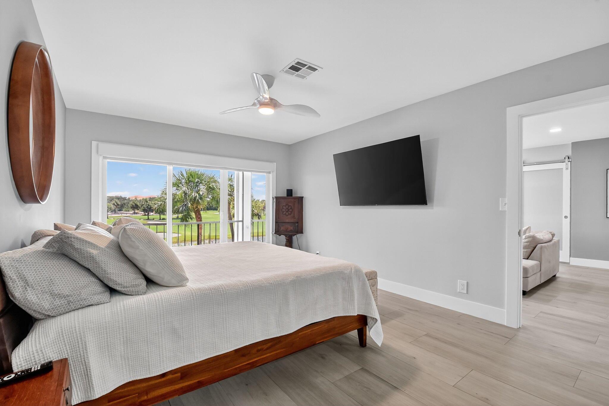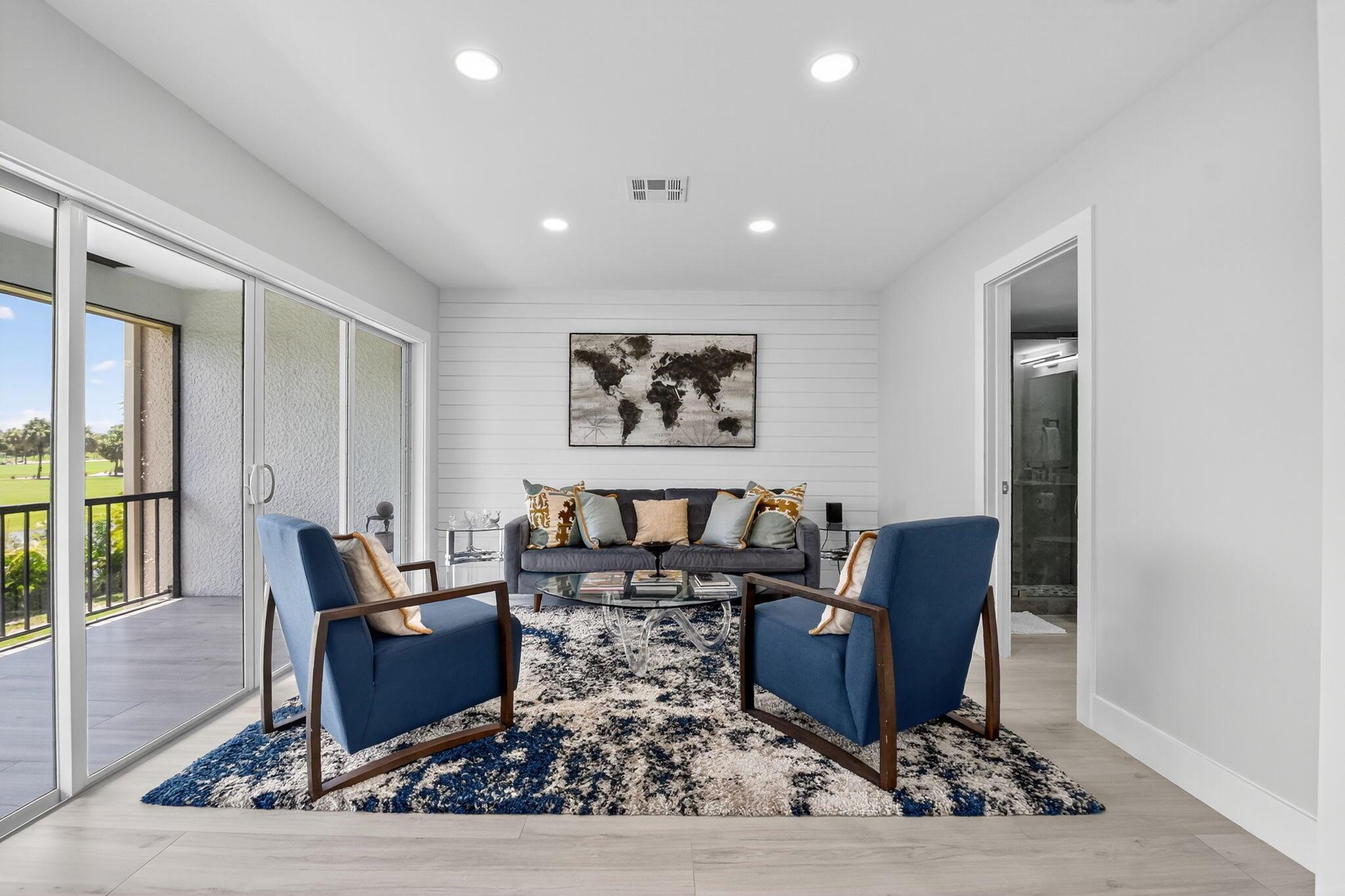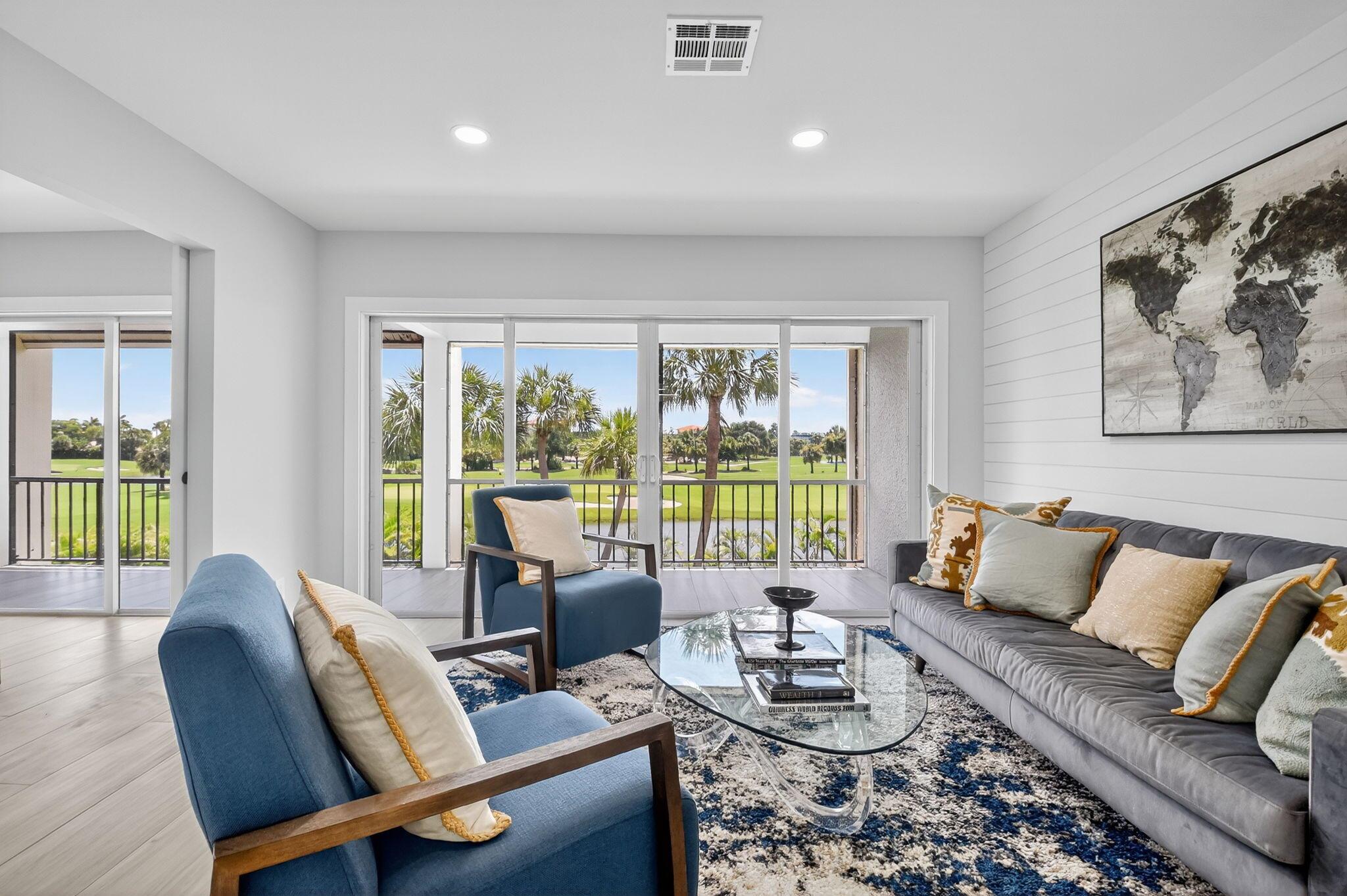 Beautifully Updated Move in Ready 2BR/2BA Condo with Golf Course and Lake Views - Spacious and fully updated condo located in the desirable Lands of the President community. Enjoy expansive views of Hole 12 of the golf course and serene lake vistas from the screened-in, oversized lanai. The interior of your home features large ceramic tile flooring throughout, modern lighting and fans, and a reimagined white shaker cabinet chef's kitchen with new stainless steel smart appliances. The primary suite includes golf and lake views, a walk-in closet with custom built-ins, and a fully renovated private bath. Additional highlights include impact-rated windows and doors, in-unit washer and dryer, and a floor-to-ceiling storage area just outside the front door. AC is 2019 and H2O heater is 2017