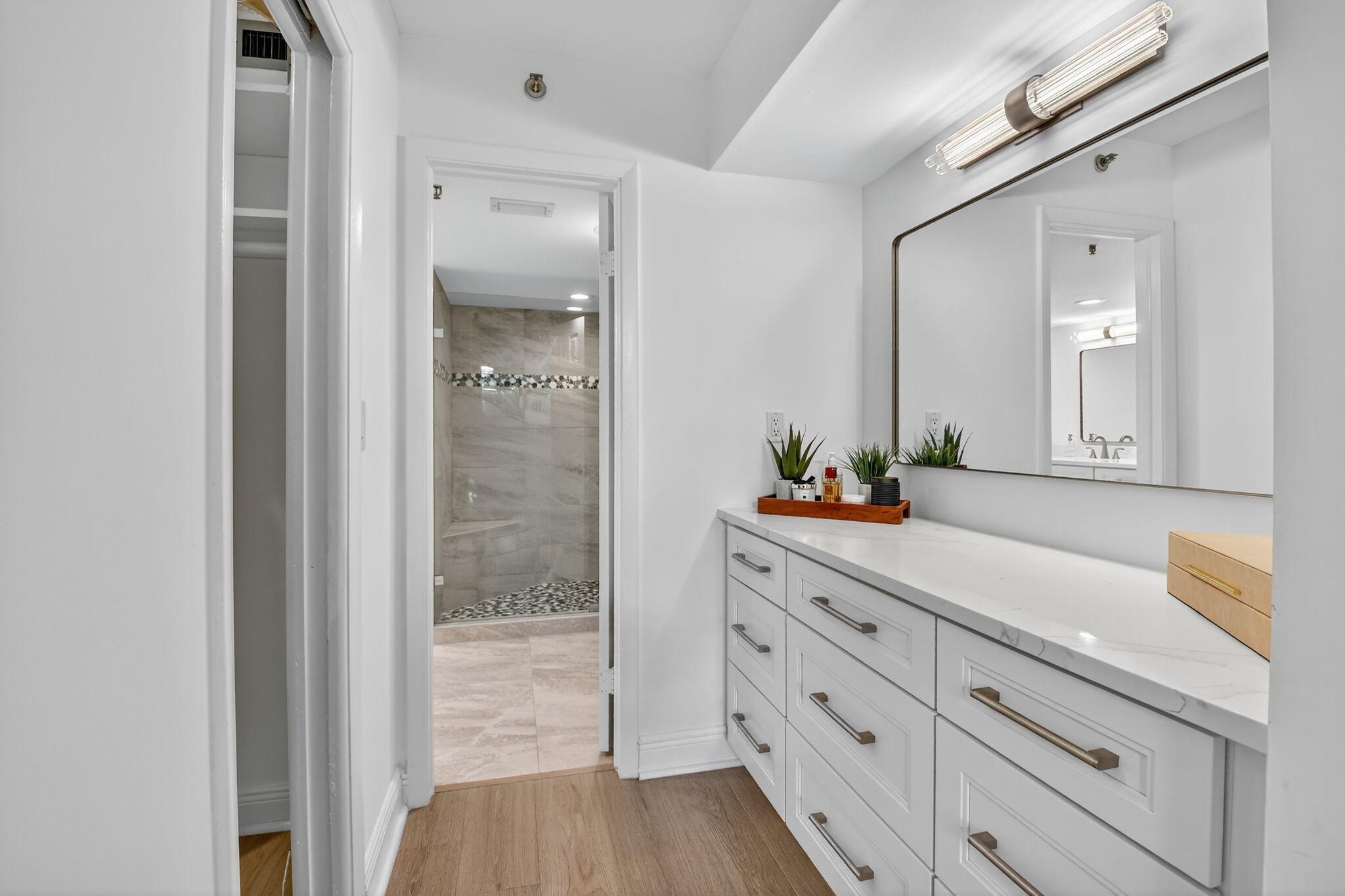 This home shows like a model and is priced to sell. Newly renovated 2 bedroom 2 bath condo on desirable first floor. This unit has recently renovated bathrooms with beautiful quartz countertops and top of the line fixtures. You will find new premium waterproof Karastan flooring in all living areas and bedrooms. The kitchen is equipped with Stainless Steel appliances including a new dishwasher and updated French Door refrigerator. A new water heater was installed in 2025. The interior has been freshly painted and new light fixtures have been installed throughout the home. Promenade is a gated community as well as requiring a security code to enter the entrance to your building. The dining room could easily be converted into a 3rd bedroom.