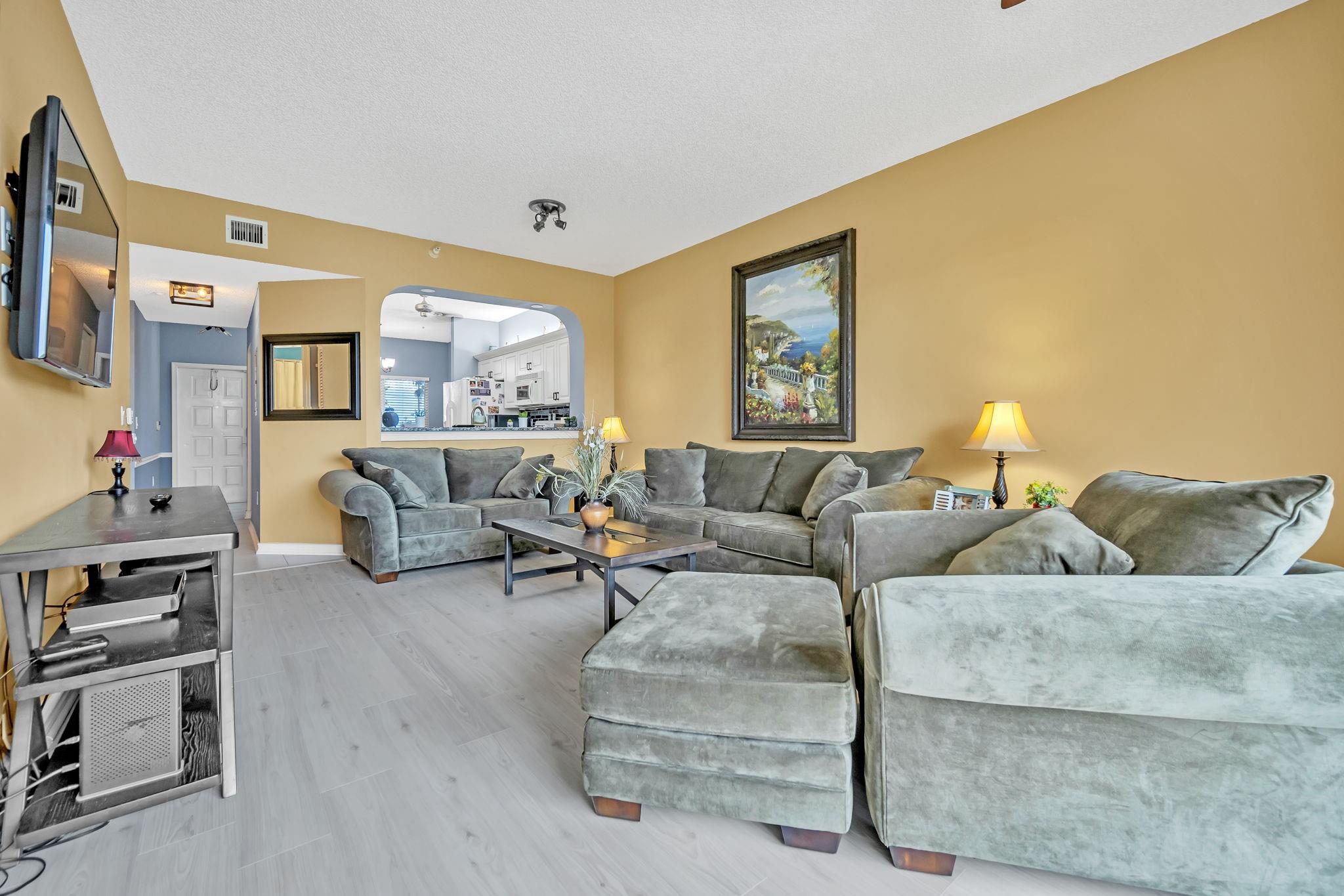 Welcome to this beautifully updated 2-bedroom, 2-bath condo located in the desirable Southampton community of Kings Point, premier 55+ communities. This bright and spacious unit features hurricane-impact windows, stunning new flooring, and a screened-in patio perfect for relaxing year-round. The modern kitchen cabinetry, granite countertops, breakfast bar, and newer appliances. Enjoy the convenience of an in-unit washer and dryer, newer water heater. Resort lifestyle with 24-hour manned gate security, five sparkling pools, a state-of-the-art clubhouse, an on-site theater, pickleball courts, over 60 active clubs, and a full calendar of social events. Plus, benefit from free shuttle transportation. Furniture is negotiable. Motivated seller—don’t miss out on this incredible opportunity!