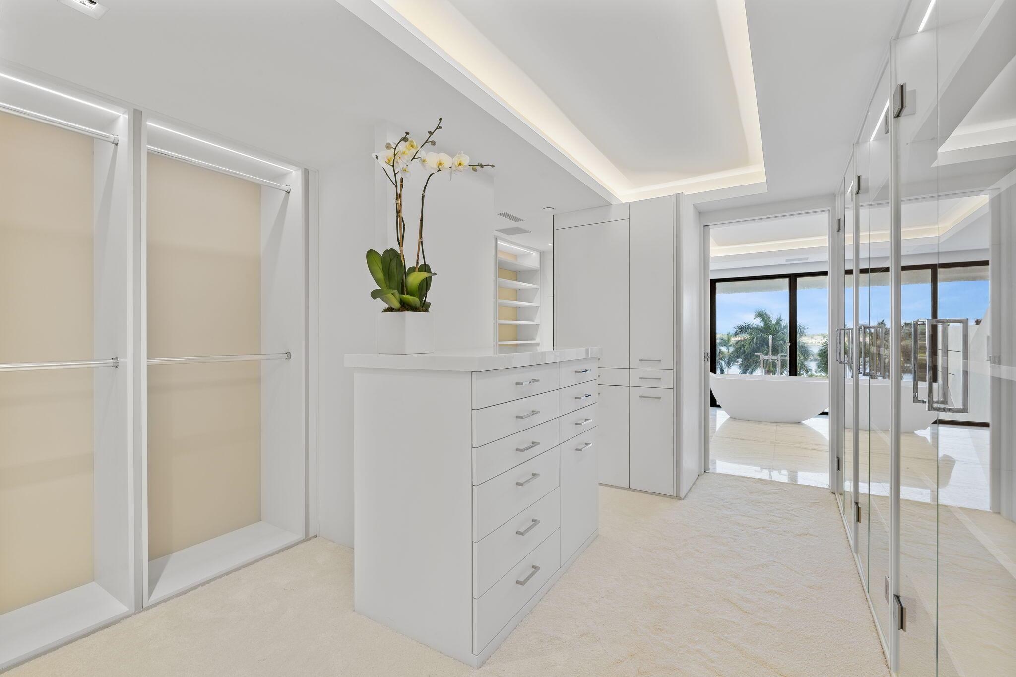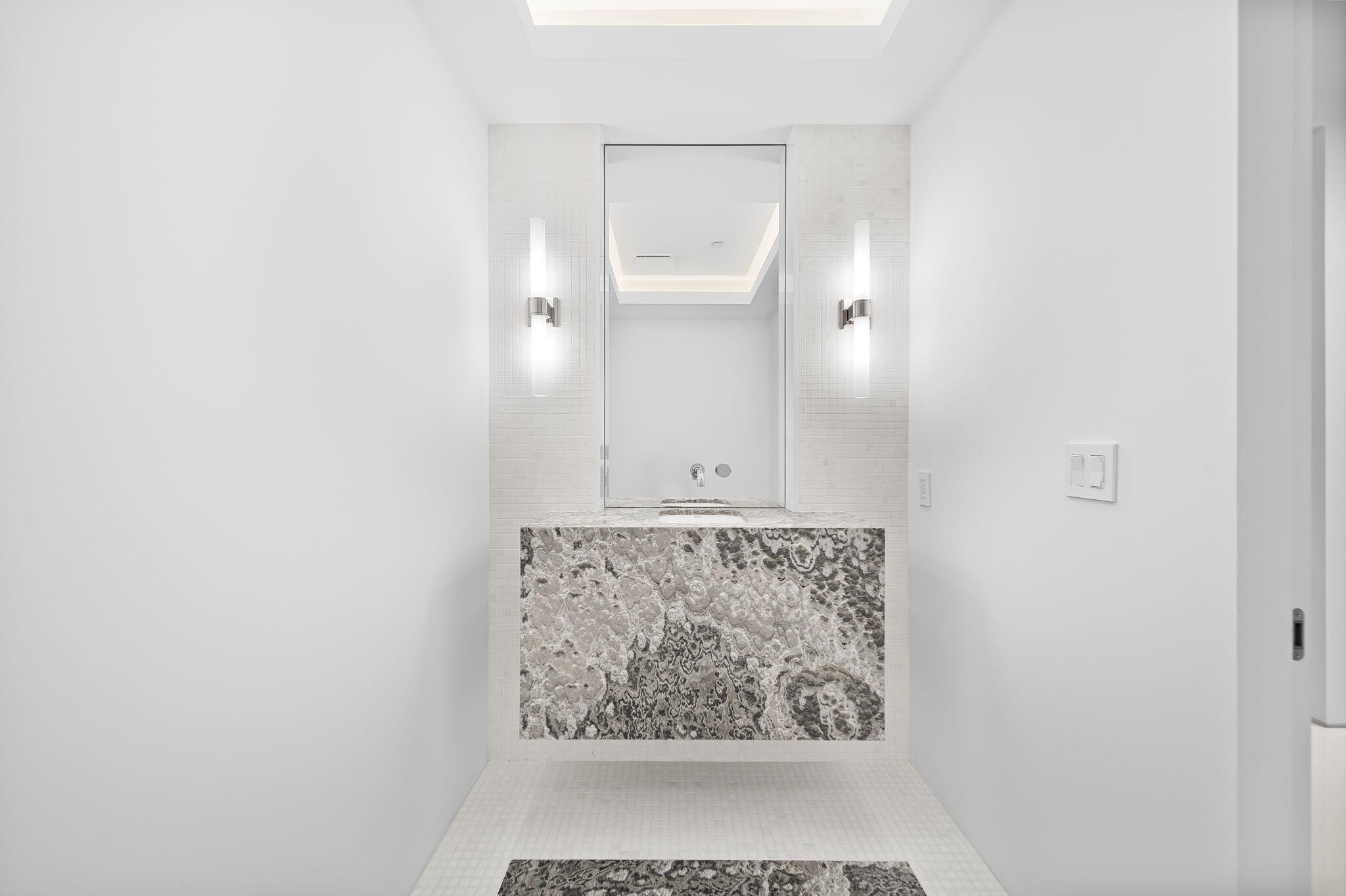 Direct intracoastal views across all 3 levels & impressive 47-foot flow through on the main floor. An art Collectors dream home! 6,400+ interior square foot under air + with an additional 2,000 square feet of terrace and balcony space perfect for entertaining. The unit features a striking 3-story 29' high atrium w/ floating stairs made of leathered black granite slab. Private custom internal 3-story elevator. Modern architecture w/ frameless doors, 64'' Italian porcelain tile (all 3 levels), and custom cove ceilings for an added layer of sophistication. 5-BR, 6-BA, & 3 powder rooms, including the primary suite w/ dual onyx slab baths
