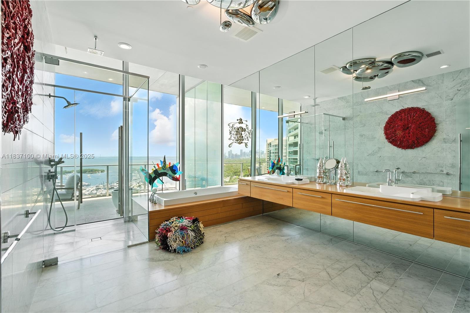 Wake up above the bay, wrapped in 12-foot walls of glass and endless views that steal your breath. Your day begins in a master closet made to rival a designer showroom. Make breakfast at a 30-foot island where light spills across stone and steel. Take meetings in your waterfront office, then relax in wide-open spaces that feel like a true home—not just a condo. Art, air, architecture—every inch of this 4BD residence at Grove at Grand Bay invites you to live boldly, beautifully, and fully. This is not just where you live. This is how you feel.