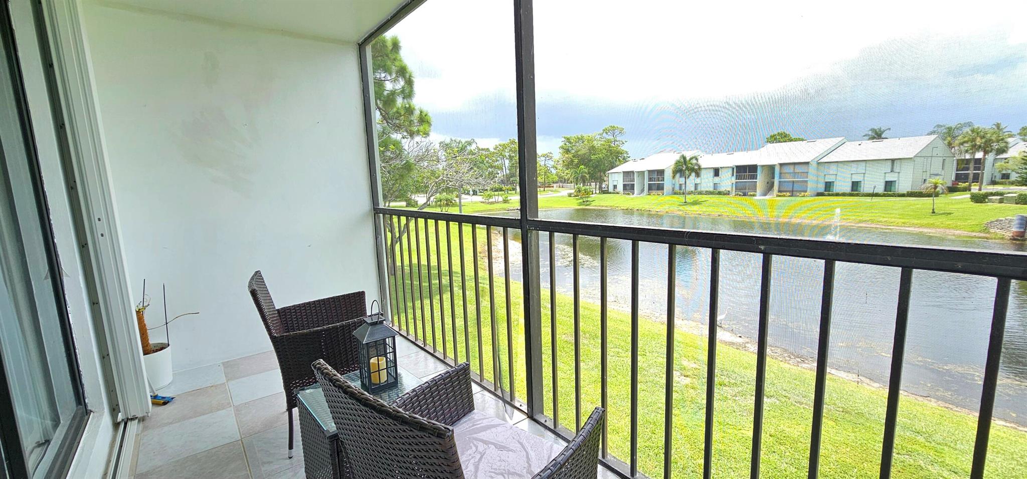 This move-in-ready home offers resort-style living. Your Condominium comes as a fully furnished 2-bedroom, 2-bathroom in beautiful West Palm Beach. This unit offers serene lake views from an oversized screened balcony, providing a relaxing setting overlooking both the water and fountain. Newer appliances include an air fry-convection oven, a Kitchen Pantry, Both Bathrooms have been remodeled, and there is ample storage throughout, including a walk-in closet in the primary bedroom and extra hallway storage. A full-size washer and dryer conveniently located inside the unit.Residents will appreciate additional building amenities such as a designated vehicle wash area, a large pool, and a Jacuzzi. The property is centrally located in West Palm Beach, close to I-95, the Turnpike, beaches,