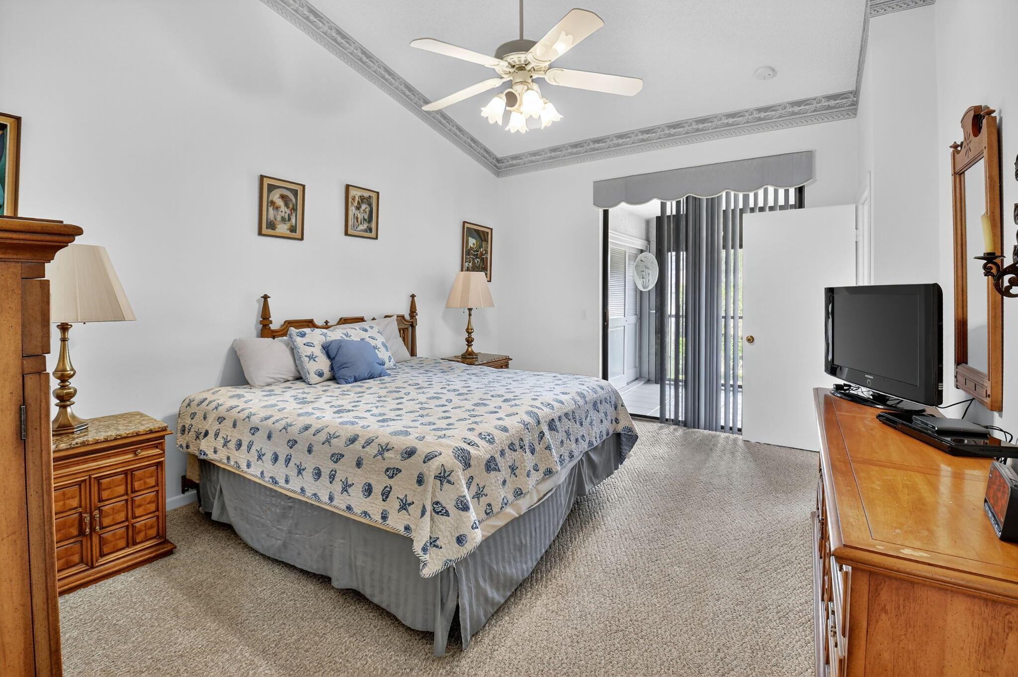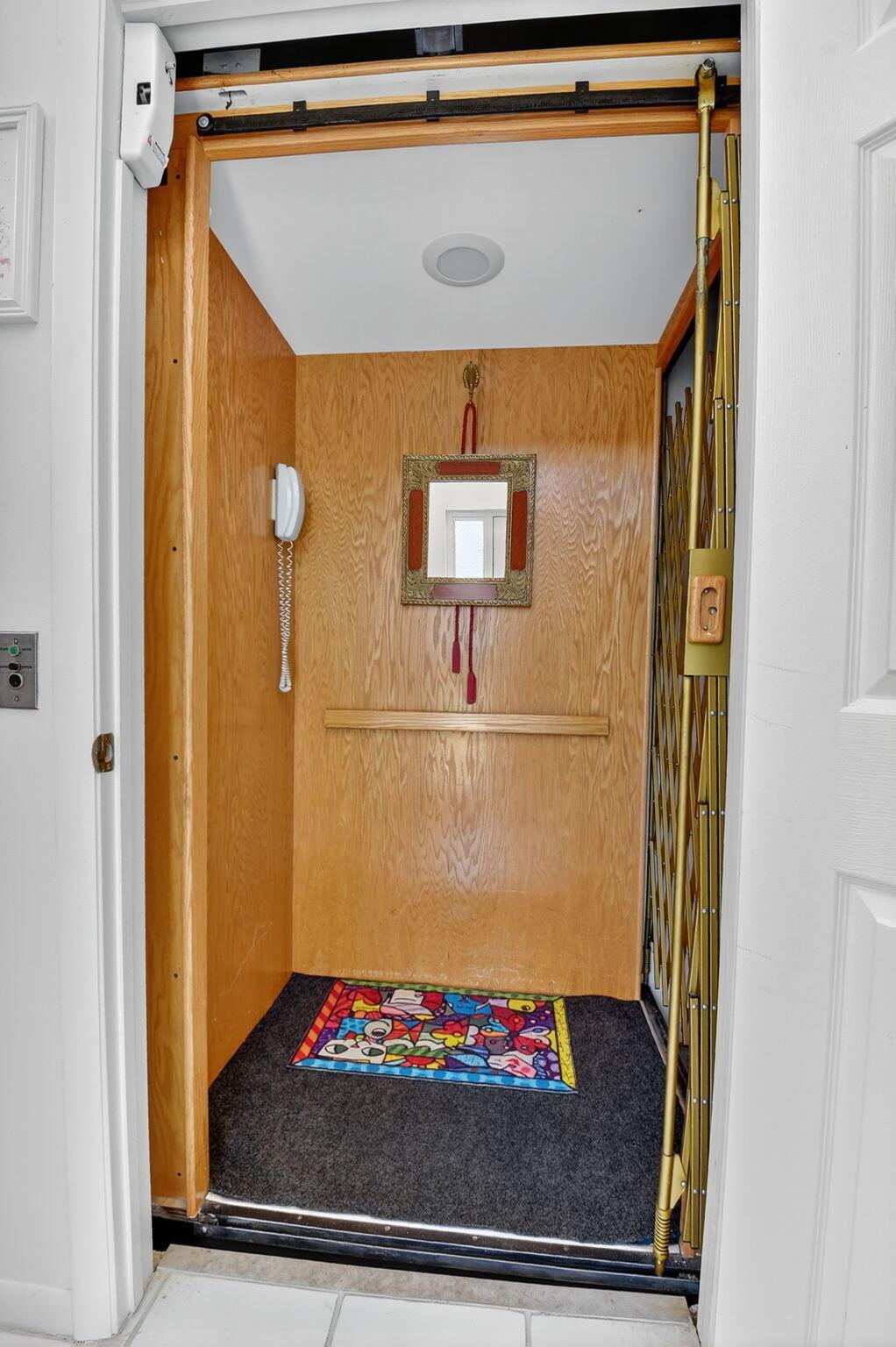 This two bedroom plus den, two full bath condo offers care-free, resort-style living. It is just a short walk from the vibrant 20,000 square foot clubhouse and an array of exceptional amenities. Access your upstairs living space using your private staircase or exclusive elevator--perfect for accessibility and ease of entry. The open, split floor plan ensures privacy and flow, with soaring ceilings creating an airy, inviting ambiance throughout. The spacious eat-in kitchen has abundant storage and a generous pantry for all your essentials. The master suite features a custom-fitted walk-in closet and a large bathroom complete with dual sinks, a vanity, and both a handicap accessible shower and a regular walk-in shower--designed to cater to every need.