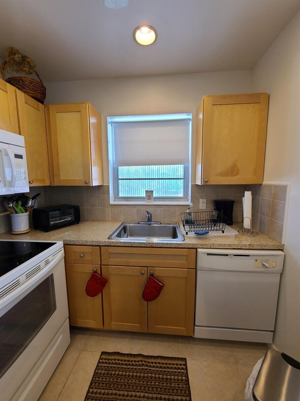 Charming 1 bed, 1.1 bath renovated unit in the desirable 55+ Century Village! Located in a well-maintained building with a new 2024 roof and full concrete restoration completed in Feb 2024. This lovely unit features ceramic tile throughout, updated bathrooms, an open kitchen with granite countertops and newer appliances, and a newer central A/C. Sold furnished for your convenience. This is a non-rentable building--ideal for owner occupants. Enjoy resort-style amenities including a clubhouse, indoor & outdoor pools, fitness center, theater, billiards, library, tennis, 24/7 security, shuttle service, and more. Just minutes to beaches, shopping, dining, hospitals, and Palm Beach International Airport. Perfect for year-round living or a warm winter retreat!