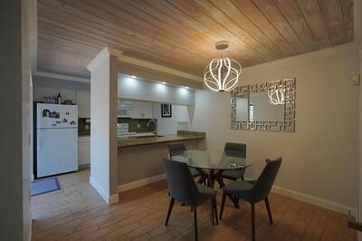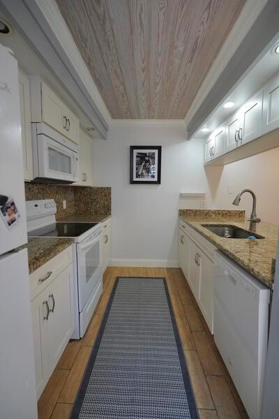 Beautiful 2-bedroom, 2.5 bath remodeled townhome in desirable Sunset Trace! The upgrades have all been done for you, including a new kitchen, new baths, new laminate flooring, new paint, tongue and groove ceilings, and accordion shutters! Both bedrooms are upstairs and spacious and can be considered master bedrooms. Enjoy relaxing or entertaining on your beautiful brick-paved private patio, offering lots of privacy and lovely views of Florida nature! Low homeowners' association fee includes homeowners' building insurance, 24-hour guard-guided entry, two swimming pools, tennis and pickle ball, basketball and lots of sidewalks ideal for walking, jogging, and dog walks. Ideal location, close to shopping, dining, A-plus-rated schools, I-95, and the Florida Turnpike.