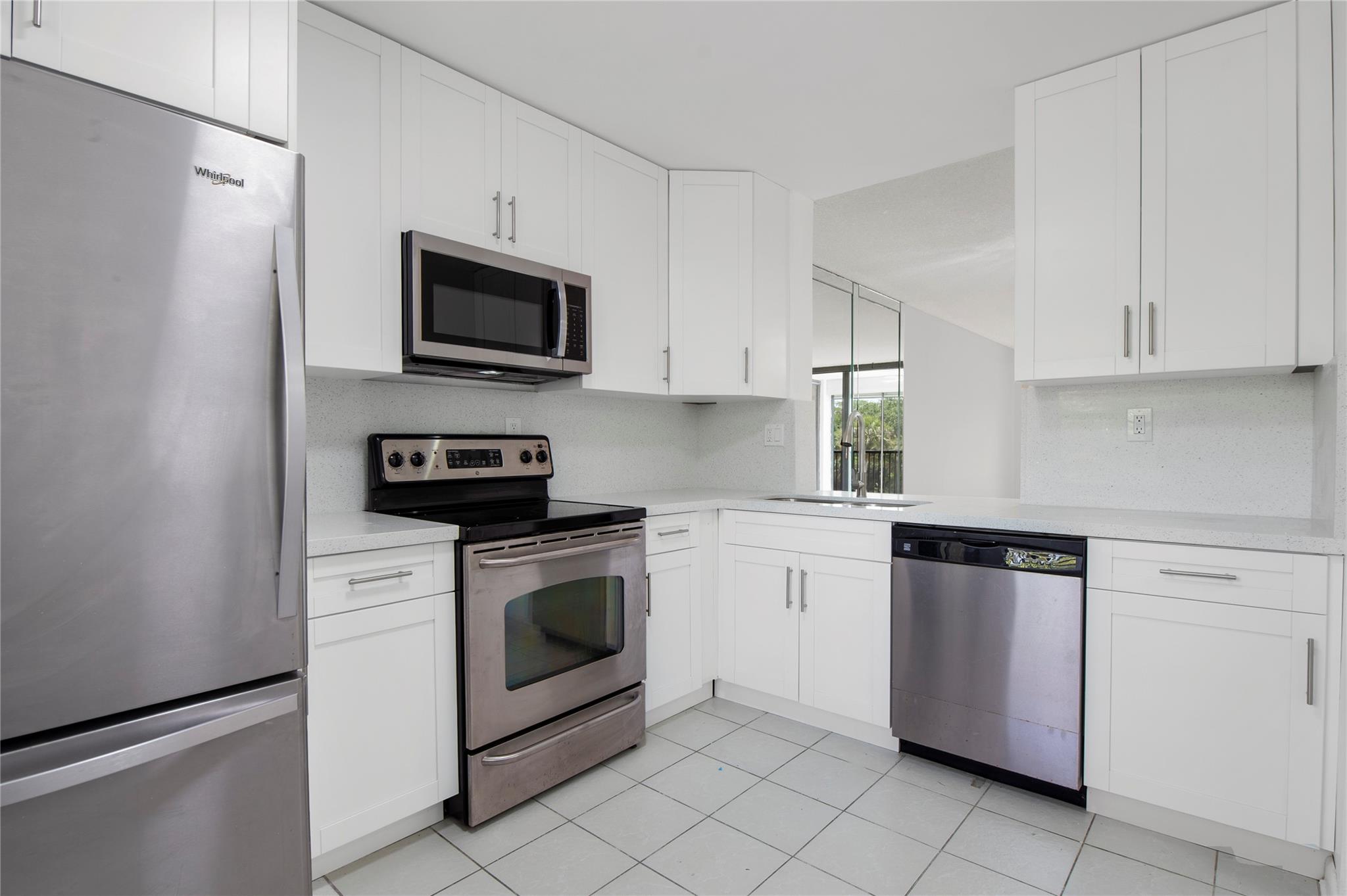 Enjoy serene lake views from this spacious and updated 2-bedroom, 2-bathroom condo located in a secure and well-maintained building. The unit features a desirable split-bedroom floor plan, providing privacy and comfort. The kitchen has been upgraded with modern white shaker cabinets, sleek quartz countertops, and stainless steel appliances. Both bathrooms have been tastefully renovated with contemporary white vanities. Tile and laminate flooring throughout—no carpet! In-unit washer and dryer for added convenience. Storage is located next to the elevator. HOA includes: basic cable, water, sewer, trash removal, elevator, and landscaping. Community amenities: pool, tennis courts, and a clubhouse. This unit is move-in ready and can be rented immediately. HOA requires 650 credit score.