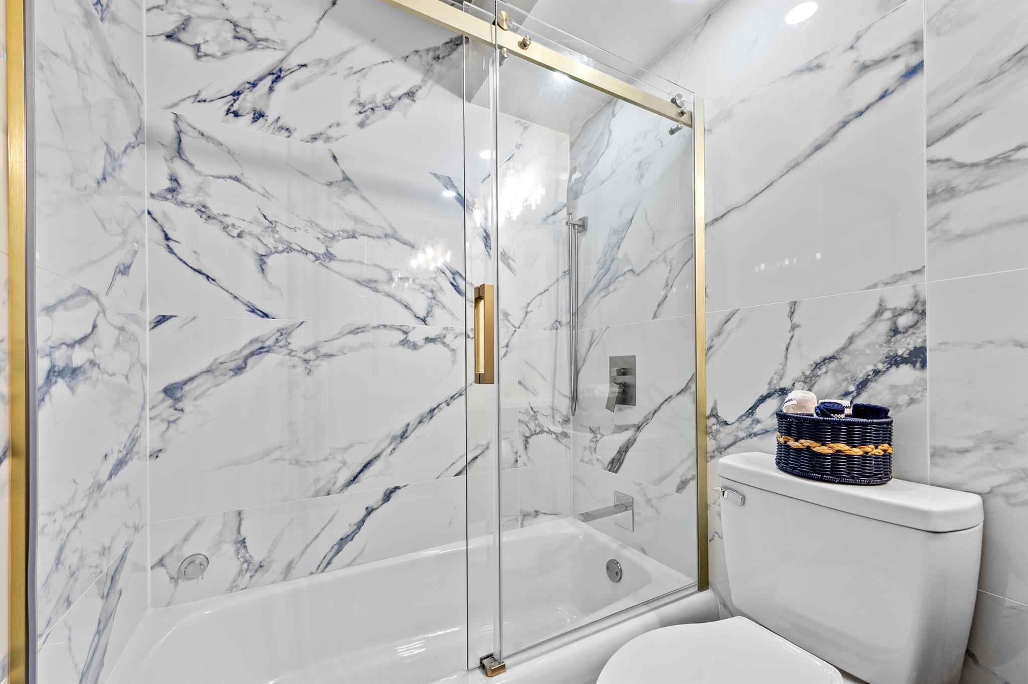 Amazing location just steps from the beach! Gorgeous unit, fully remodeled with porcelain floors throughout. Beautiful Calacatta porcelain bathrooms -- spacious shower in the master and bathtub with glass doors in the second bath. Stunning all-white kitchen with quartz countertops, white cabinetry, and stainless steel appliances. Impact Windows and Sliding Glass doors. Huge walk-in closet in the master bedroom. Great area for biking, running, or walking -- with beach paths and the intracoastal nearby. Building offers gym, recreation room, sauna, grills, and a heated pool. Close to shops, dining, and beach access.