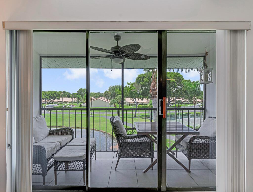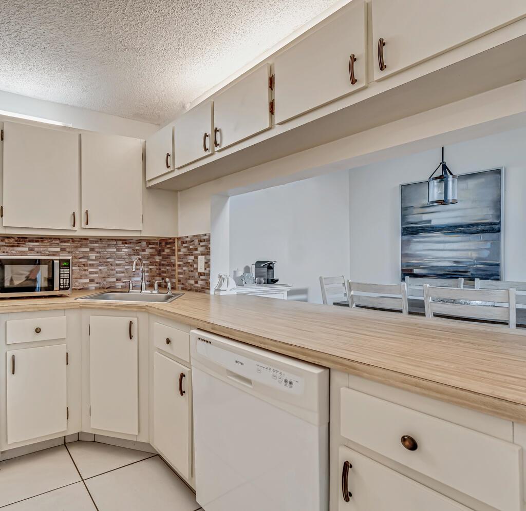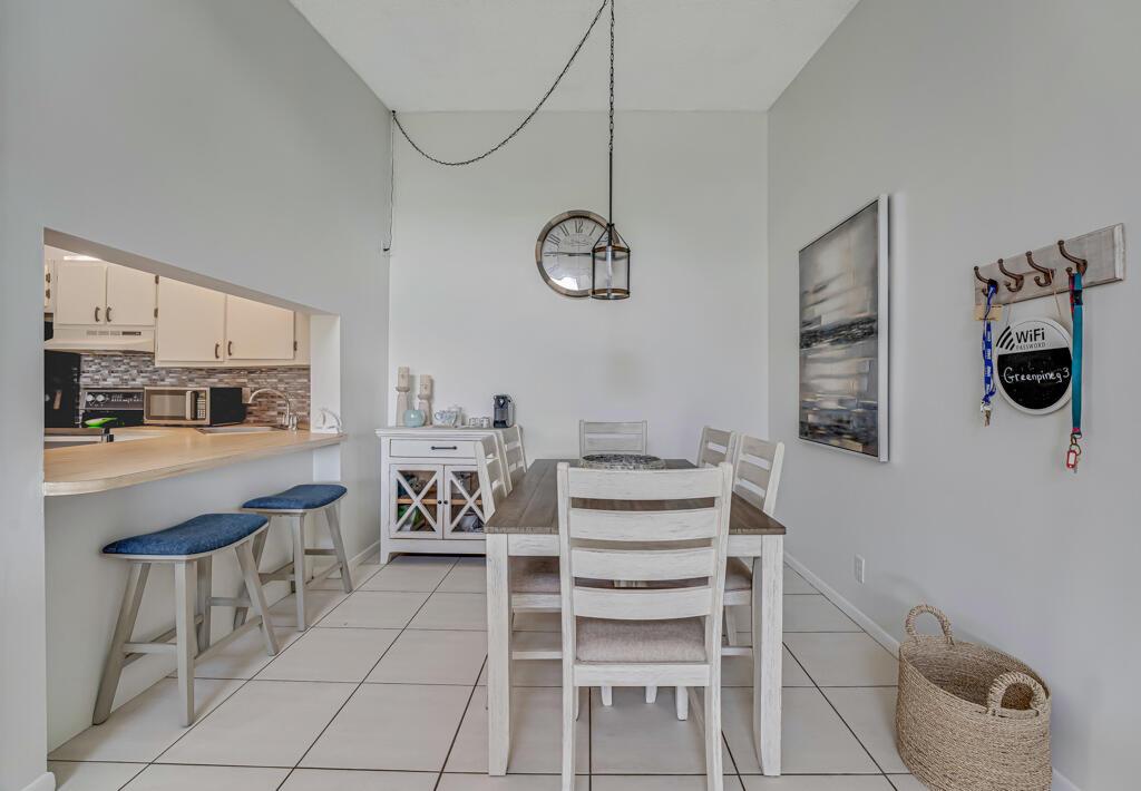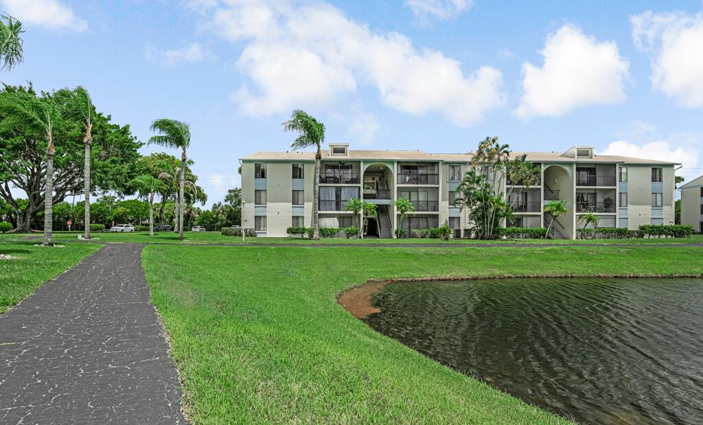 BRAND NEW AC JUST INSTALLED 07/2025! Spacious condo with vaulted ceiling in the living room with an additional window to allow for ambient natural light. This is a rare find. Being on the top floor of this 3 story building gives you more privacy and no noisy neighbors above. 2 bedrooms, 2 full baths and a spacious living, dining and kitchen area. Bathrooms have been tastefully redone and the floors in the bedrooms and baths is a very nice wood look/coastal tile. Condo has been freshly painted. No carpet! Nice water view from your patio to enjoy morning coffee or evening glass of wine while enjoy the sunsets. Or, morning wine and evening coffee!!This condo building is right next to the pool and clubhouse! Just a short walk.