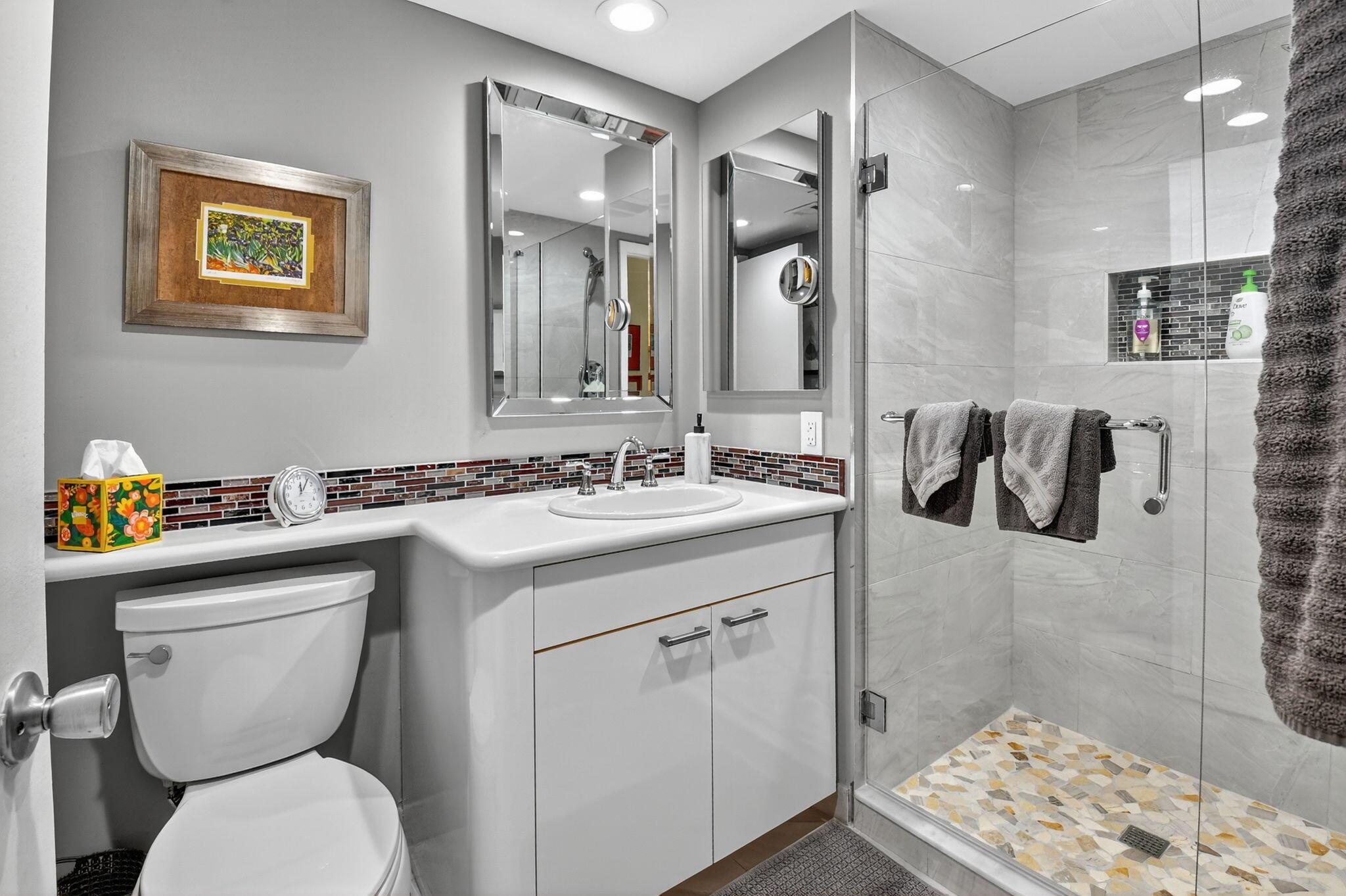 This is IT !! A beautifully maintained condo located in the highly sought-after Hunters Run Country Club. This spacious second-floor unit offers 2 bedrooms, 2 bathrooms, and an open-concept layout filled with natural light. The updated kitchen features large pass though ,stunning backsplash, granite countertops, stainless steel appliances, and ample cabinetry--perfect for cooking and entertaining. Primary En Suite boasts a new shower with River Rock Floor & Frameless shower door. Enjoy serene golf course and lake views from the screened-in lanai. BRAND NEW A/C.. AND YES.... YOU CAN OWN YOUR OWN GOLF CART ;-)