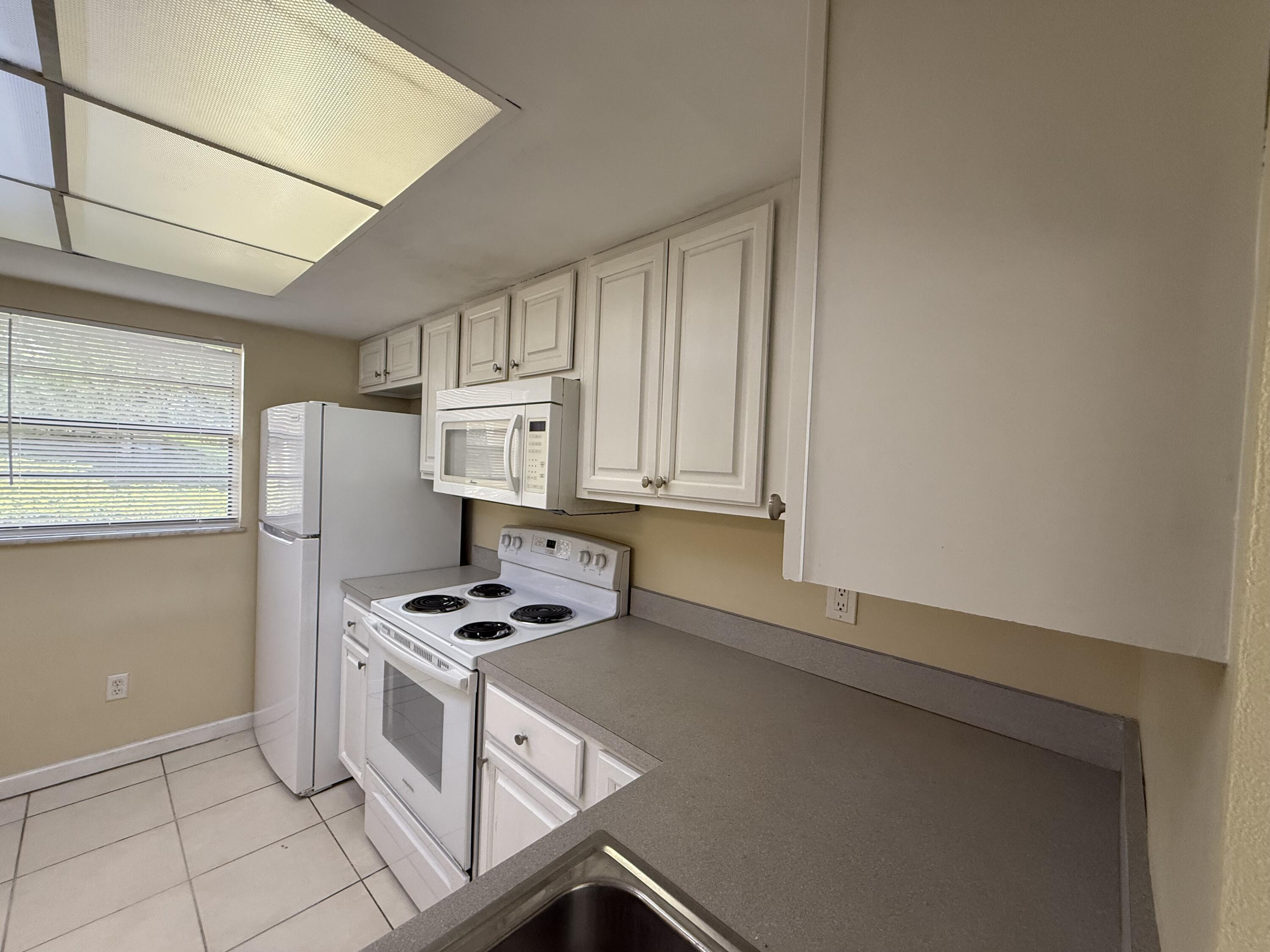 2 bedroom condo with a lake view on the ground floor, walk around the many lakes or to the community pool. Enjoy the breeze in the afternoon in the screened patio with a view of the lake. The building has laundry on each floor. All gated community with plenty of trees and walkways around. Tiled and carpet in the bedrooms. There is a new refrigerator in the unit and ceiling fans in all rooms.