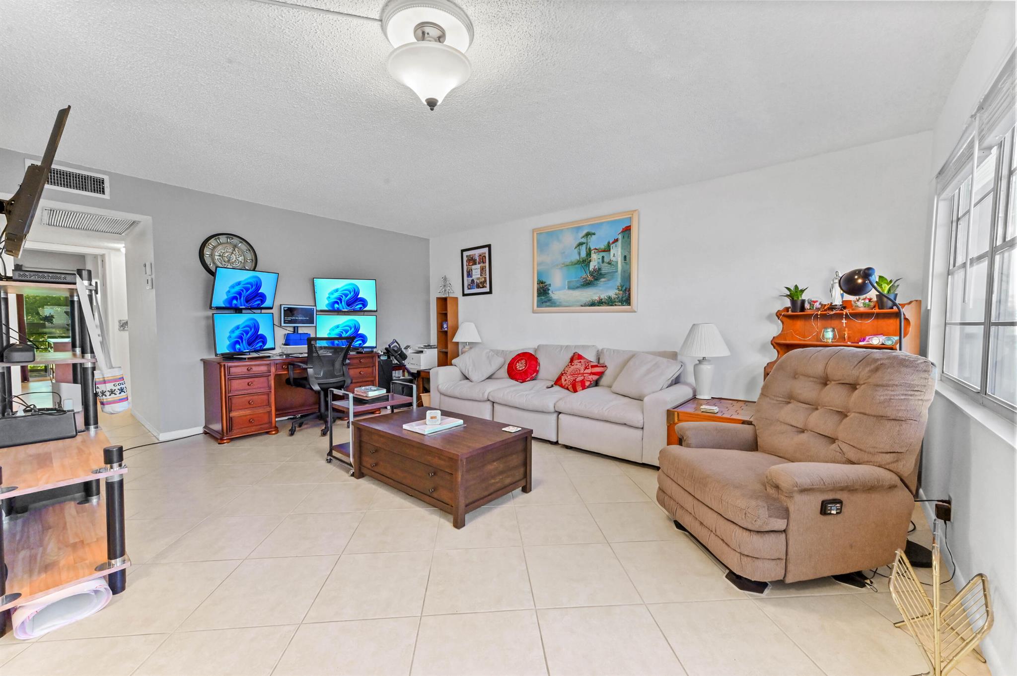 Beautiful 4th-Floor 2 Bedroom, 2 Bath Condo in Prime Location!Nestled in the heart of the Century Village East, this spacious condo offers peace and quiet, set away from road noise and just a short walk to the pool and clubhouse. The unit features large diagonal-set ceramic tile throughout, creating a bright and open feel from front to back.Offered fully furnished and move-in ready, the home includes a guest bathroom with a walk-in shower and glass doors. Step onto the enclosed patio with sliding glass windows and enjoy your morning coffee while taking in the tranquil garden views. A convenient community picnic area is located just outside, perfect for relaxing or entertaining guests.