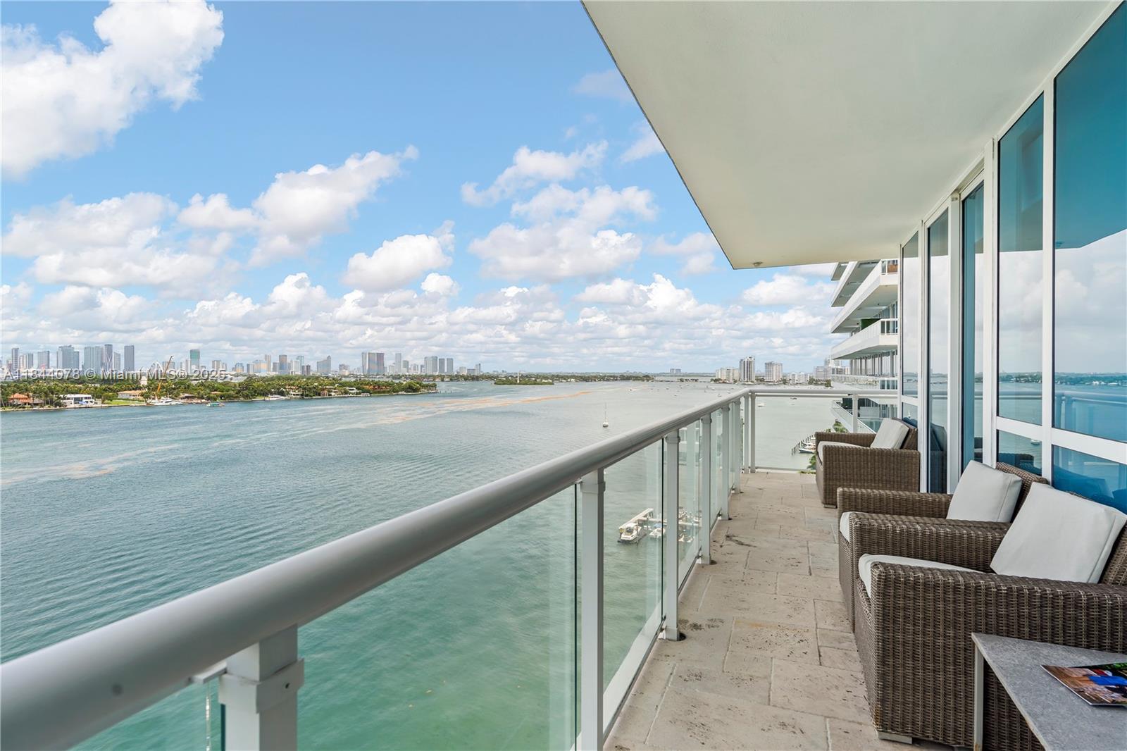 Spectacular waterfront and corner flow-through unit 2B/2B with 1,210 SF + wraparound balcony offering breathtaking bay, ocean, and city views. Enjoy sunrise & sunset from every room! Fully remodeled with marble & wood floors, Sub-Zero & Gaggenau appliances , Dekton countertops, wine cooler, electric shades. Floor-to-ceiling windows flood the space with light. Primary bath with jacuzzi. Valet parking included. Impeccably maintained by owner, ideal as a primary residence, investment or second home. Resort-style amenities: 2 jacuzzis, pool, cabanas, sauna, steam room & cold plunge. Walk to the beach, Lincoln Rd, top restaurants & nightlife. Exclusive neighbors : Star Island in front, Five Park behind. Live the best of Miami lifestyle!