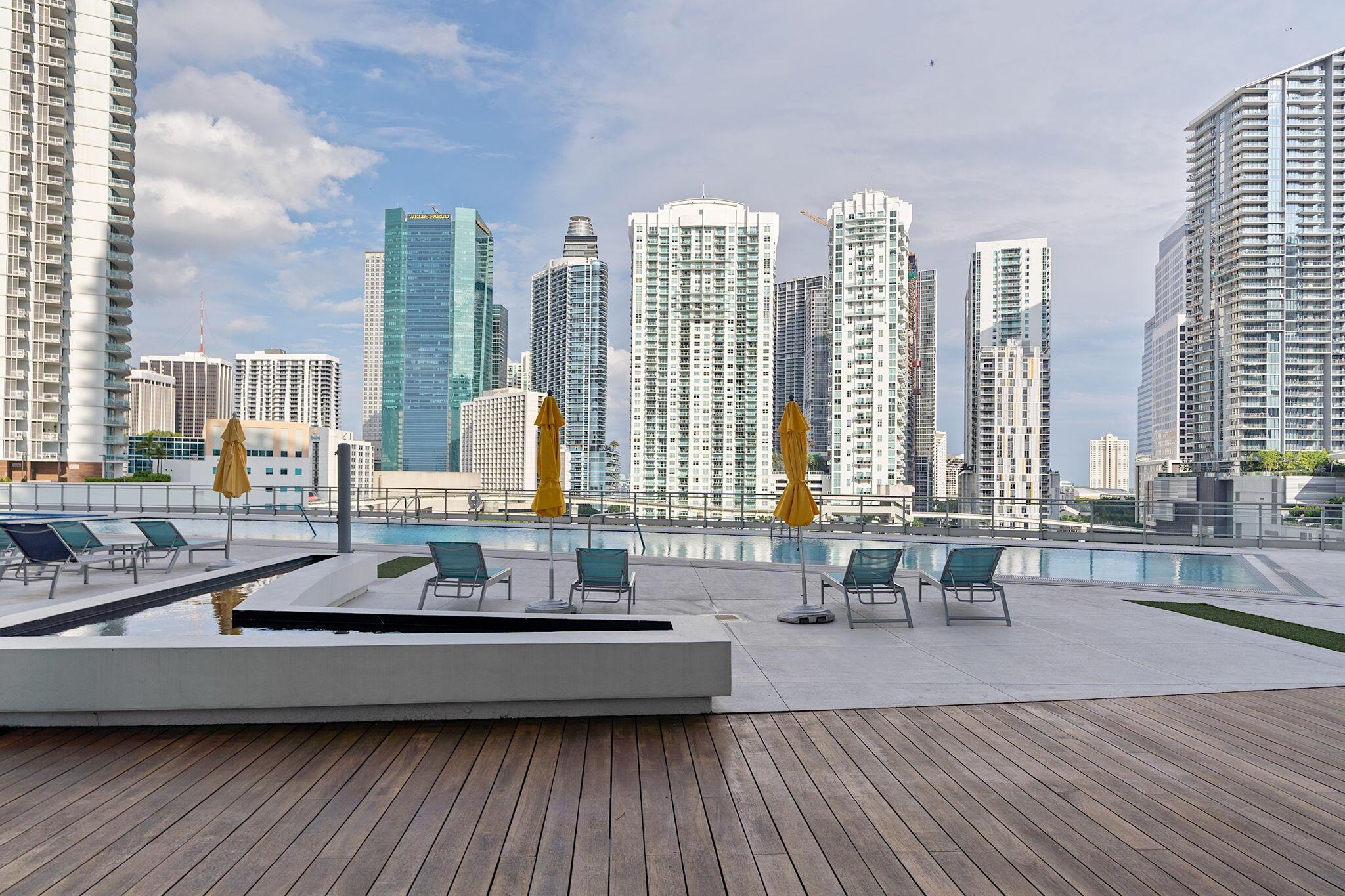 Completely renovated 2BD corner unit with stunning views overlooking Brickell and the Miami River. From wooden accent walls to chic light fixtures, the unit exudes modern luxury. The beautiful kitchen combines high-gloss cabinetry with both wooden and black countertops to create a sleek look. Located on the 31st floor, enjoy the breeze at sunrise with eastern-facing balcony views. The windows span west, north, and east, offering panoramic city views. In the primary bedroom, an abundance of natural light floods through sliding doors that open to a private balcony. The light extends into the gorgeous primary bathroom, where a frosted glass shower wall looks onto the room. The second bedroom also features an ensuite bathroom.The unit is in a modern, renovated building called The Mint