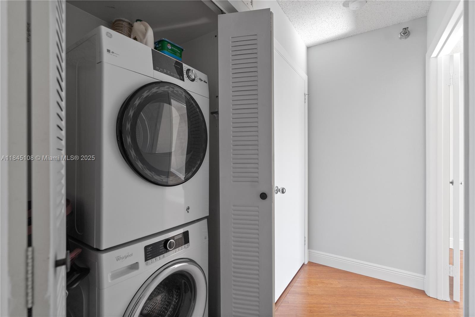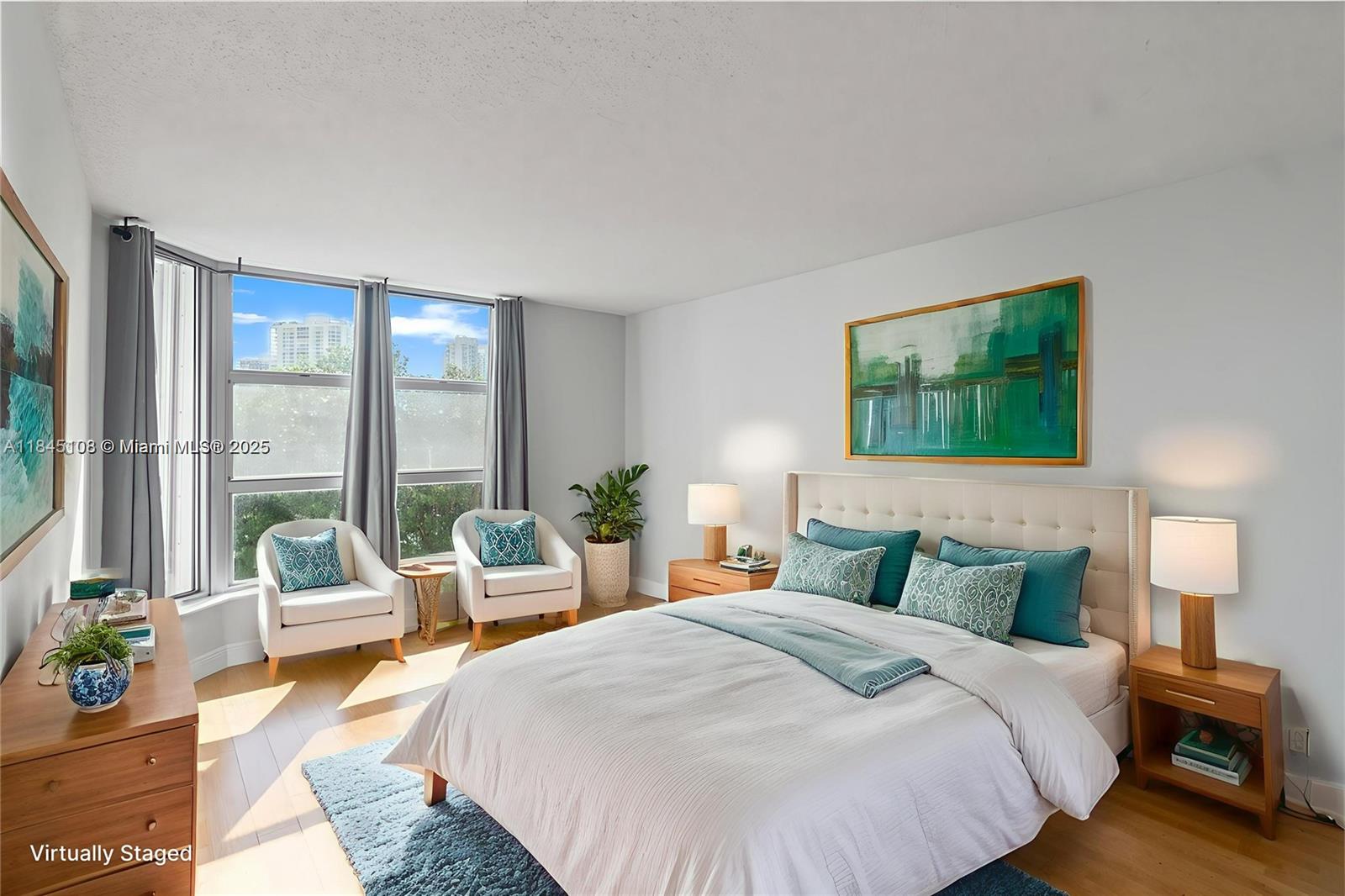 Beautifully renovated 2-bedroom, 2-bath condo with peaceful and private views in Aventura. This spacious condo features an open-concept kitchen with stainless steel appliances—ideal for both daily living and entertaining. Contemporary flooring throughout. The primary suite includes a walk-in closet and an updated bathroom with dual vanities and a bathtub. The second bedroom offers space for two beds or a queen and has direct access to the private balcony. The Hurricane shutters provide peace of mind. In-unit washer/dryer and same-floor assigned parking—no need for elevators after shopping or errands. Resort-style amenities include a fitness center, tennis, pickleball, pool, barbecue area. Ideally located near houses of worship, Aventura Mall, schools, the beach, and intl airports.