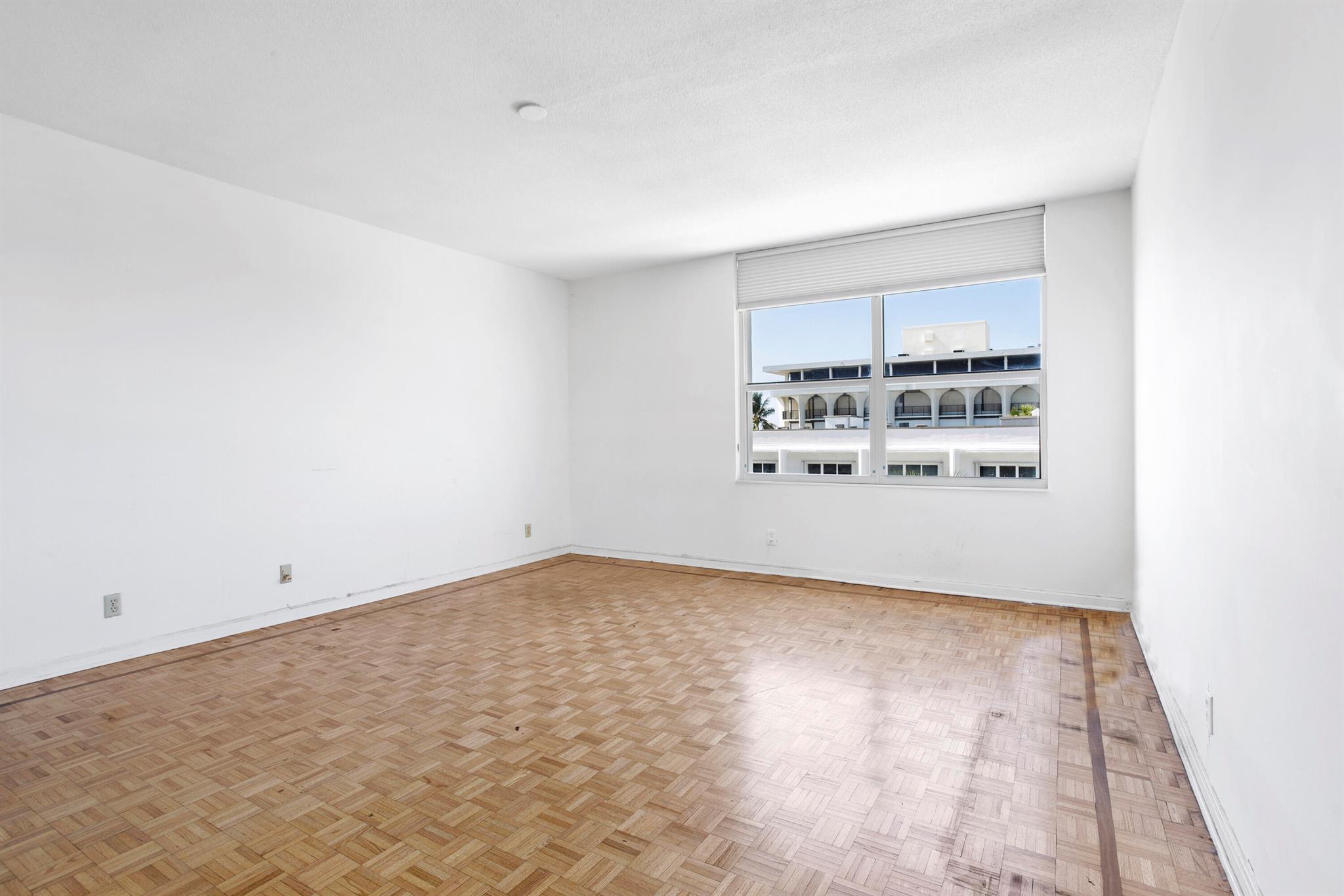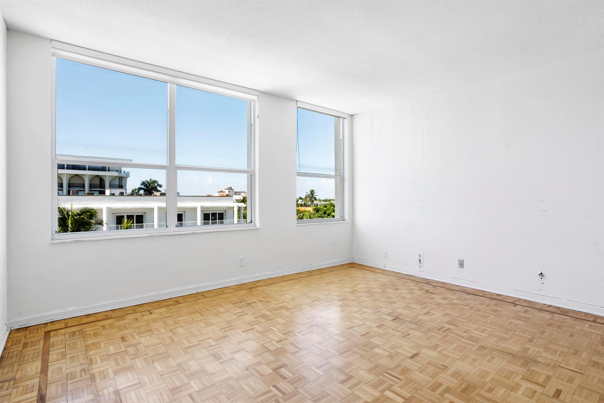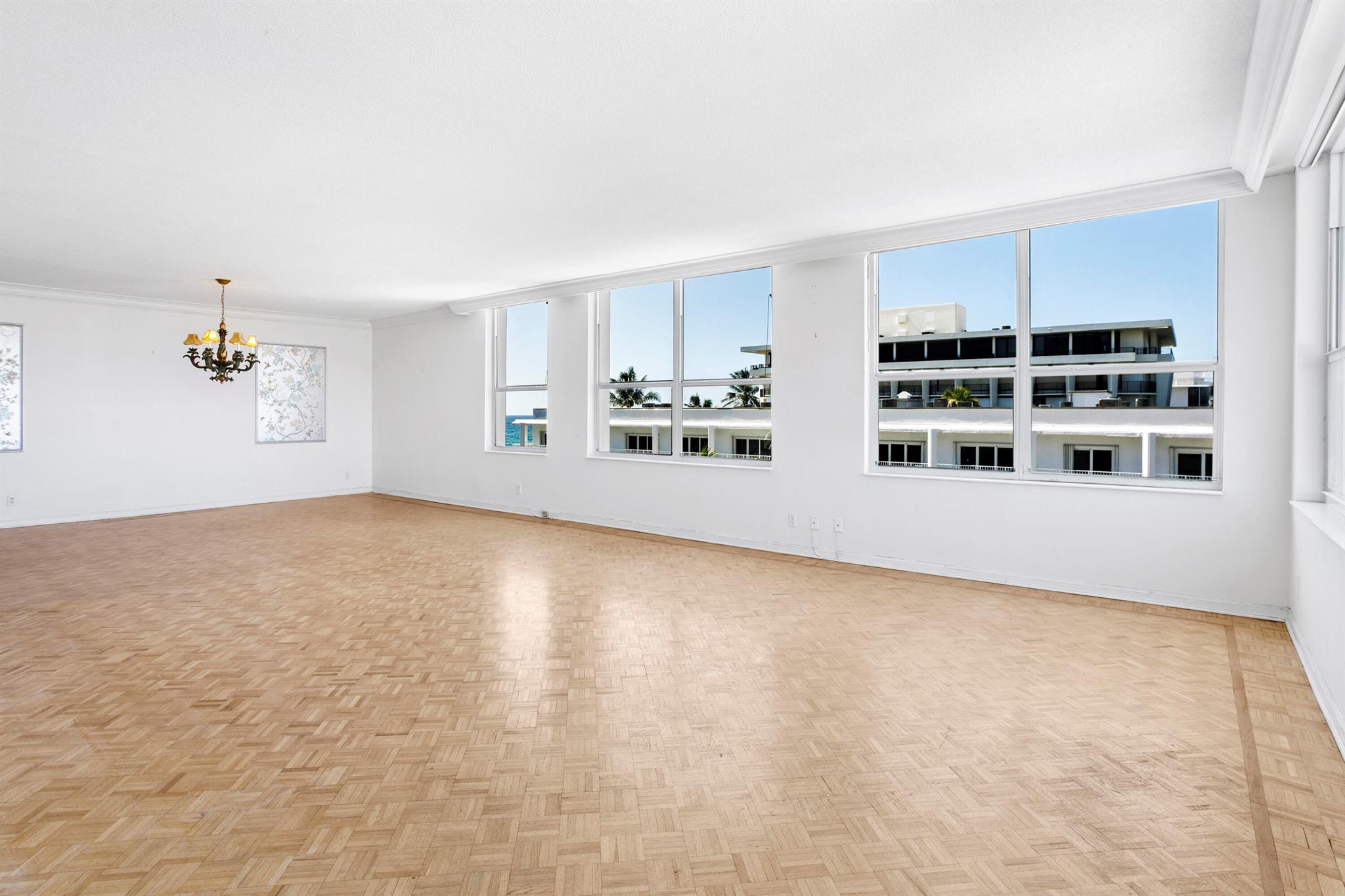 Rare opportunity to purchase this Timeless Two Bedroom, Two Bath, 4th floor condo unit in the Highly Desirable Lowell House! Boasting 2076 living square feet, high ceilings and a spaciously grand living room with oversized impact windows throughout. Freshly painted!Enjoy bright eastern views of the ocean and south western views of the tropical tree lined streets of Palm Beach. Primary bedroom offers separate dressing room, large bathroom with walk-in shower and roomy walk-in closet. Guest bedroom offers sizeable walk-in closet. Kitchen offers spacious eat-in dining area. Stunningly well-maintained parquet flooring throughout all main living areas. This unit includes two parking space and a hall storage closet. Embrace the charm of retro design or elevate this condo to a dreamy..
